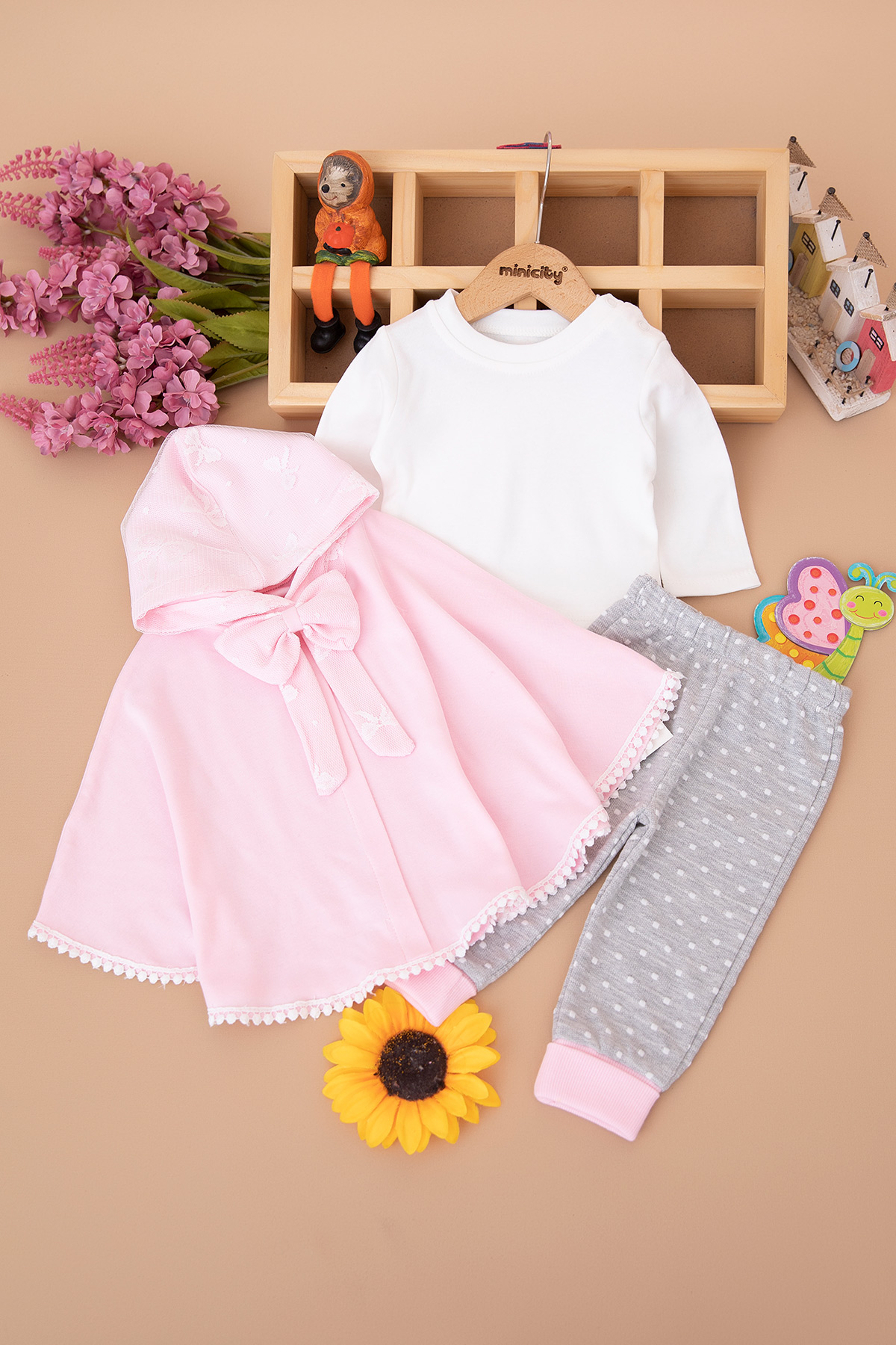 Kız Bebek Fiyonklu Pelerenli Takım - 3220 (6-12 Ay)