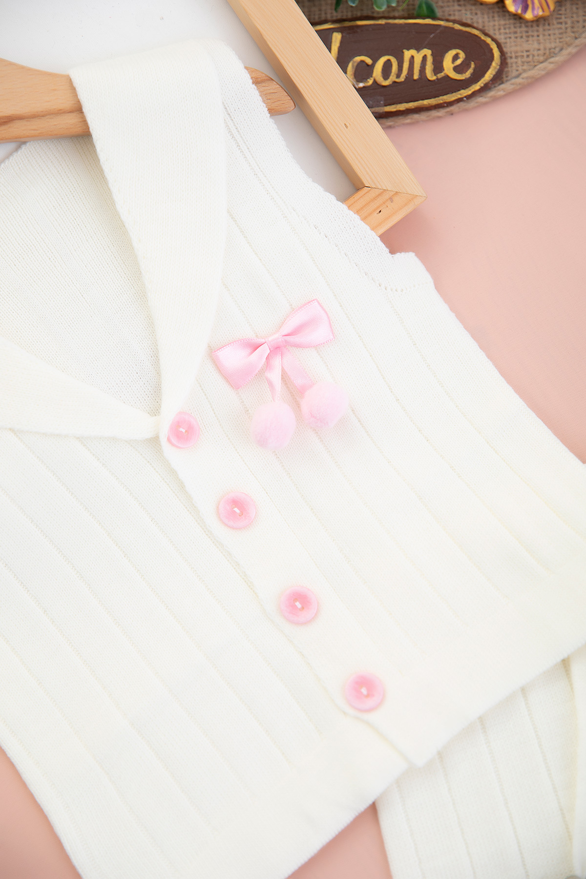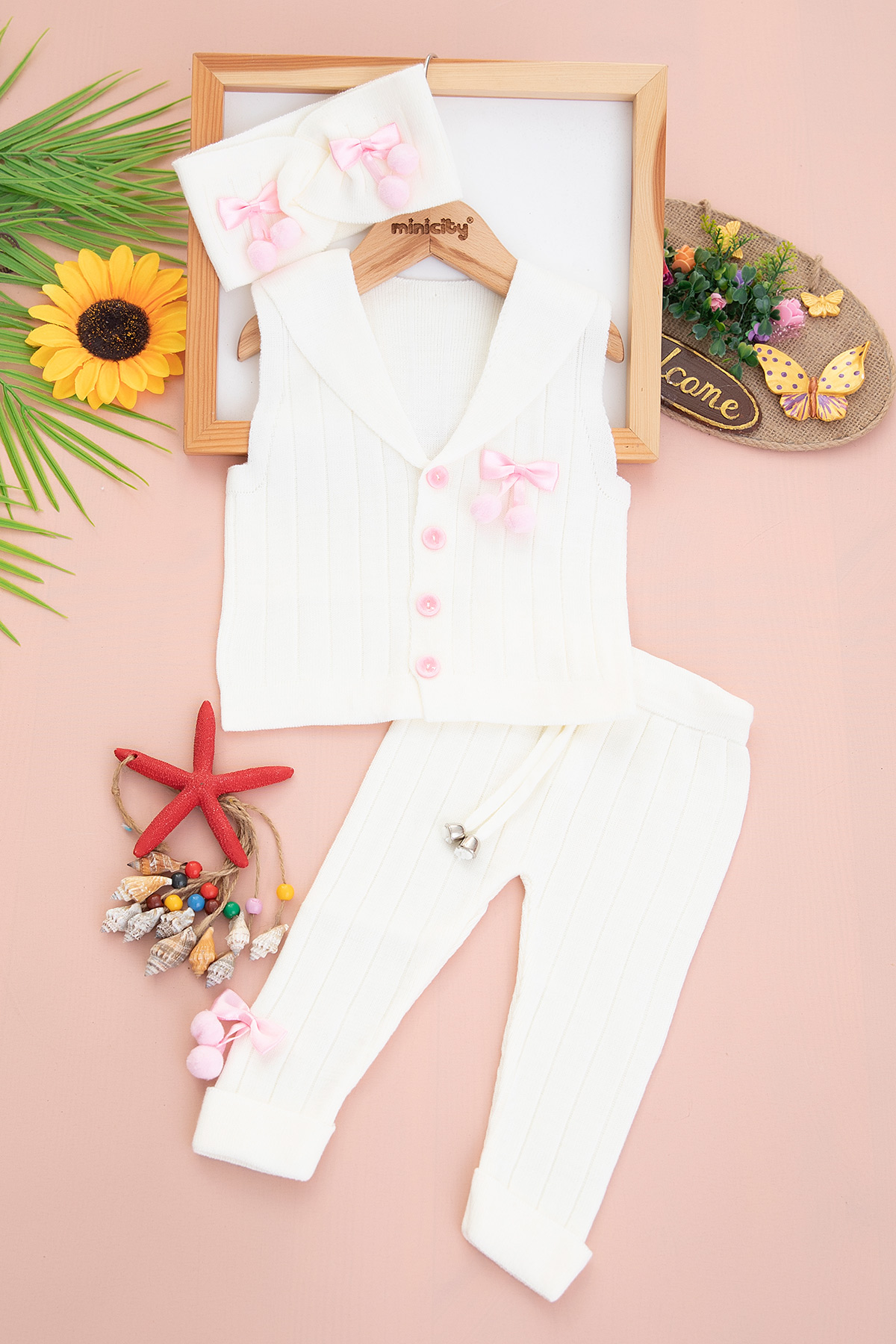 Kız Bebek Fiyonklu Triko Üçlü Takım - 6405 (3-24 Ay)