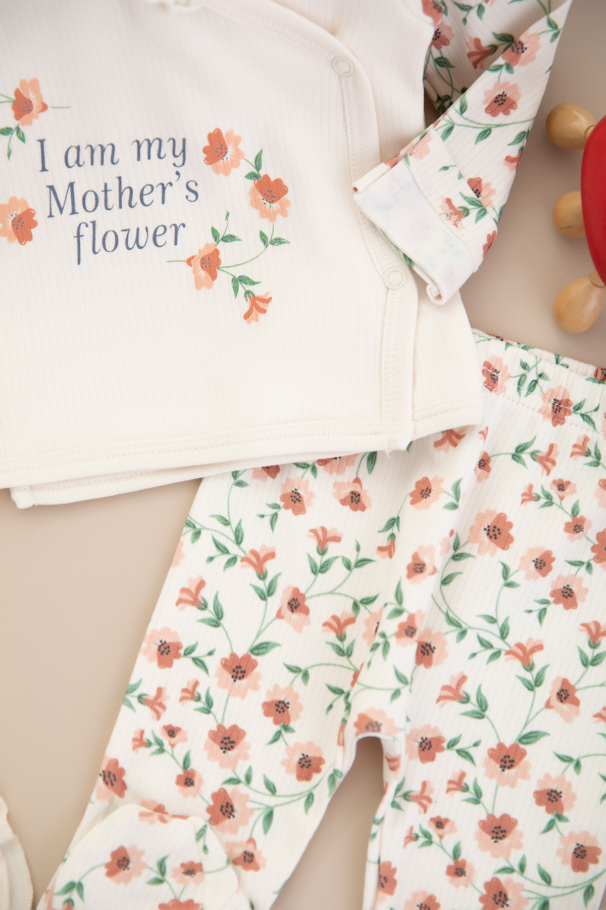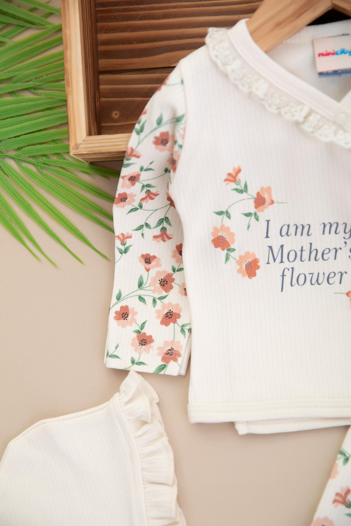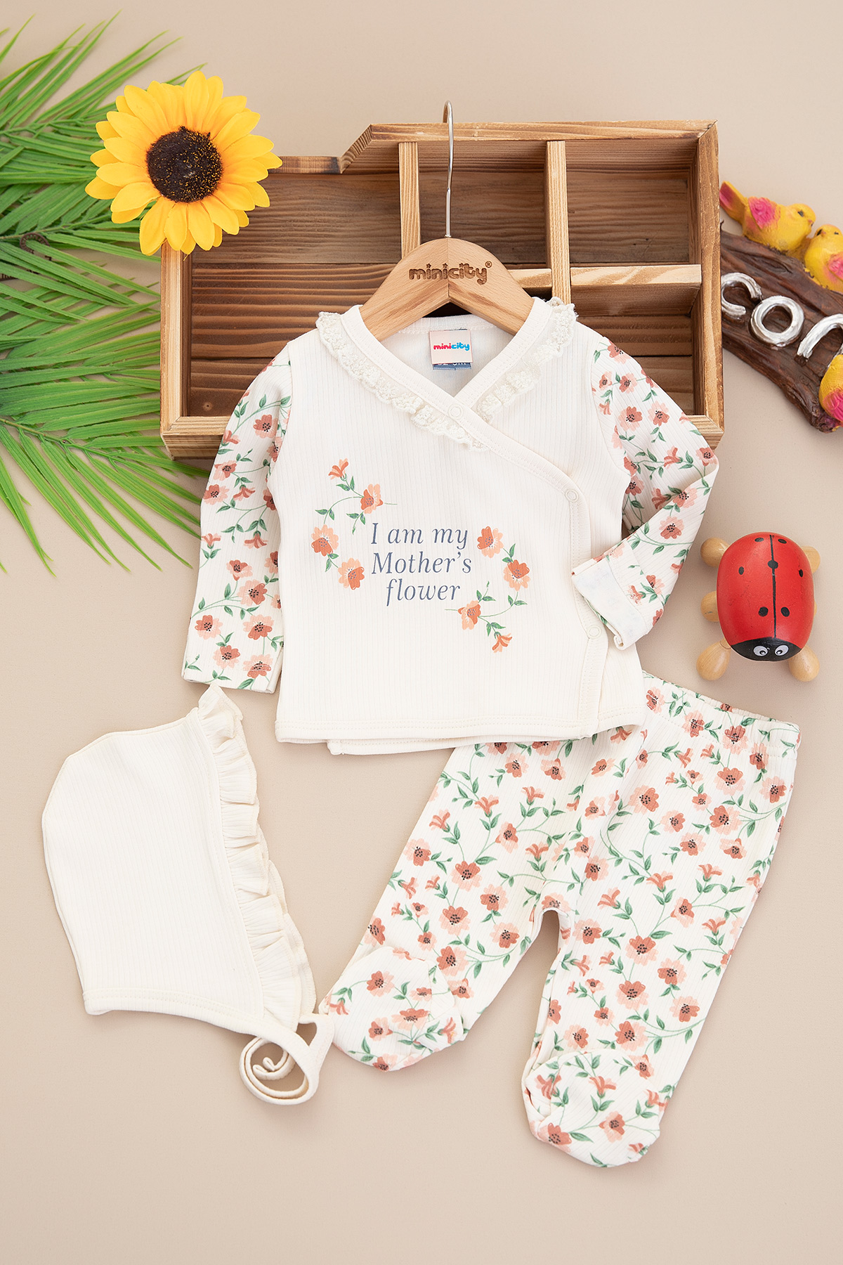 Kız Bebek Flower Baskılı Üçlü Zıbın Takım - NB-003 (0-3 Ay)