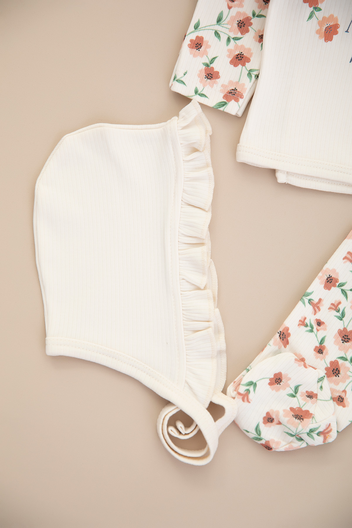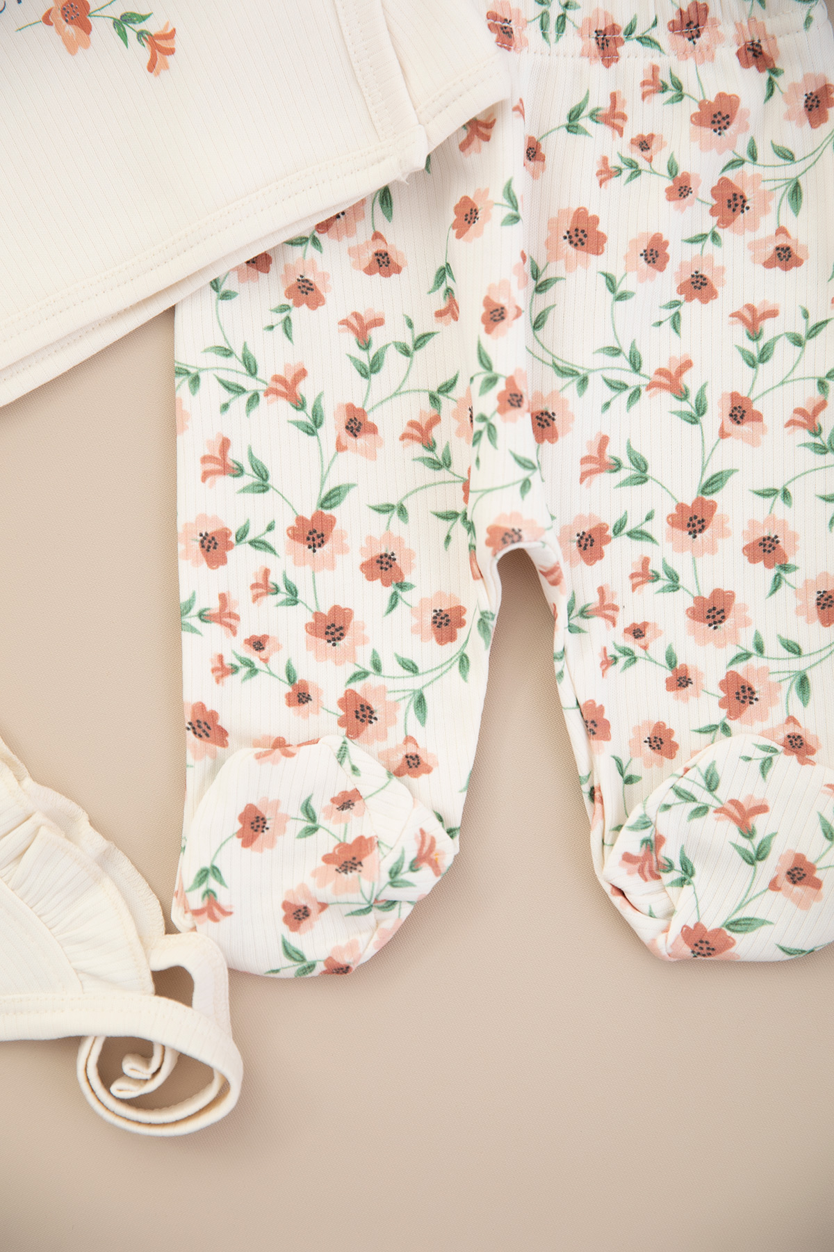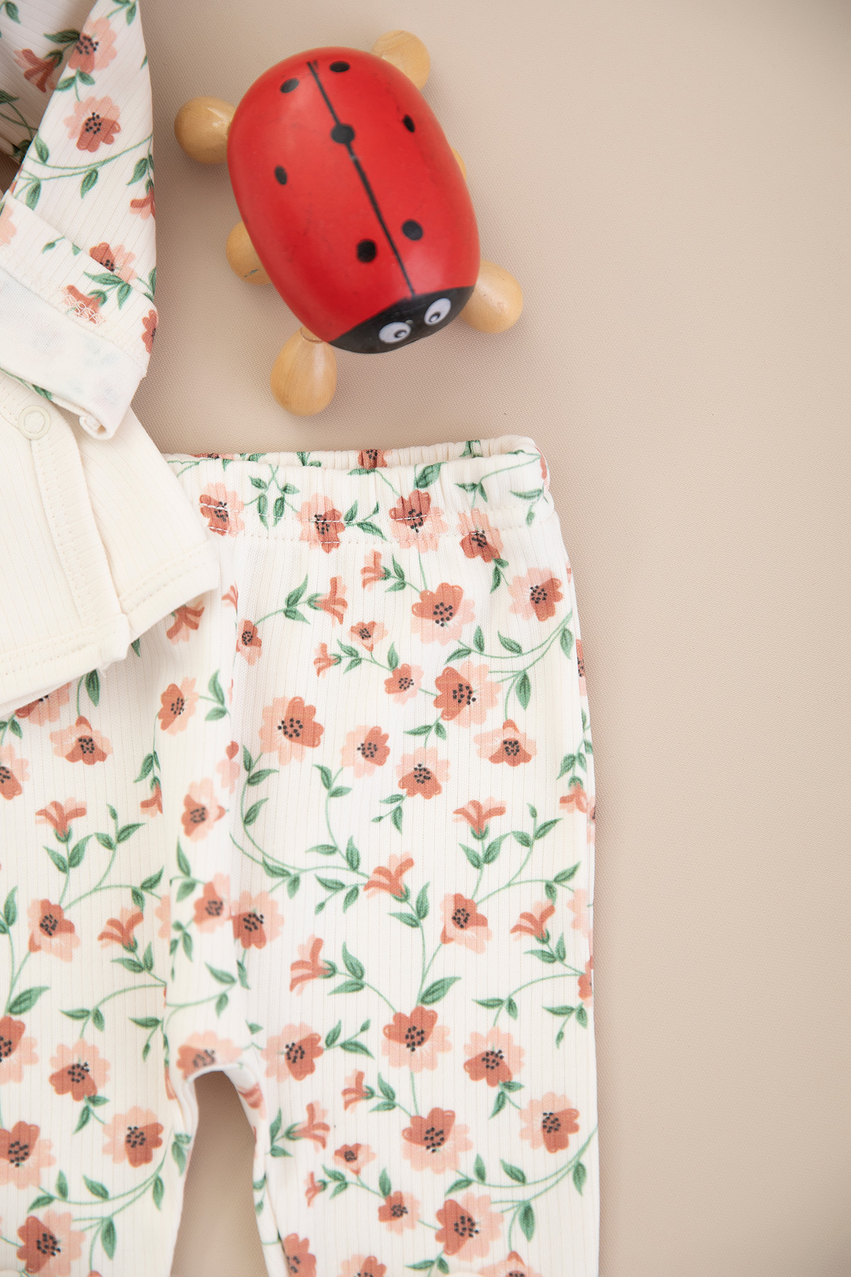 Kız Bebek Flower Baskılı Üçlü Zıbın Takım - NB-003 (0-3 Ay)