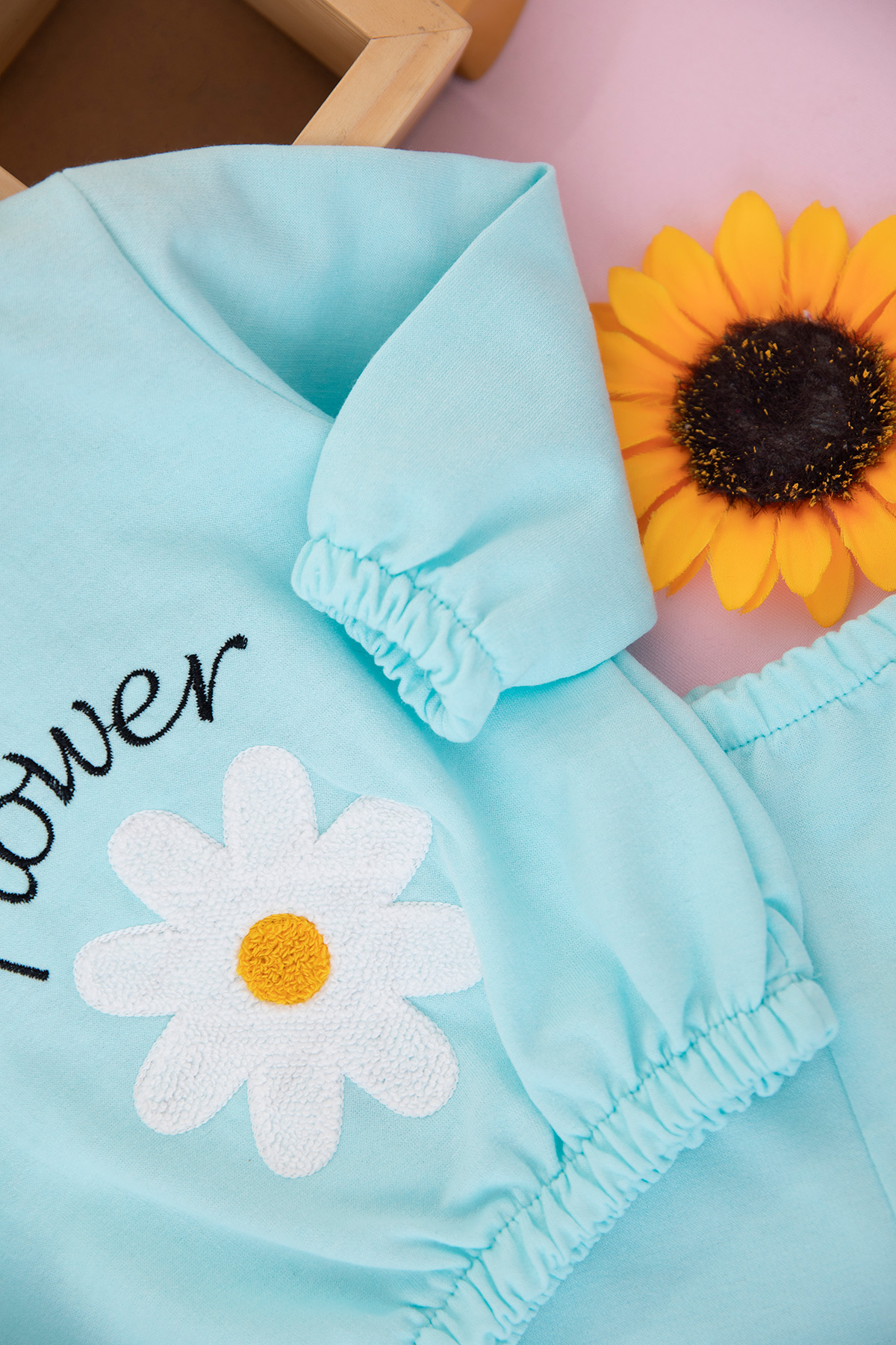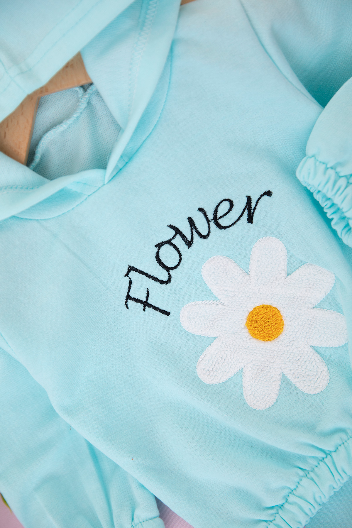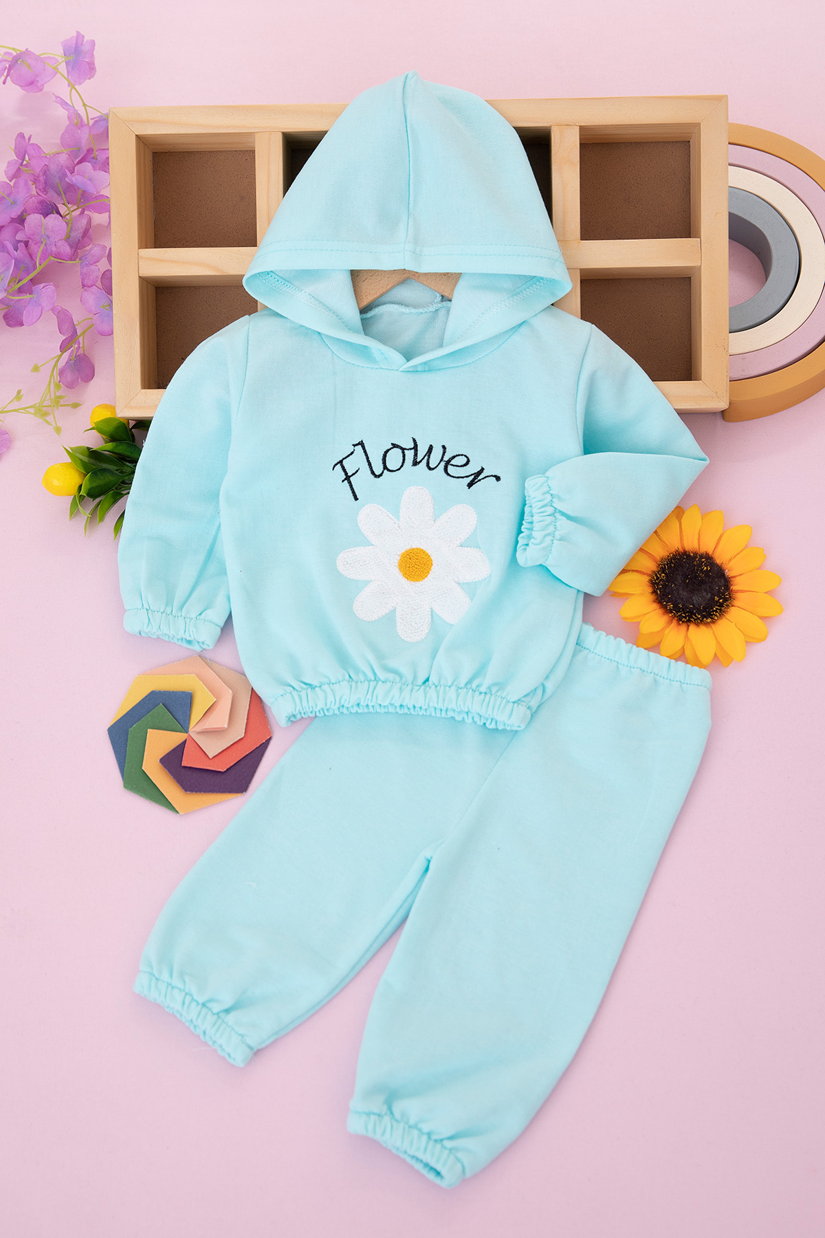 Kız Bebek Flower Papatyalı Lastikli Kapşonlu Takım (9-24 Ay)