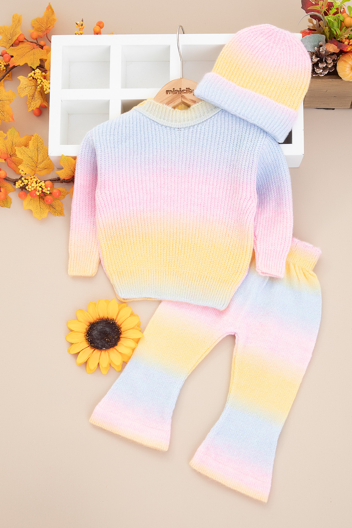 Kız Bebek Geçişli Bereli Triko Takım - 6425 (3- 18 Ay)