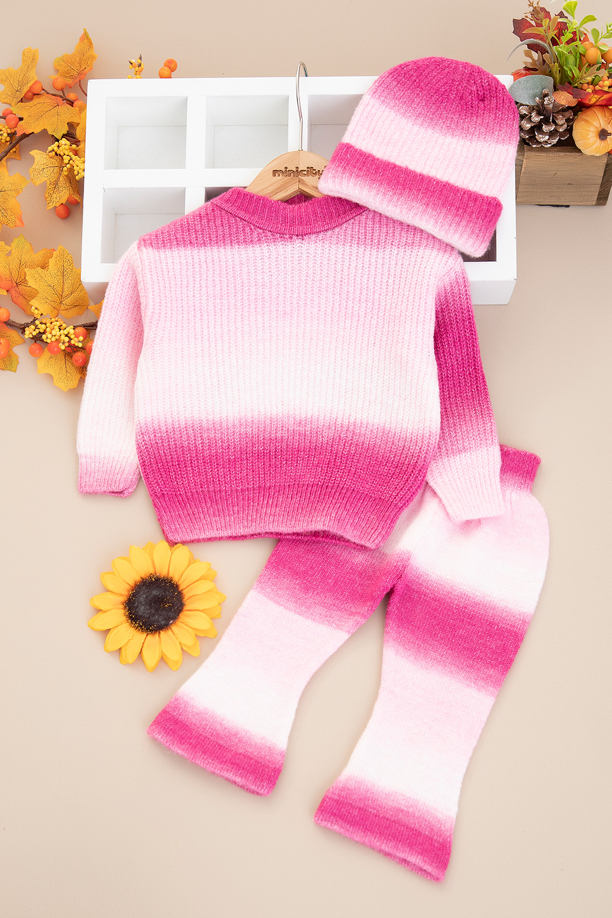 Kız Bebek Geçişli Bereli Triko Takım - 6425 (3- 18 Ay)