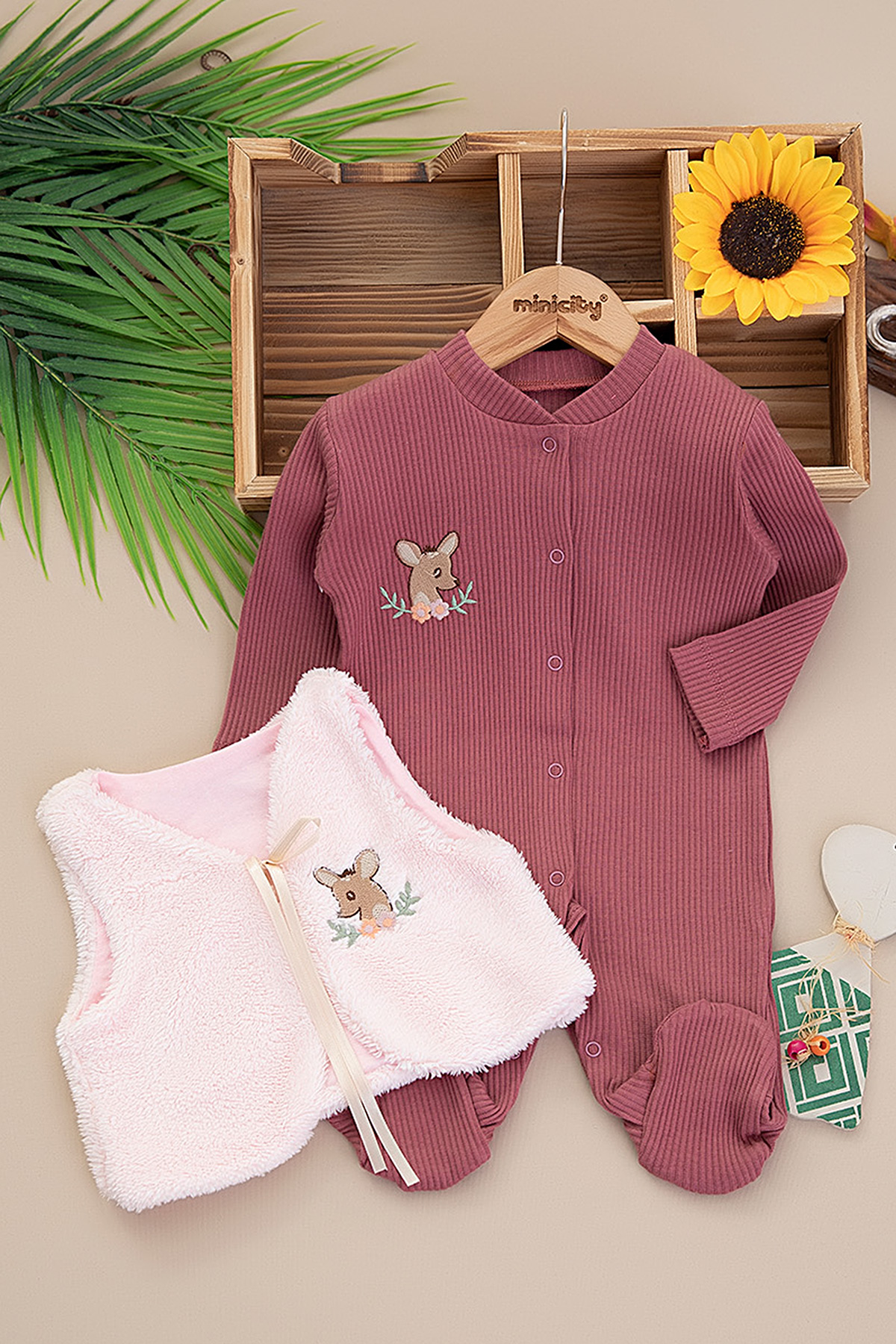 Kız Bebek Geyik Nakışlı Boerolu Tulum - 243430 (0-6 Ay)