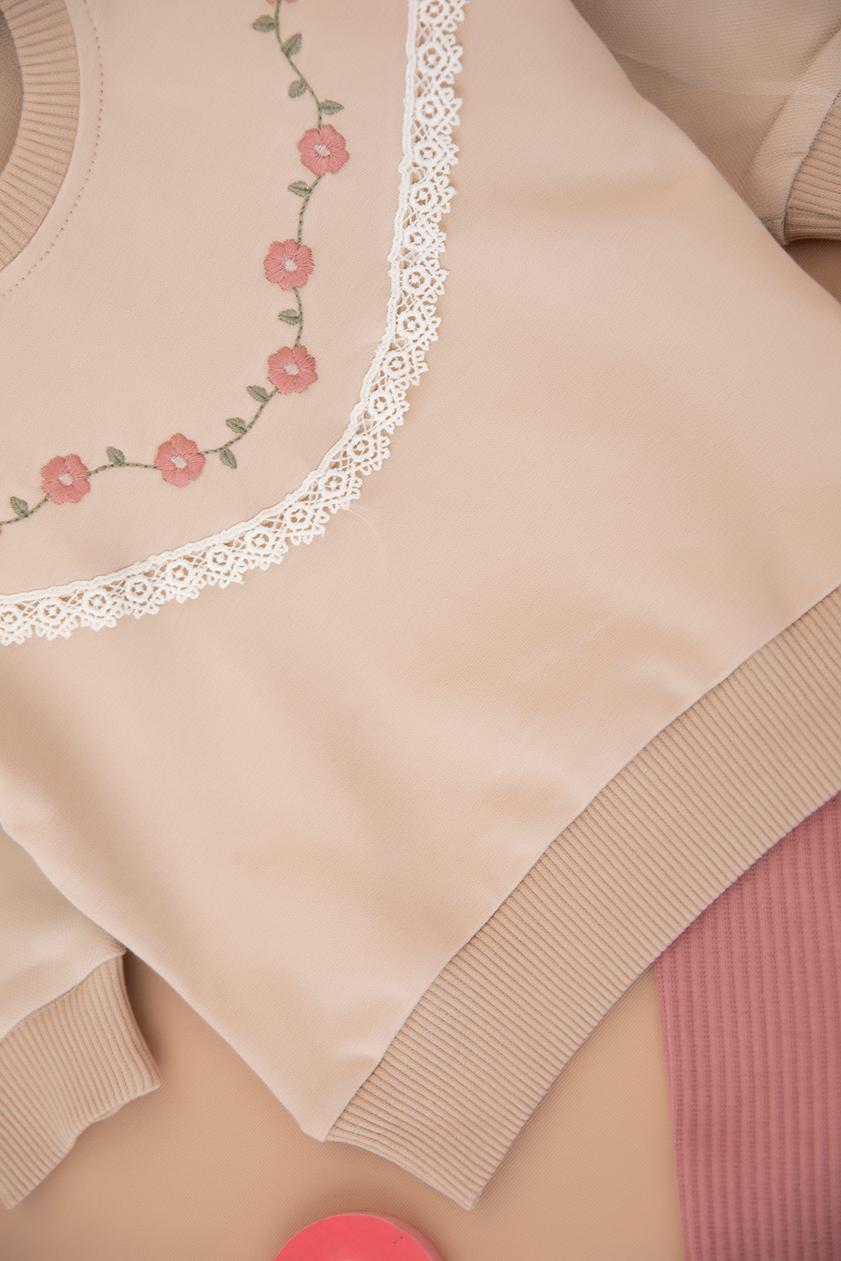 Kız Bebek Göğüs Nakışlı Kollar Tüllü Takım - 2816 (6-24 Ay)