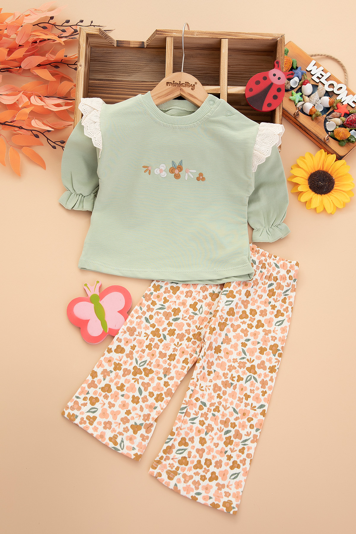 Kız Bebek Gövde Çiçek Nakışlı Takım - 2604 (6-24 Ay)