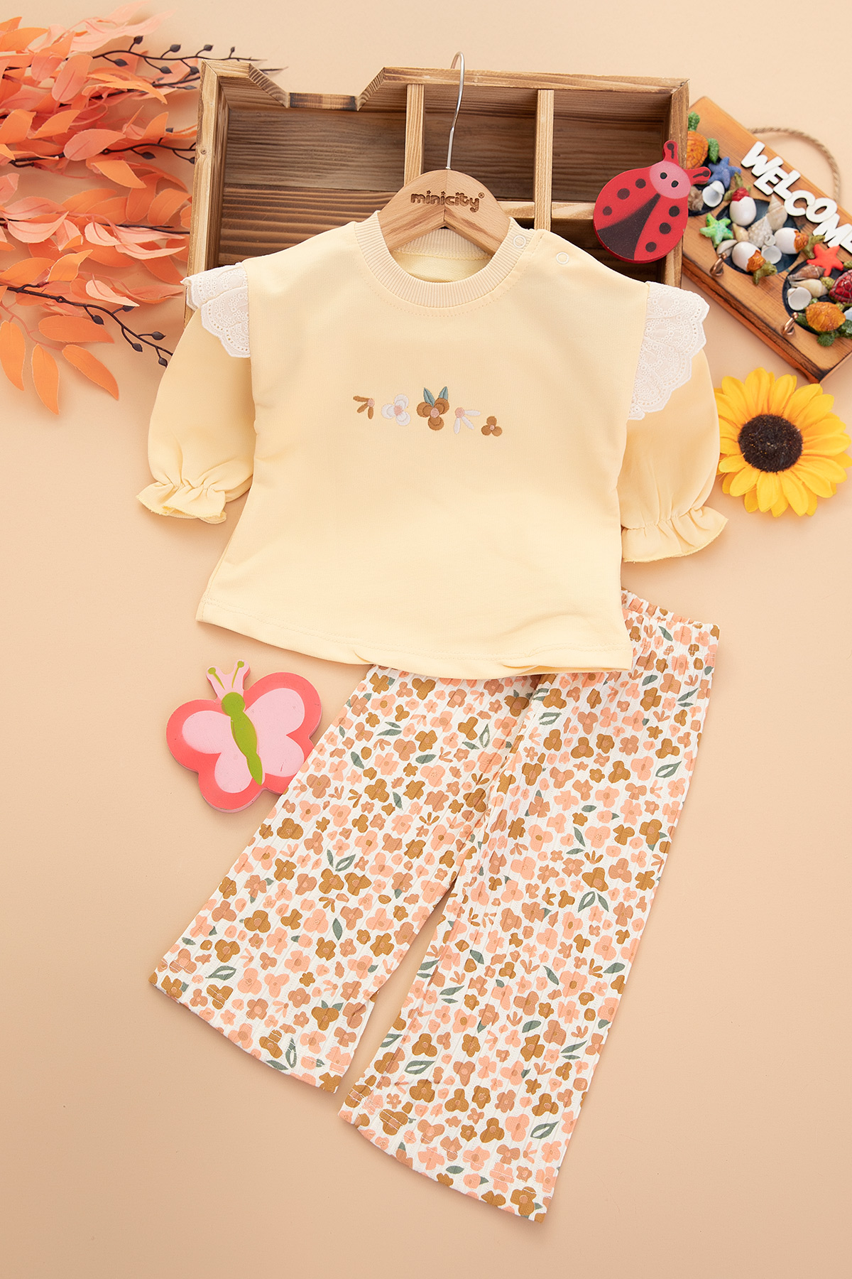 Kız Bebek Gövde Çiçek Nakışlı Takım - 2604 (6-24 Ay)