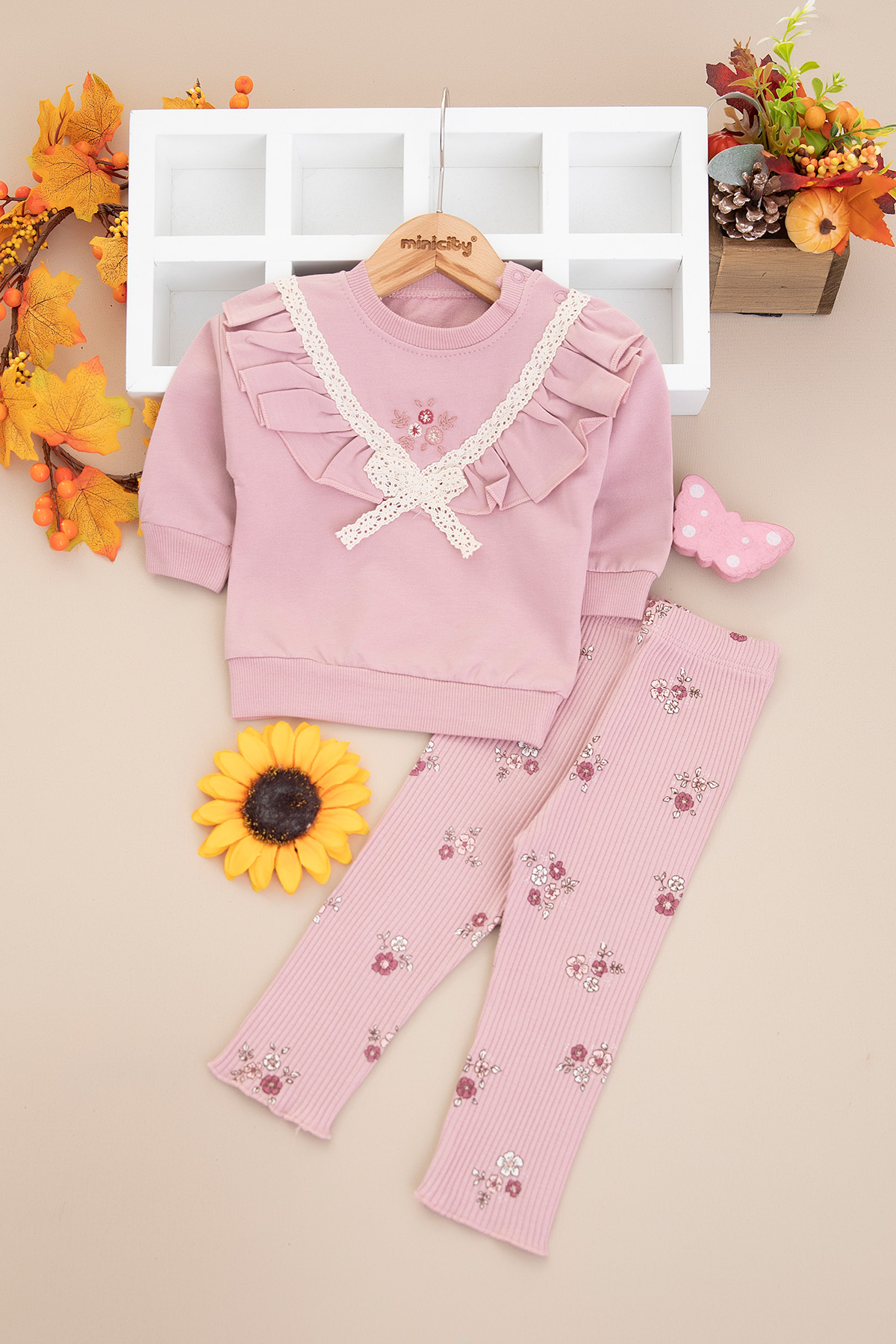 Kız Bebek Gövde Çiçek Nakışlı Takım - 2806 (6-24 Ay)