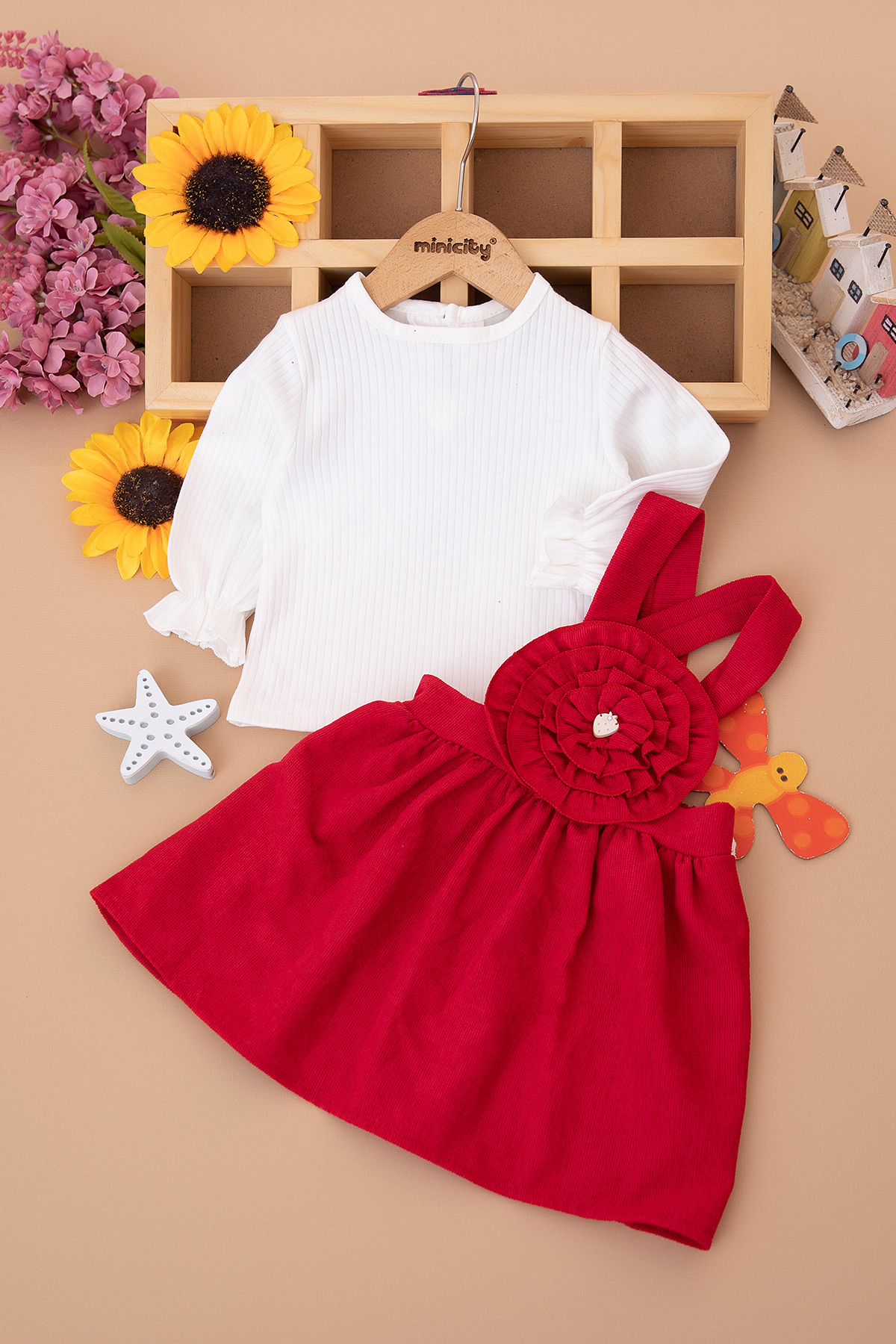 Kız Bebek Gül Detaylı Kadife Salopet - 3231 (9-24 Ay)