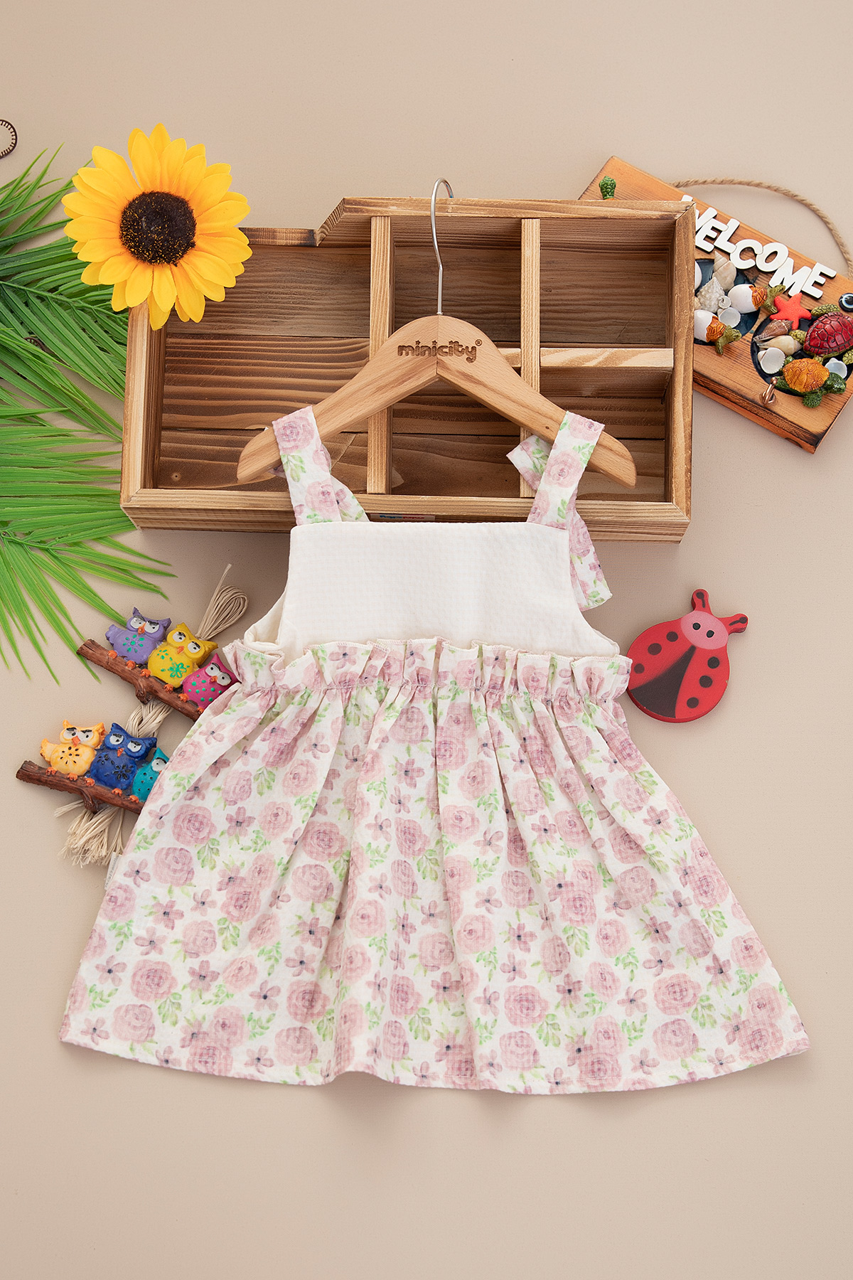 Kız Bebek Gül Efektli Askılı Elbise - 3161 (9-24 Ay)