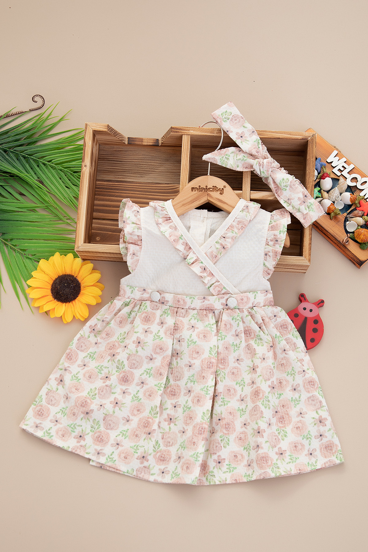 Kız Bebek Gül Efektli Kruvaze Elbise - 3162 (9-24 Ay)