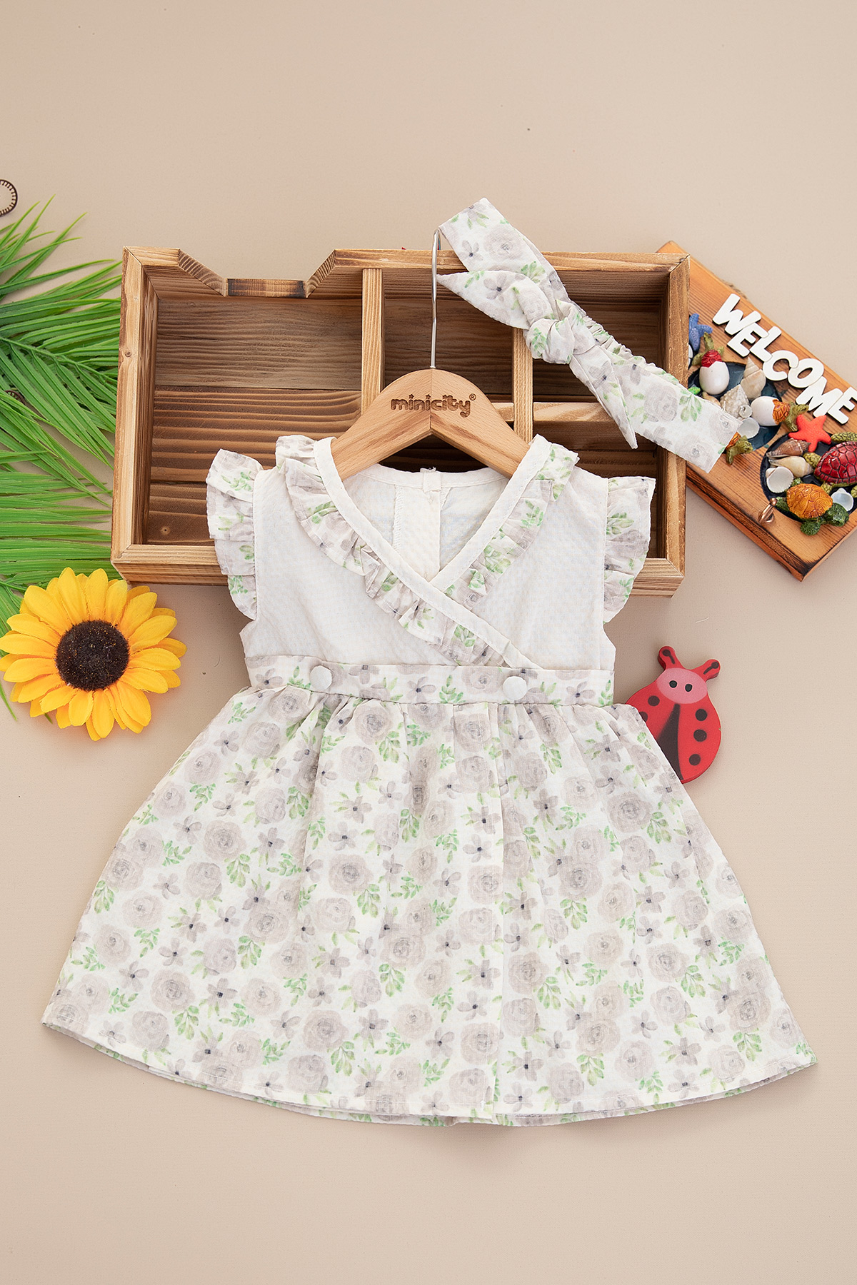 Kız Bebek Gül Efektli Kruvaze Elbise - 3162 (9-24 Ay)