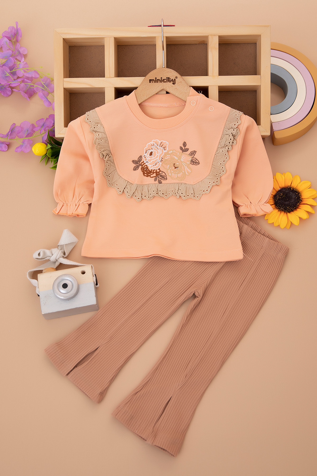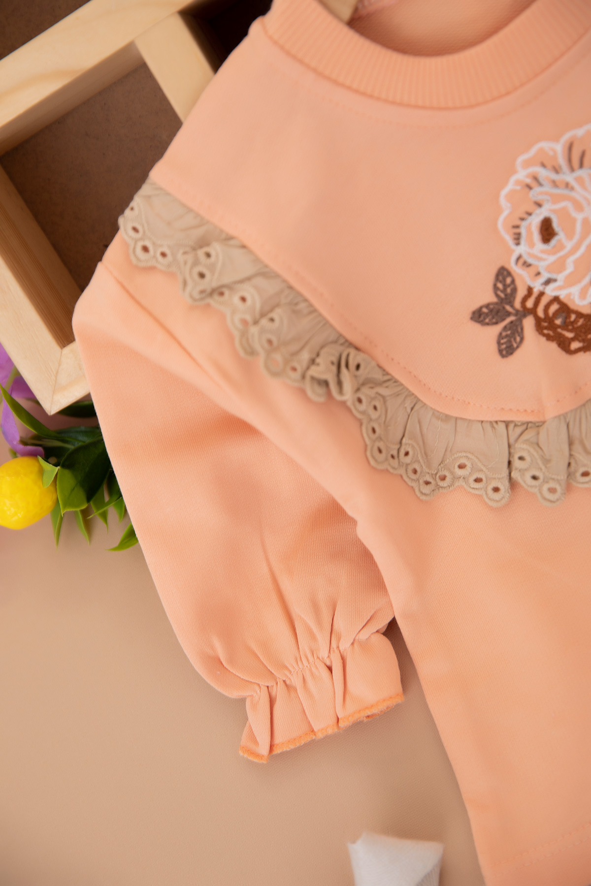 Kız Bebek Gül Nakışlı Brodeli Takım - 2518 (6-24 Ay)