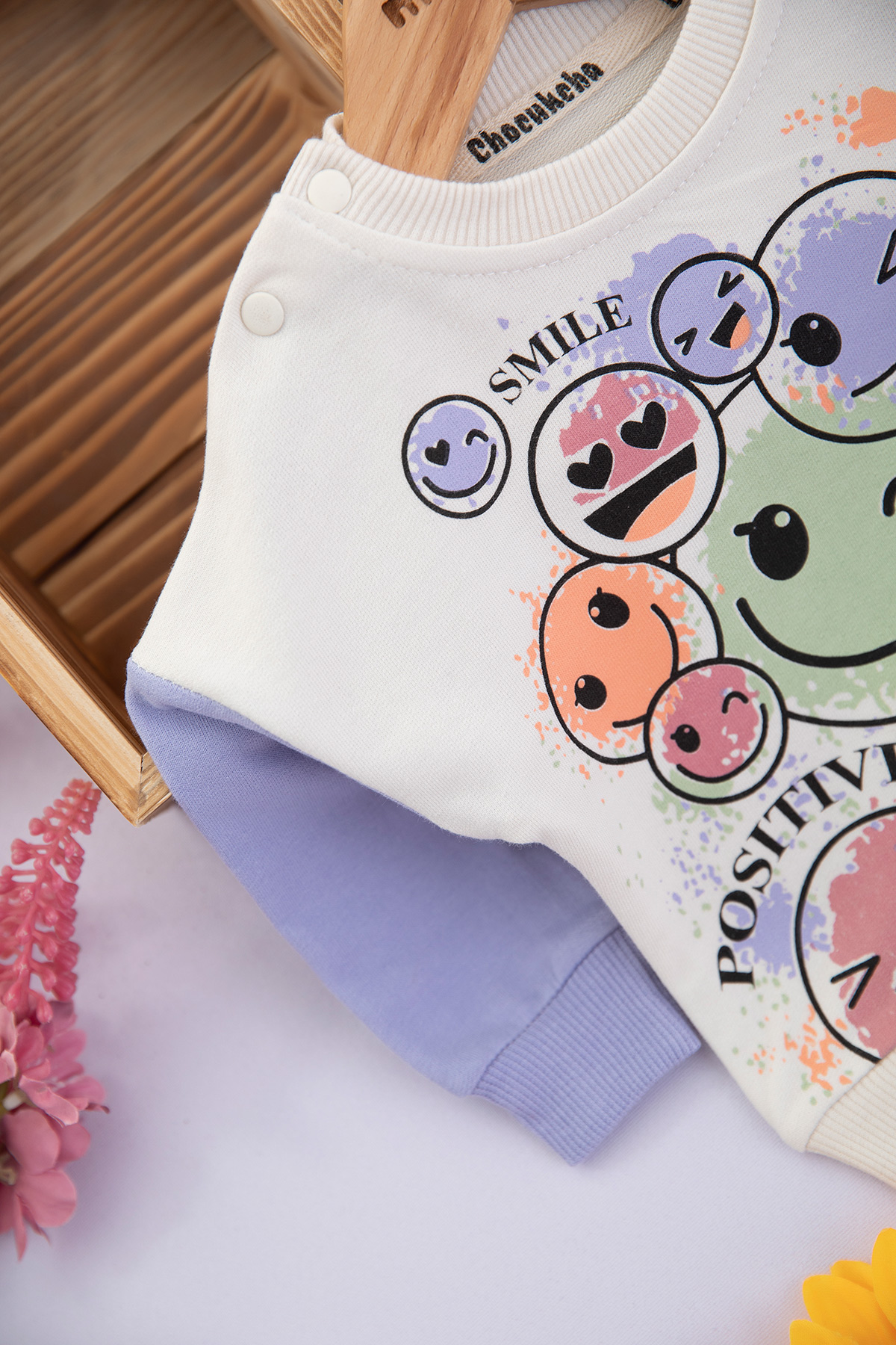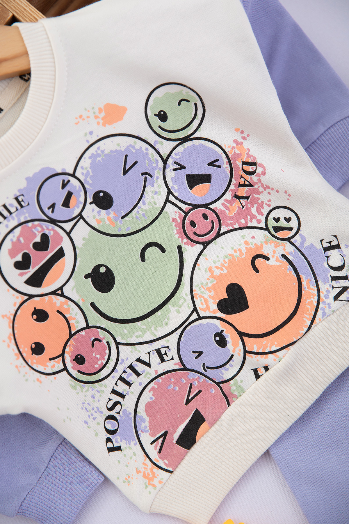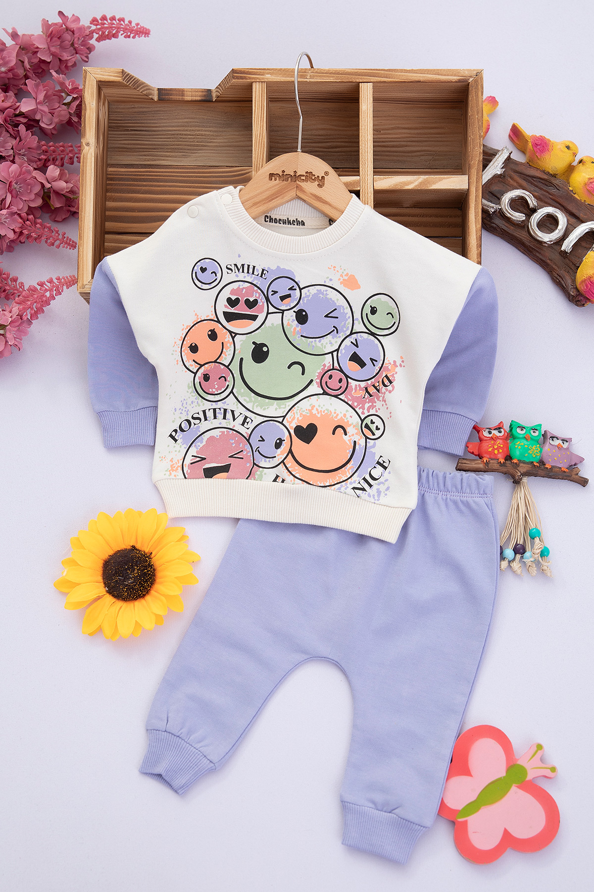 Kız Bebek Gülen Yüz Baskılı İkili Takım - 3038 (6-18 Ay)