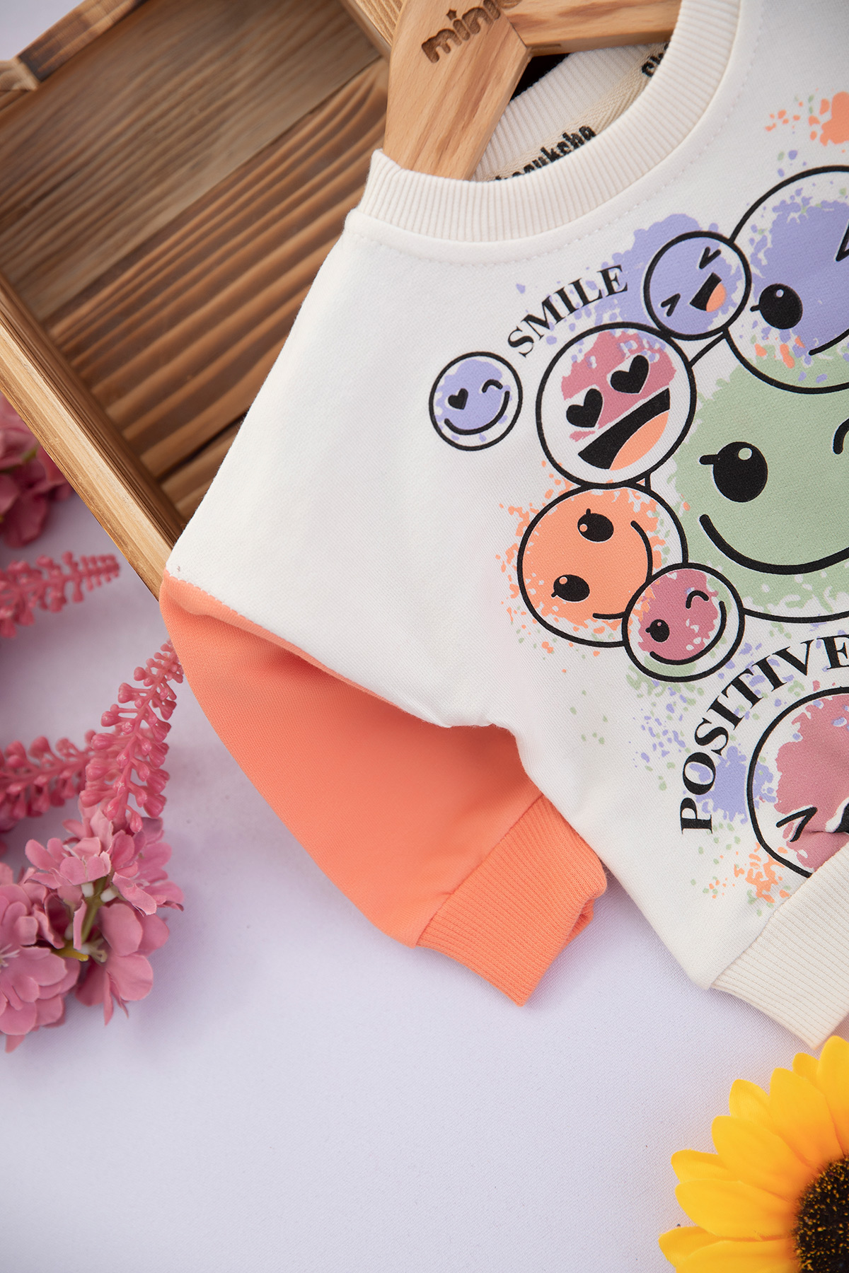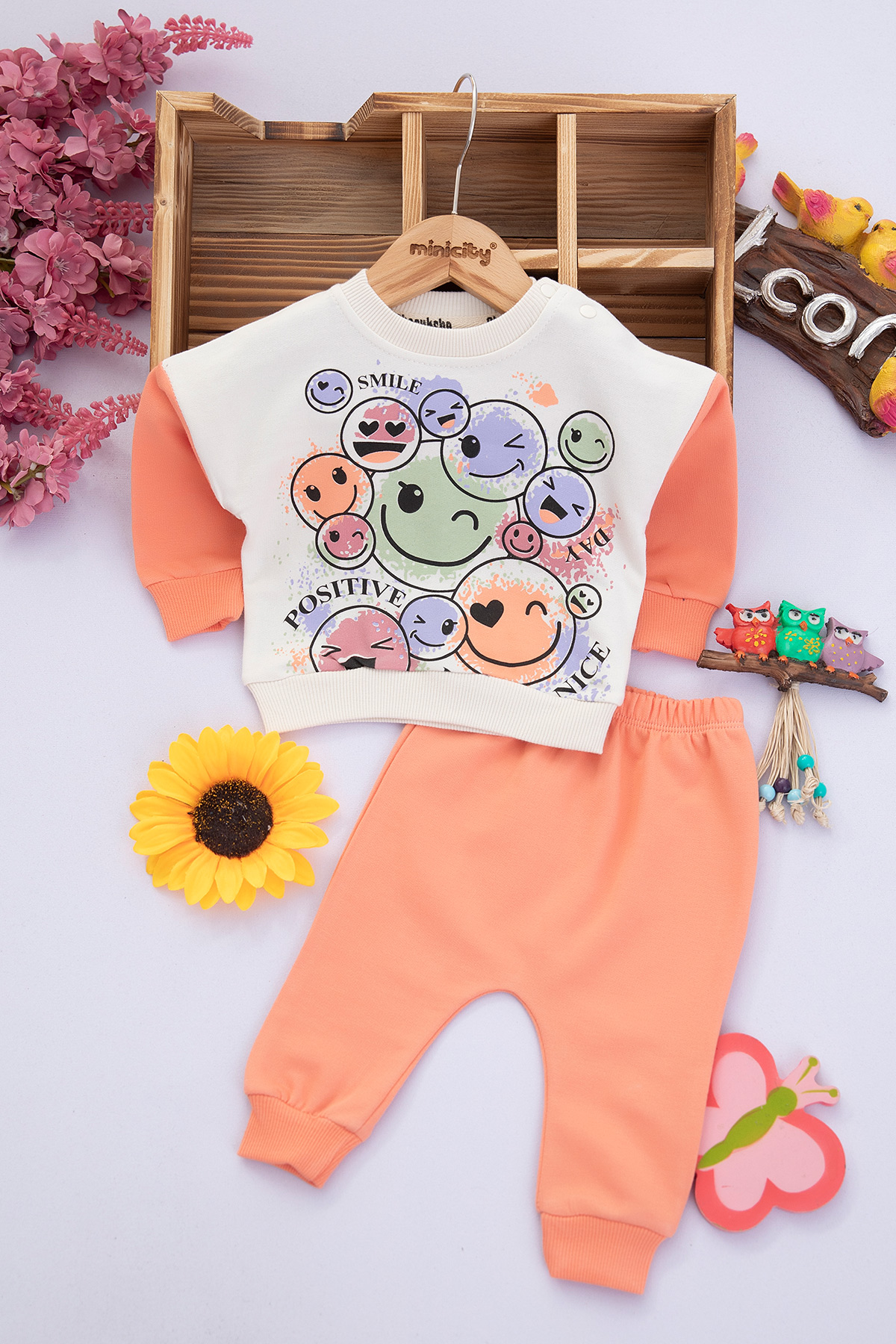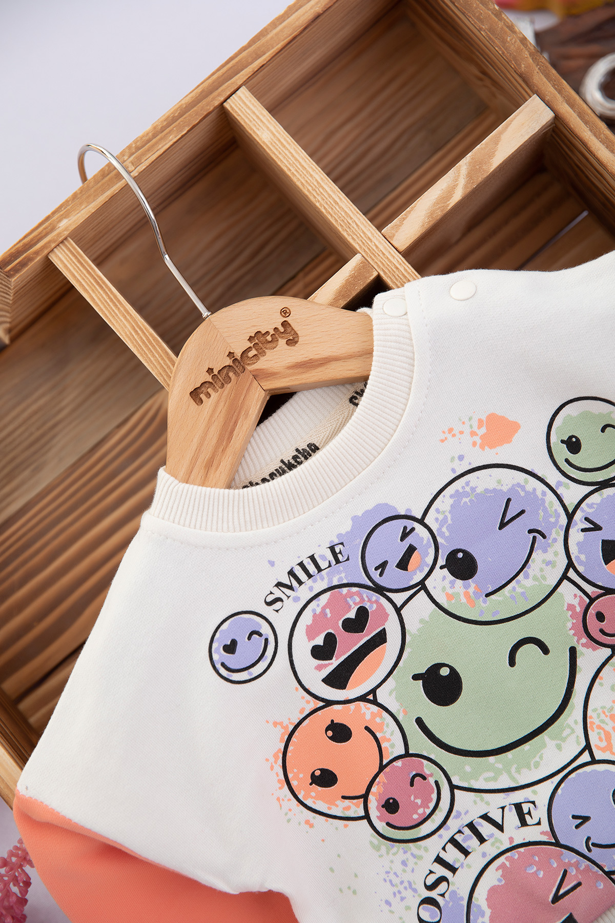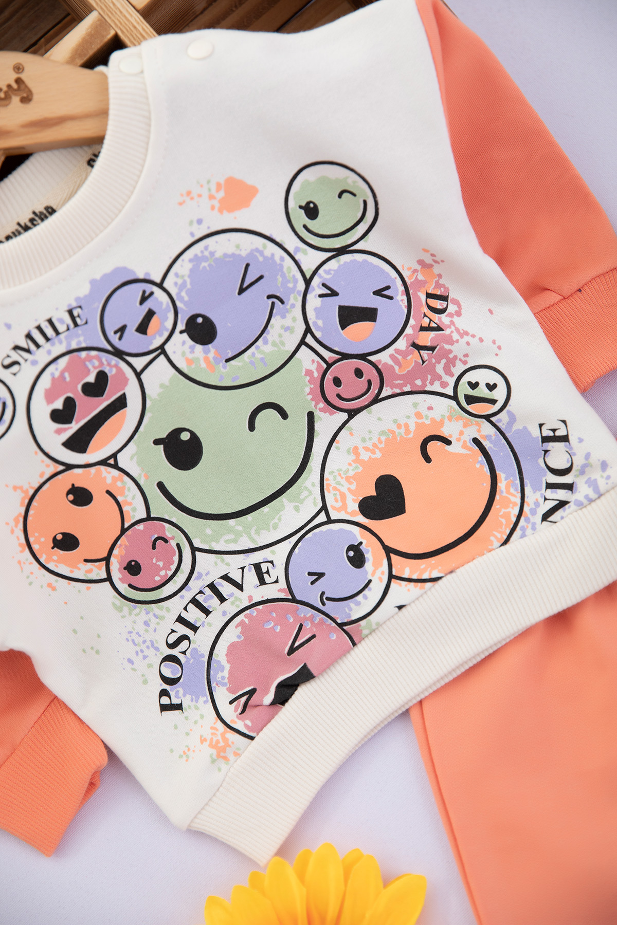 Kız Bebek Gülen Yüz Baskılı İkili Takım - 3038 (6-18 Ay)