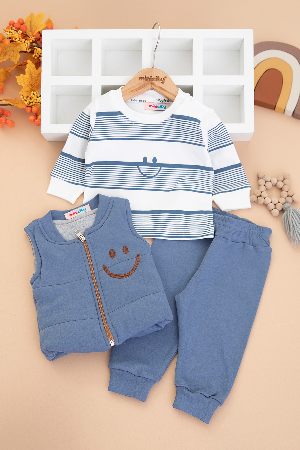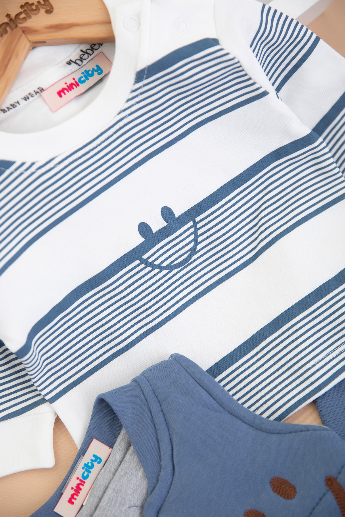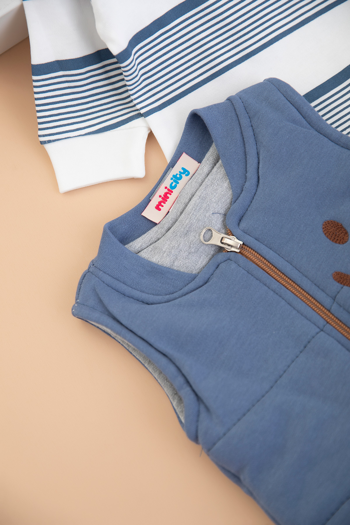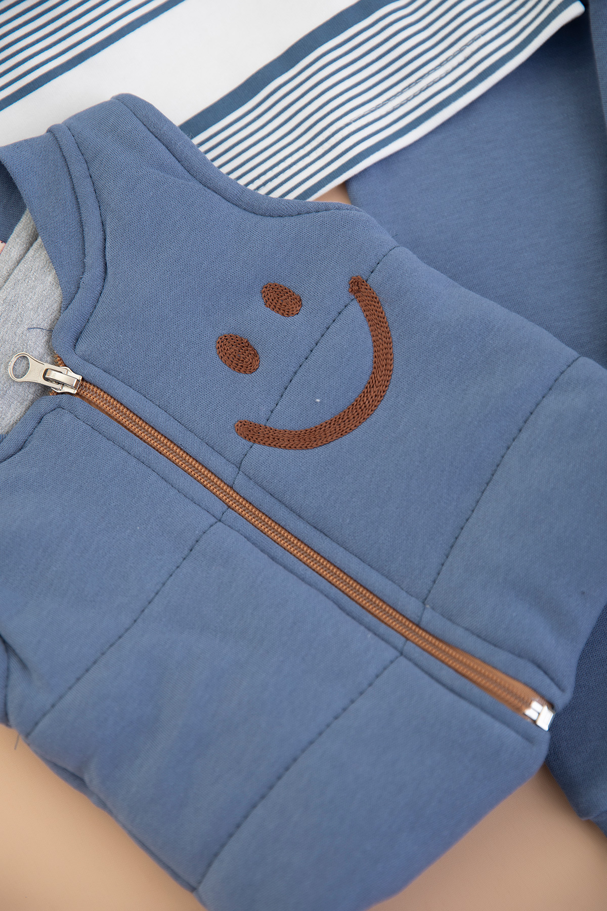 Kız Bebek Gülen Yüz Nakışlı Yelekli Takım - 14178 (0-12 Ay)