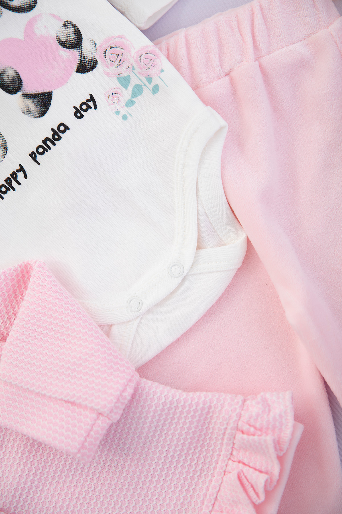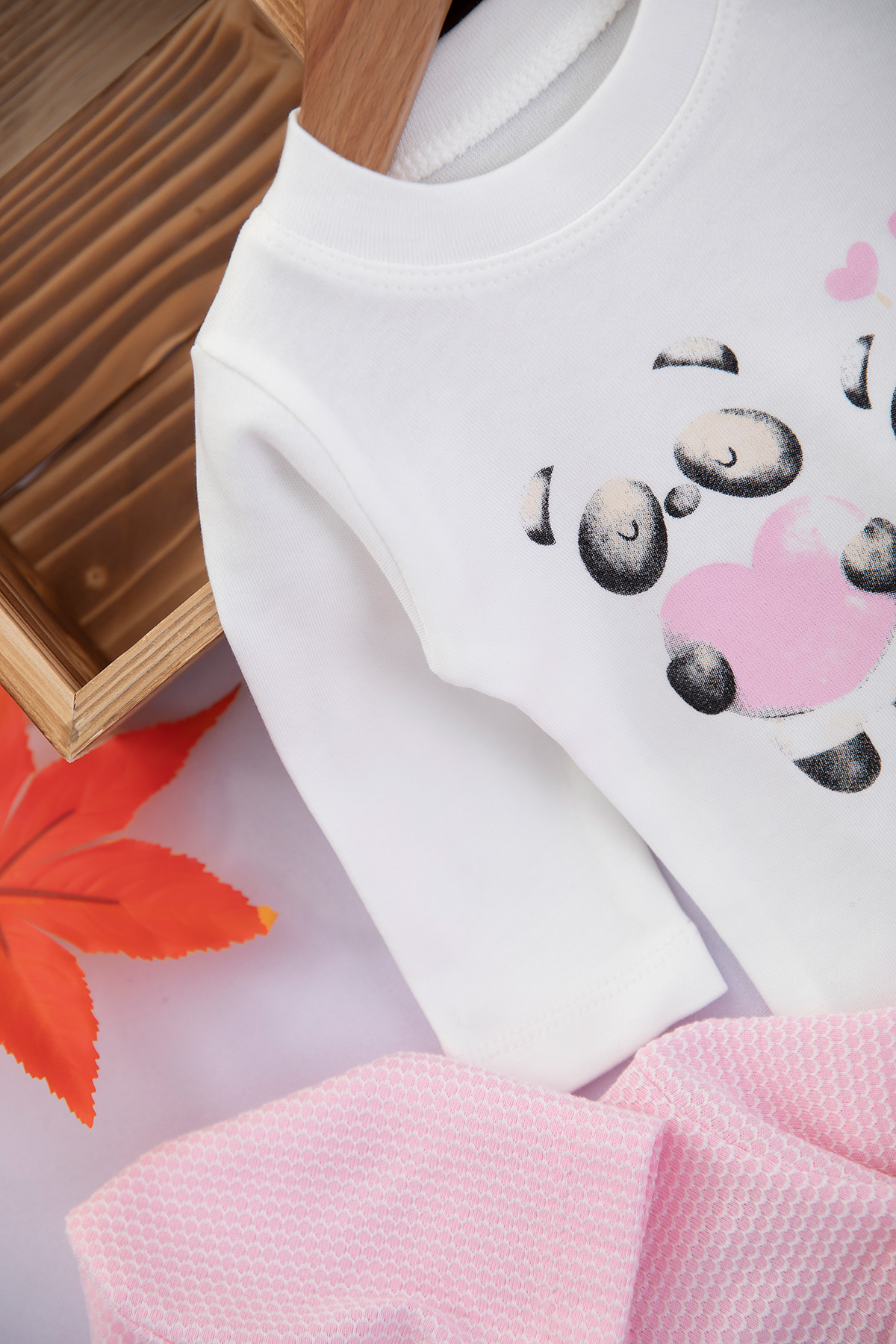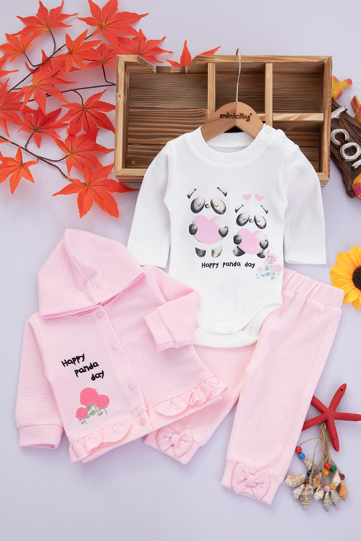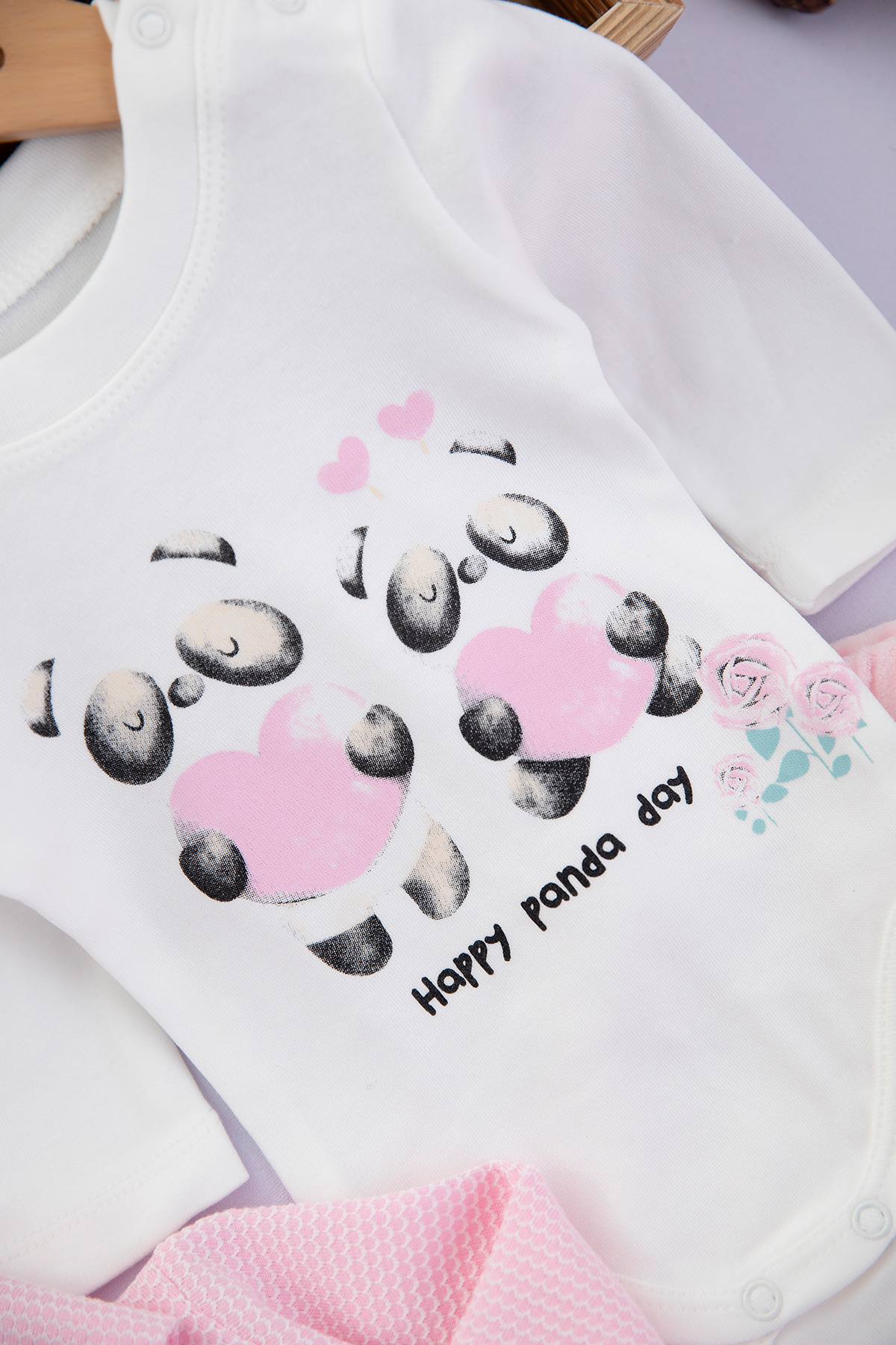 Kız Bebek Happy Panda Baskılı 3`Lü Takım - 7030 (3-12 Ay)