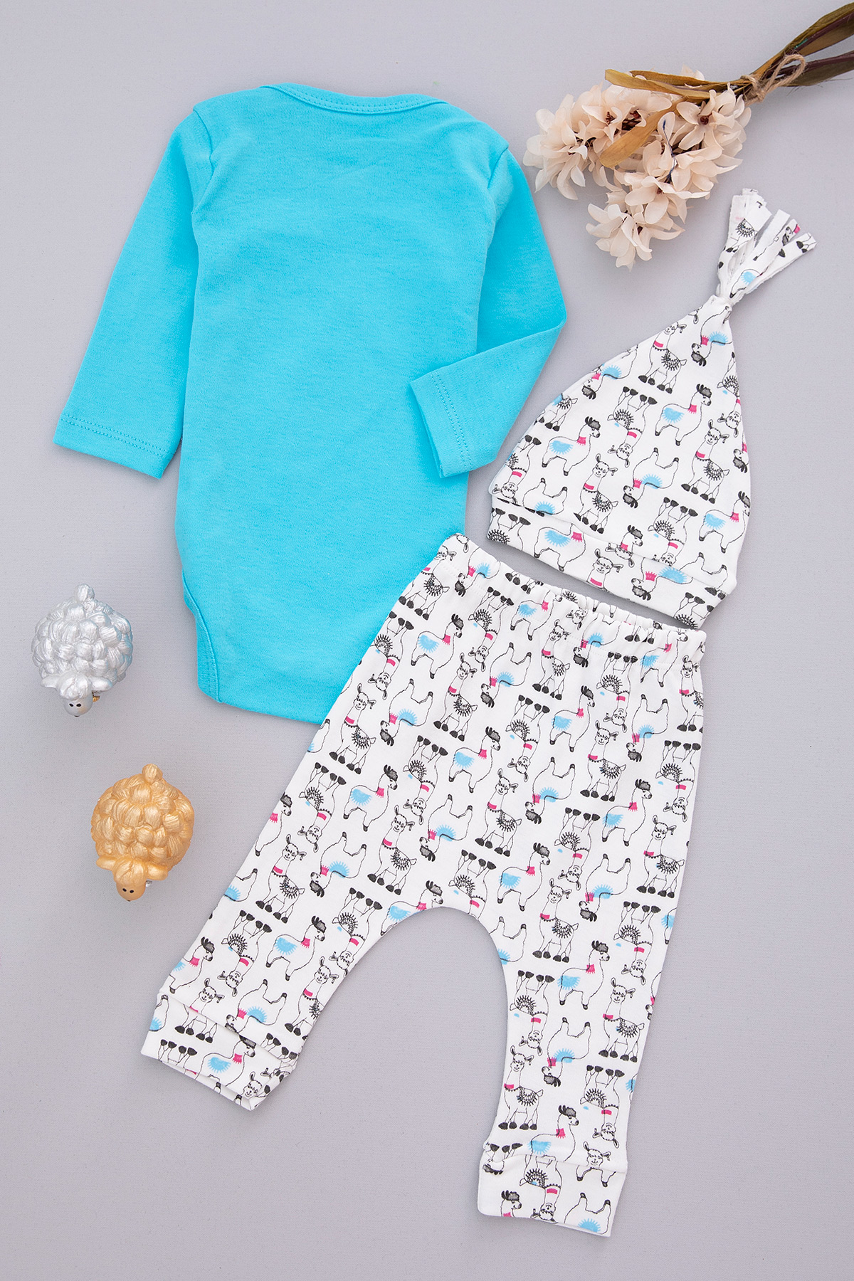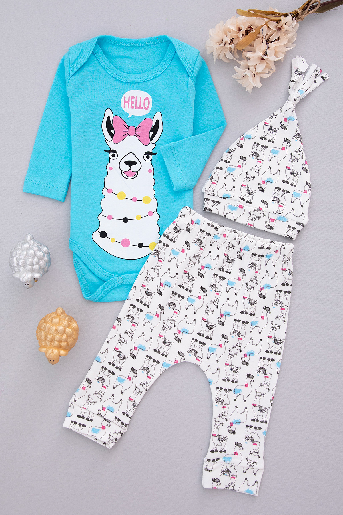 Kız Bebek Hello Lama Baskılı Badili Takım - 1090 (3-9 Ay)