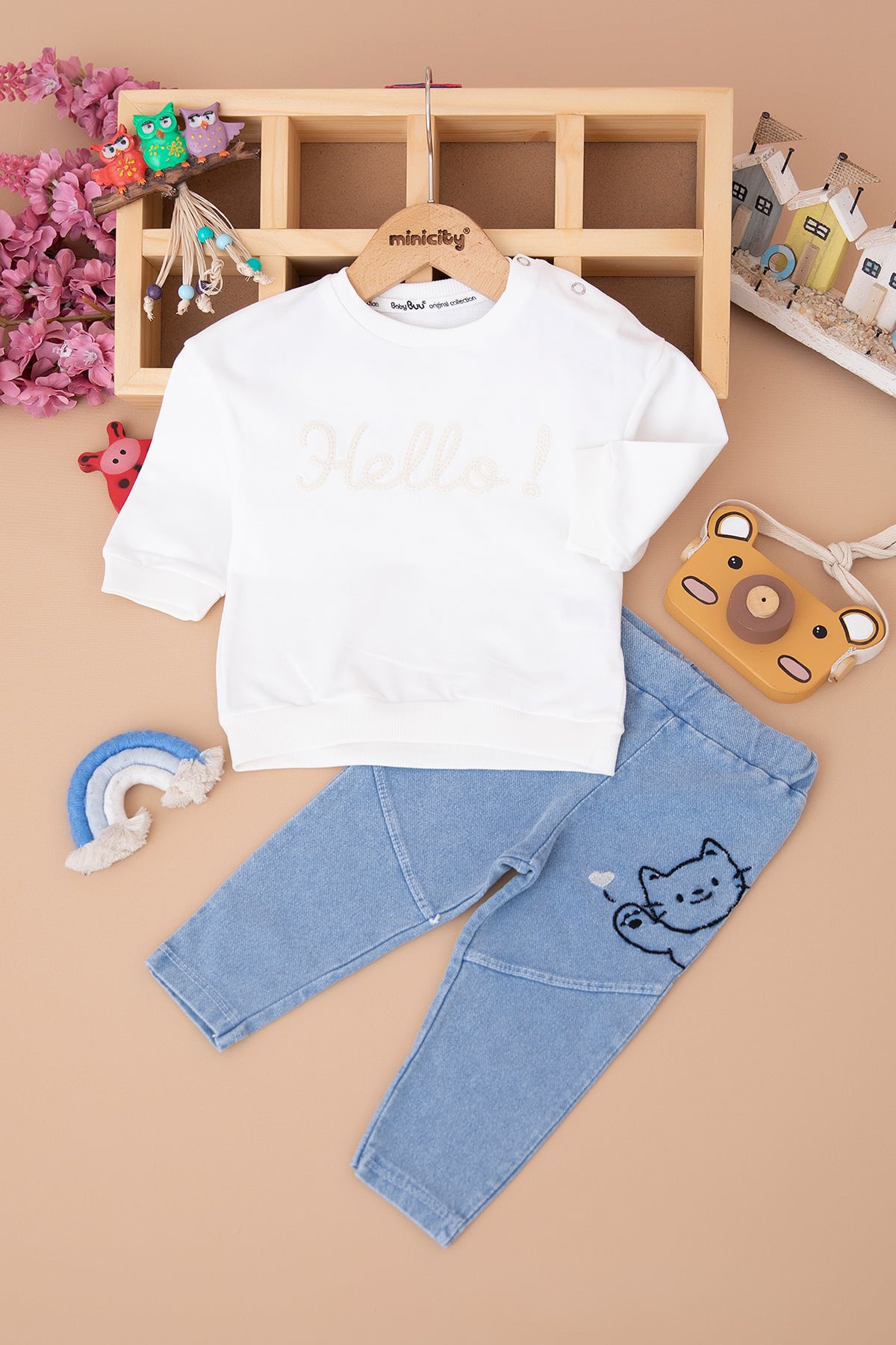 Kız Bebek Hello Nakışlı Takım - 0335 (9-24 Ay)