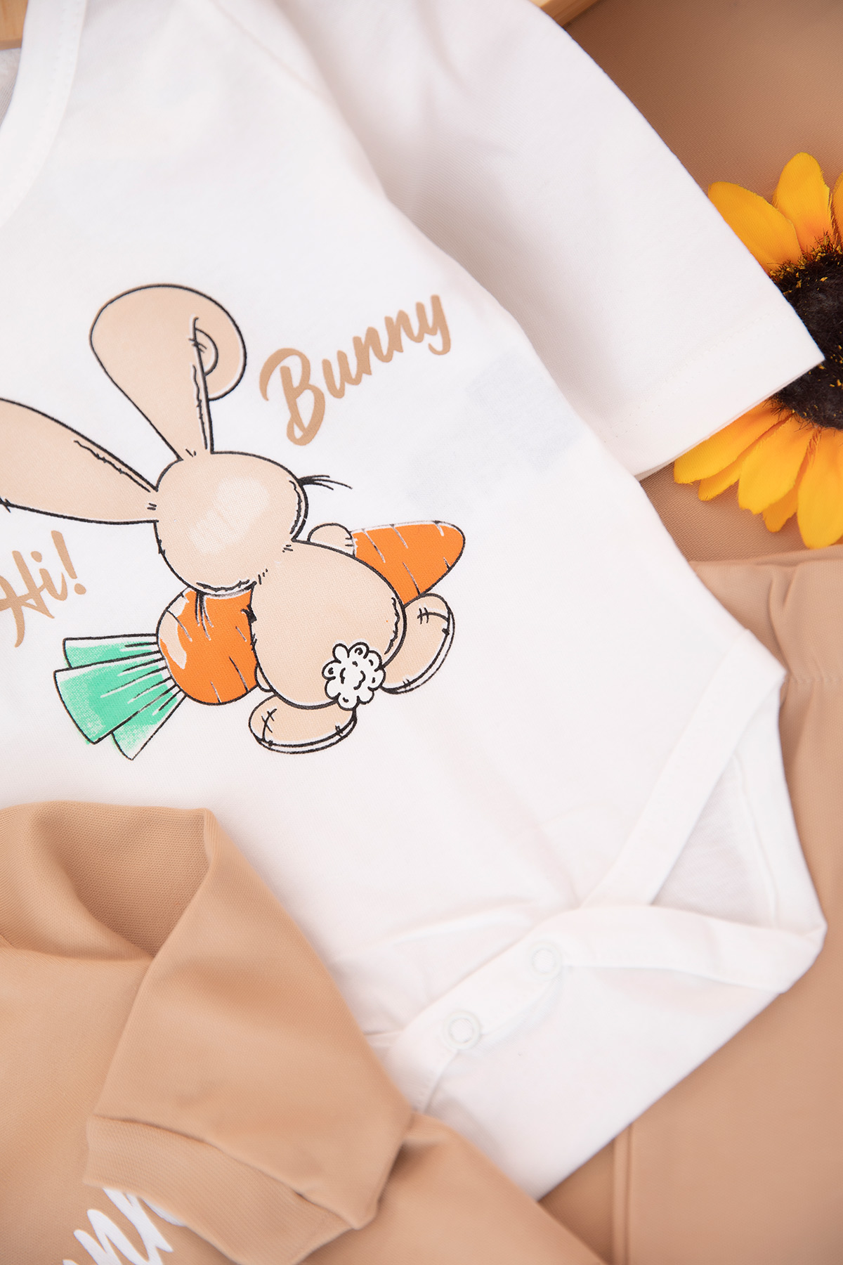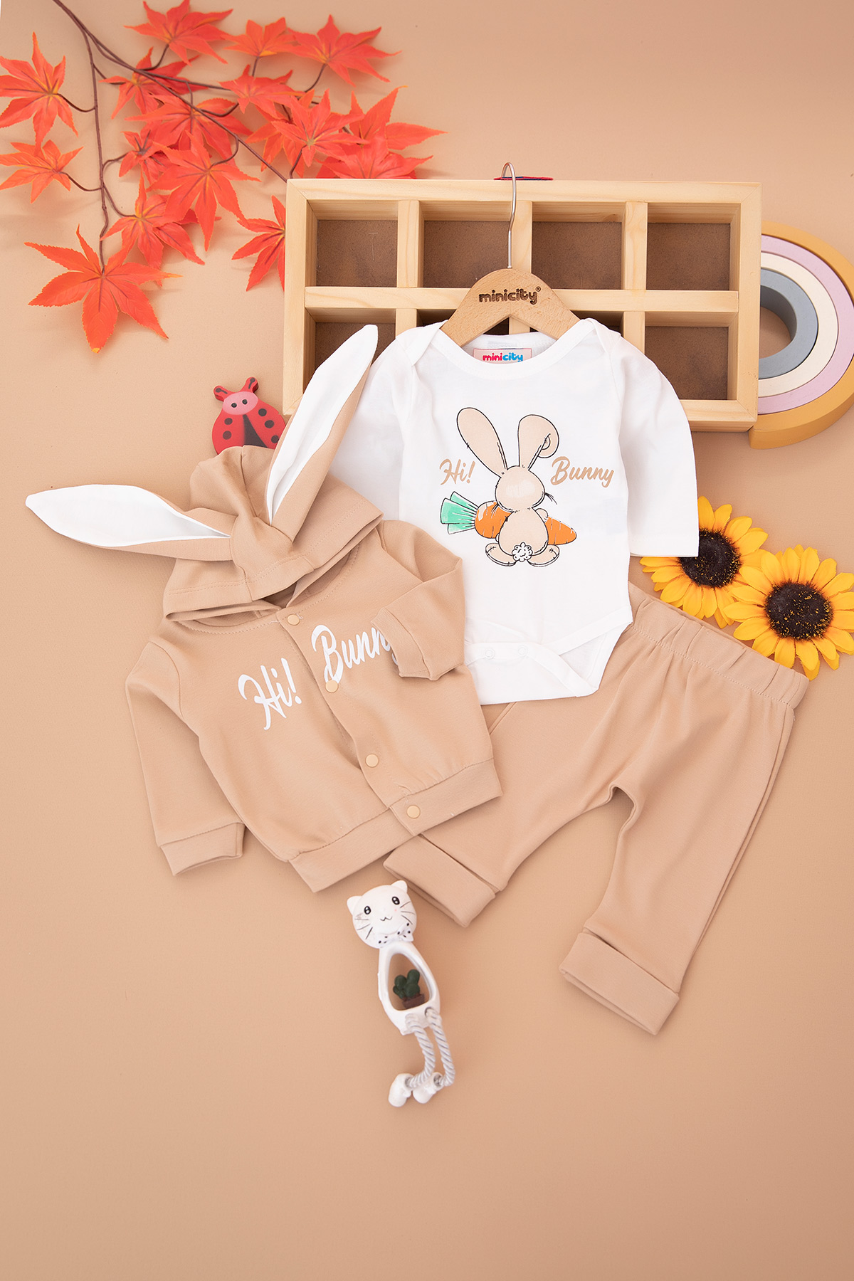 Kız Bebek Hi Bunny Baskılı Hırka 3`Lü Takım - 140018 (0-12 Ay)