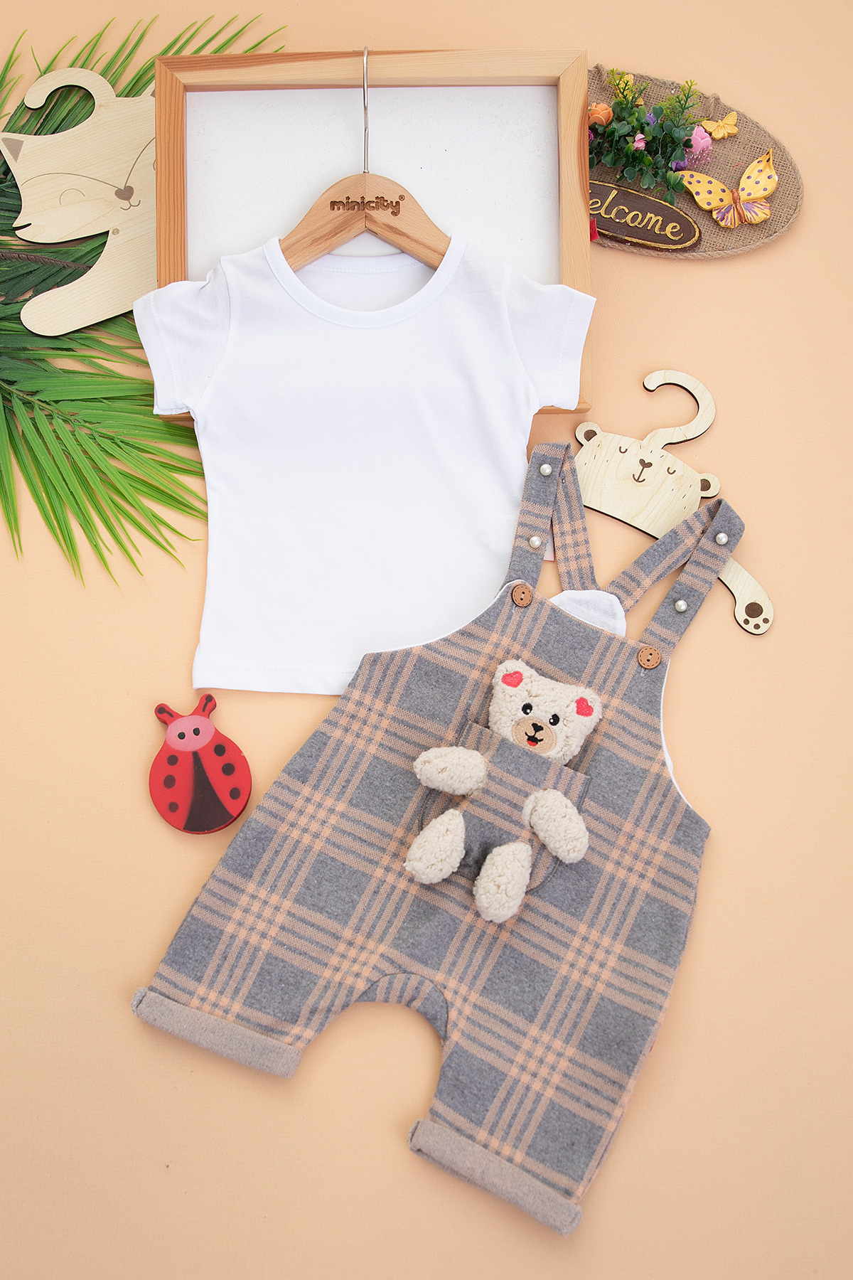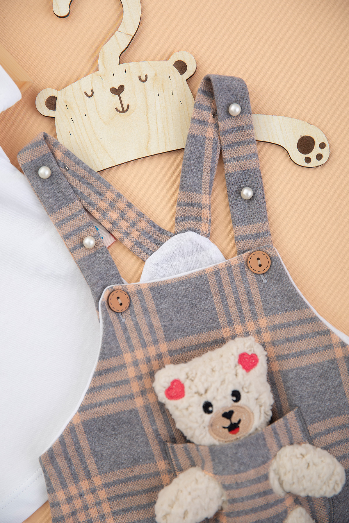 Kız Bebek İnci Detaylı Salopetli İkili Takım - 65131 (6-18 Ay)
