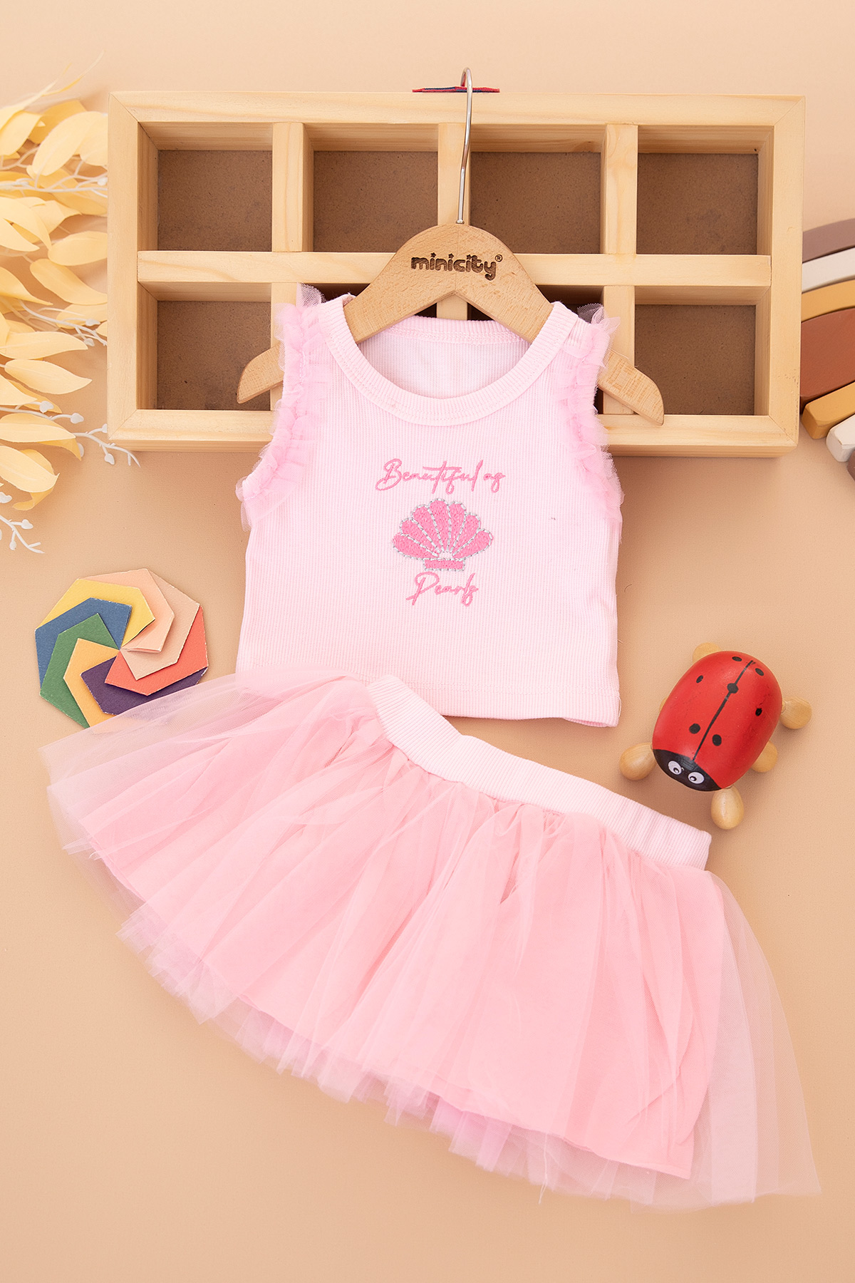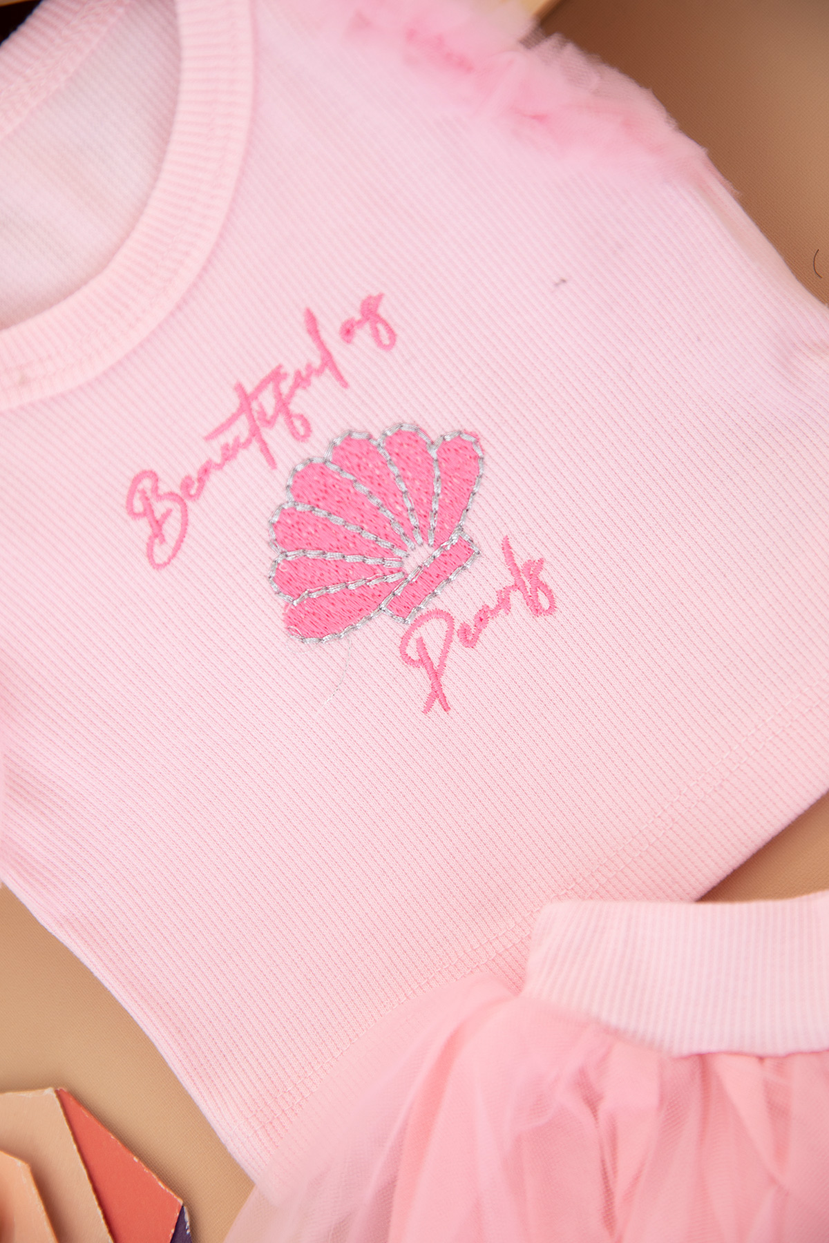 Kız Bebek İnci Nakışlı Tütü Etekli Takım - 252327 (6-18 Ay)
