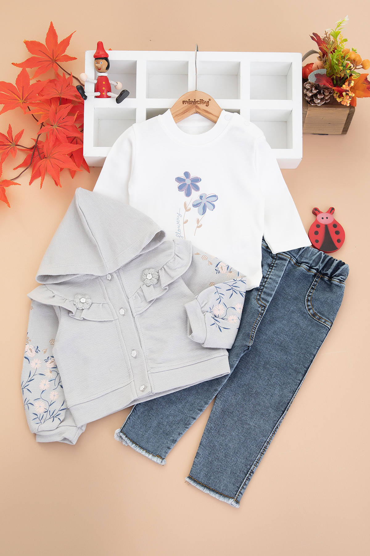 Kız Bebek Jakarlı Kot Pantolon Takım - 1083 (9-24 Ay)