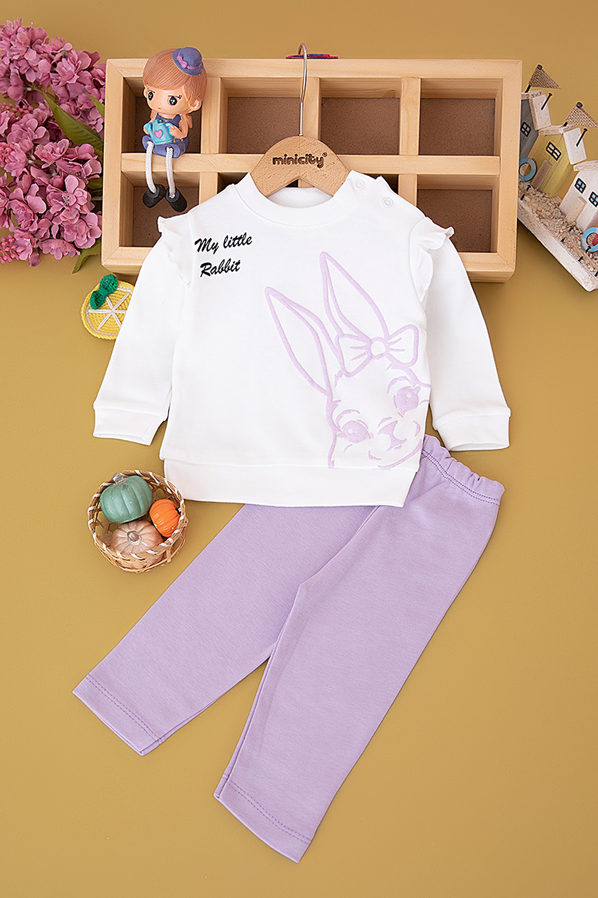 Kız Bebek Kabartma Tavşan Baskılı Takım (9-18 Ay)