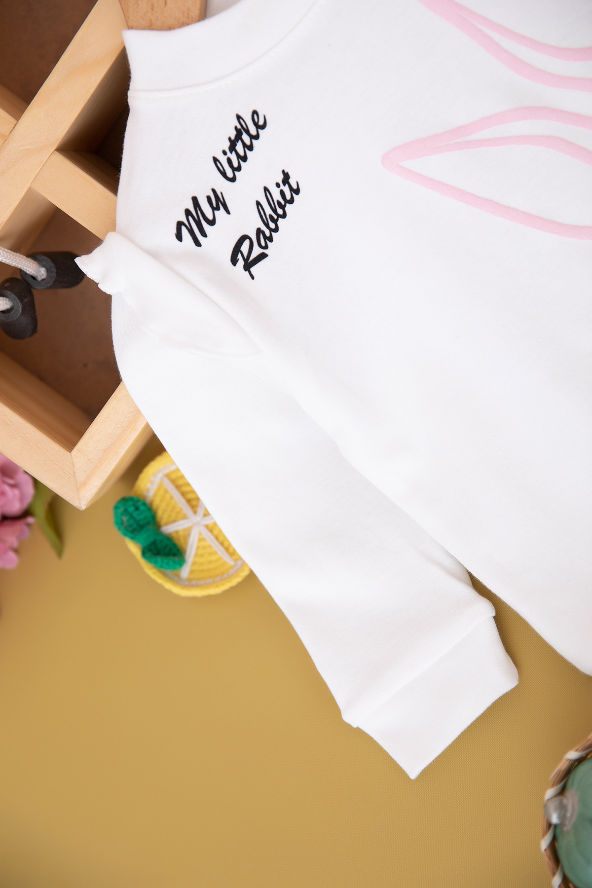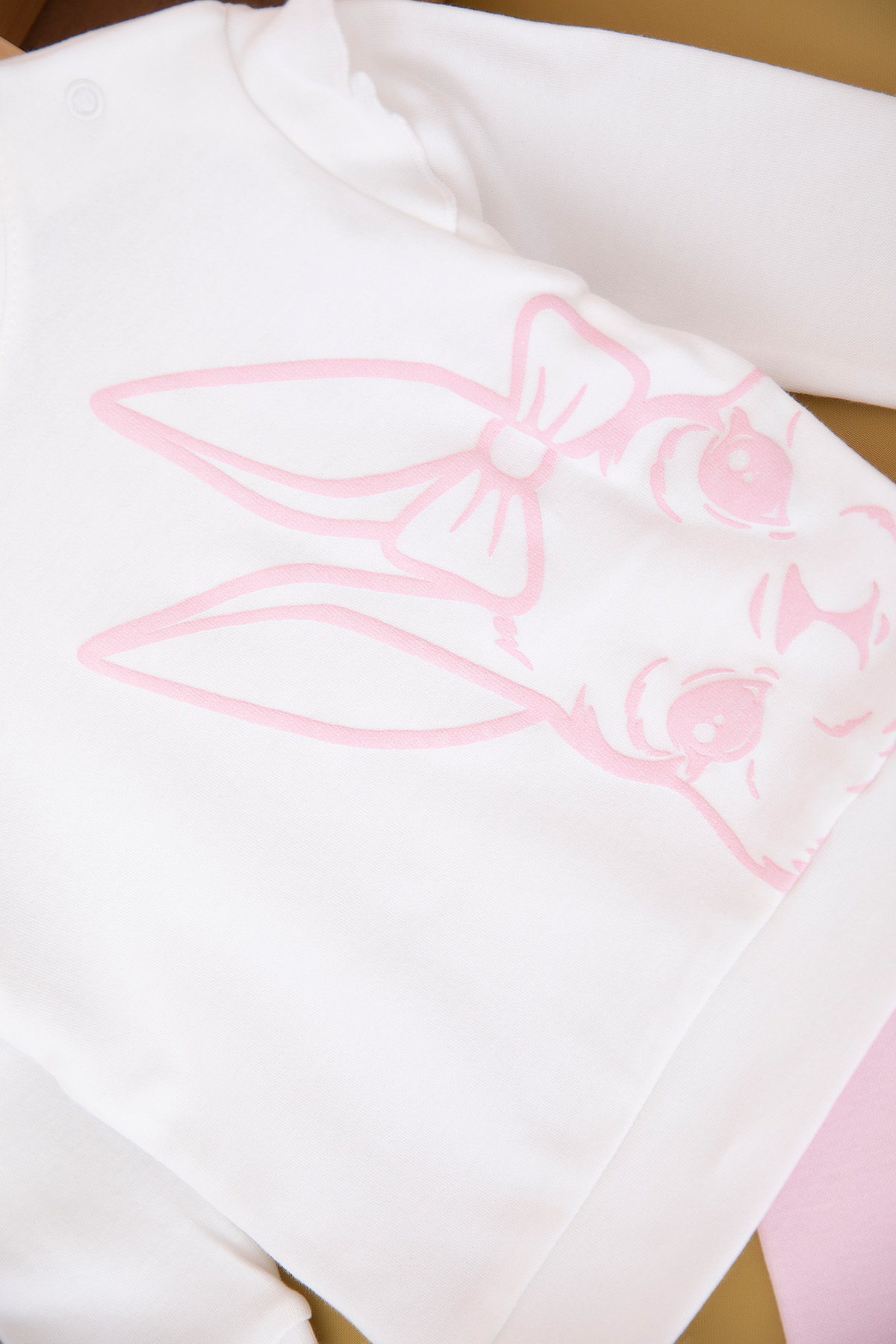 Kız Bebek Kabartma Tavşan Baskılı Takım (9-18 Ay)