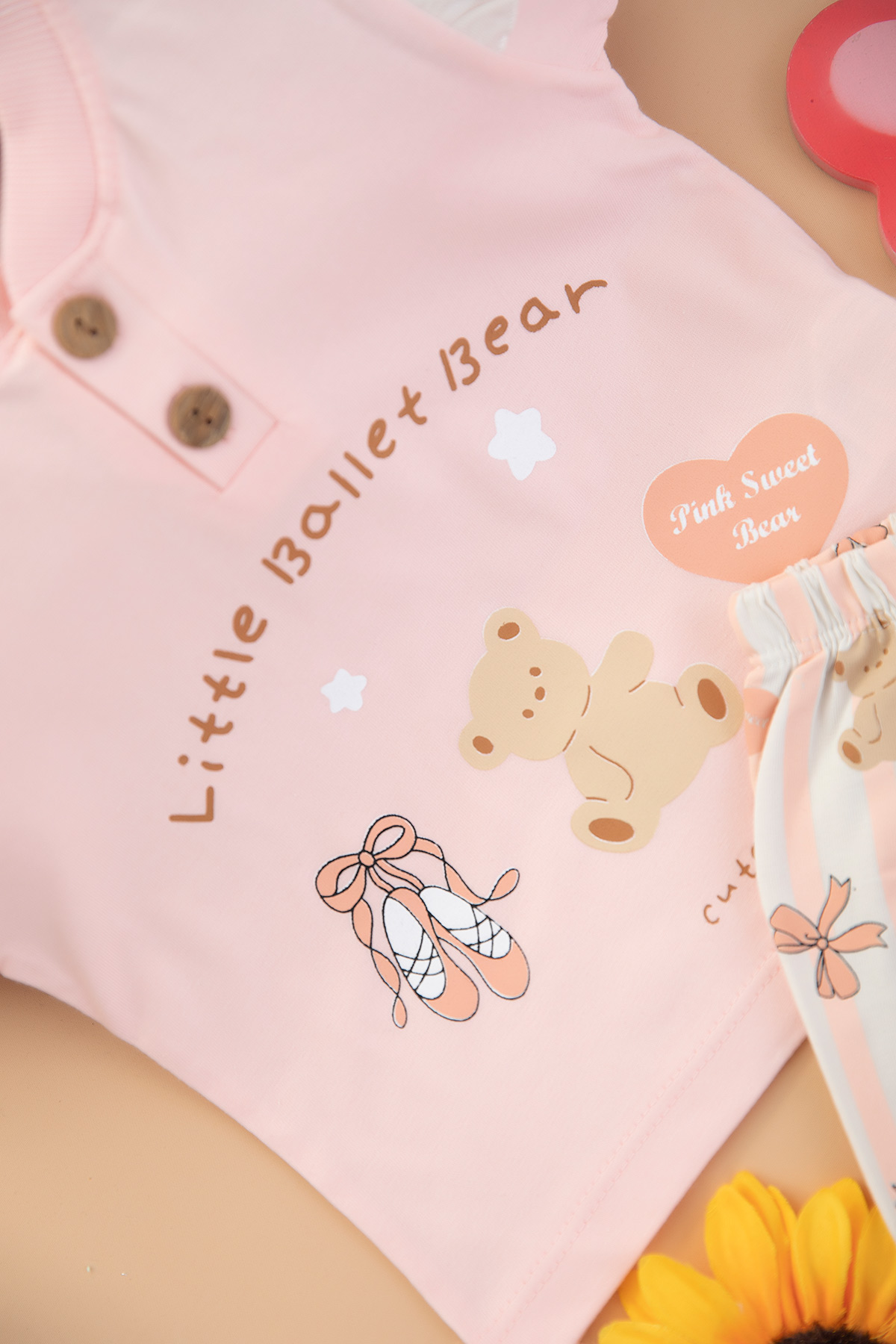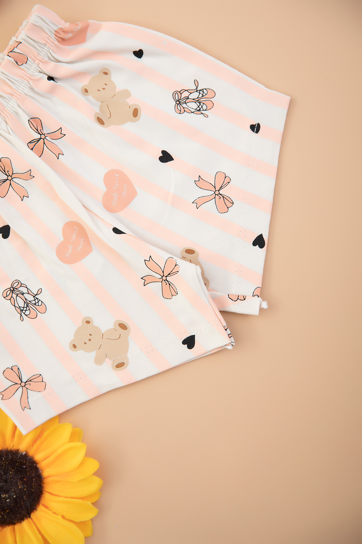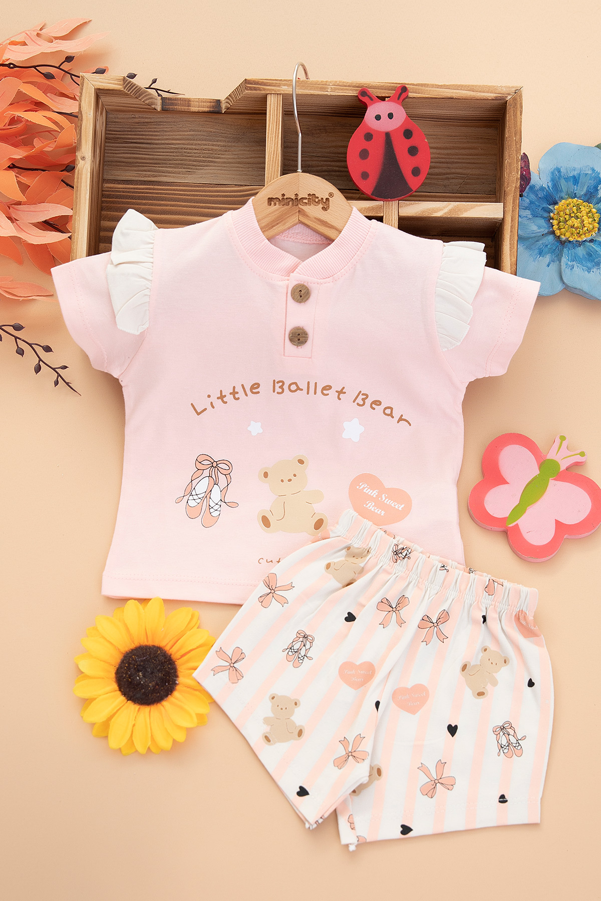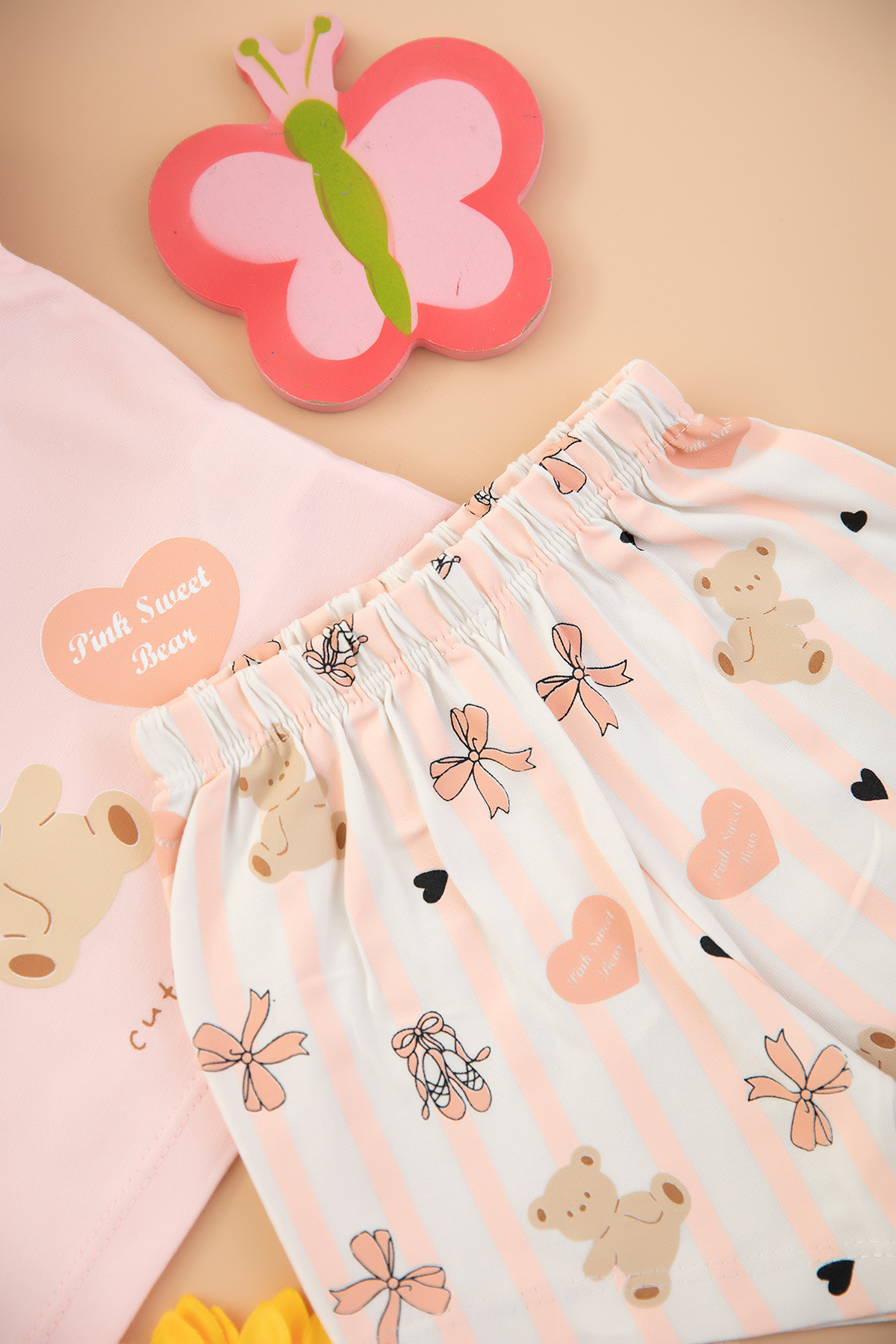 Kız Bebek Kalp Ayıcık Baskılı Şortlu Takım - 8025 (6-24 Ay)