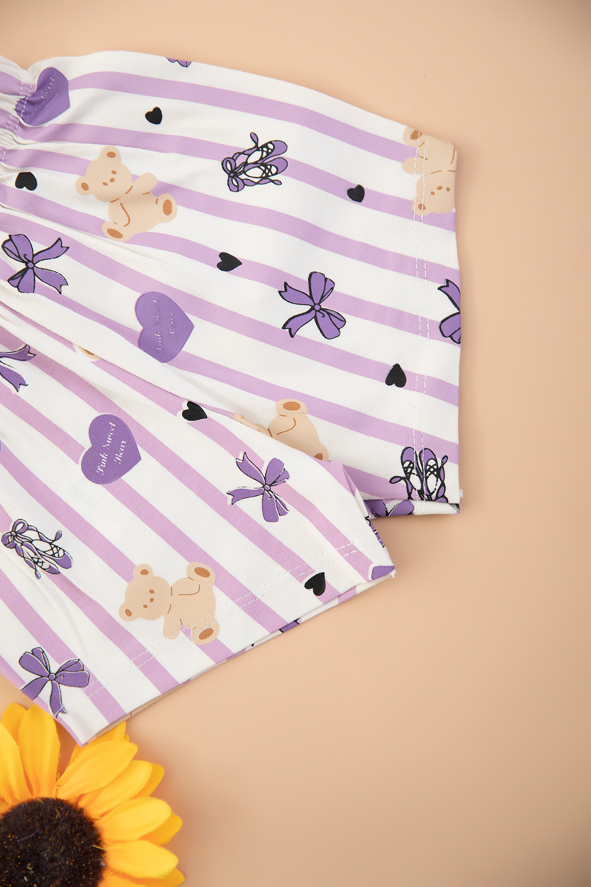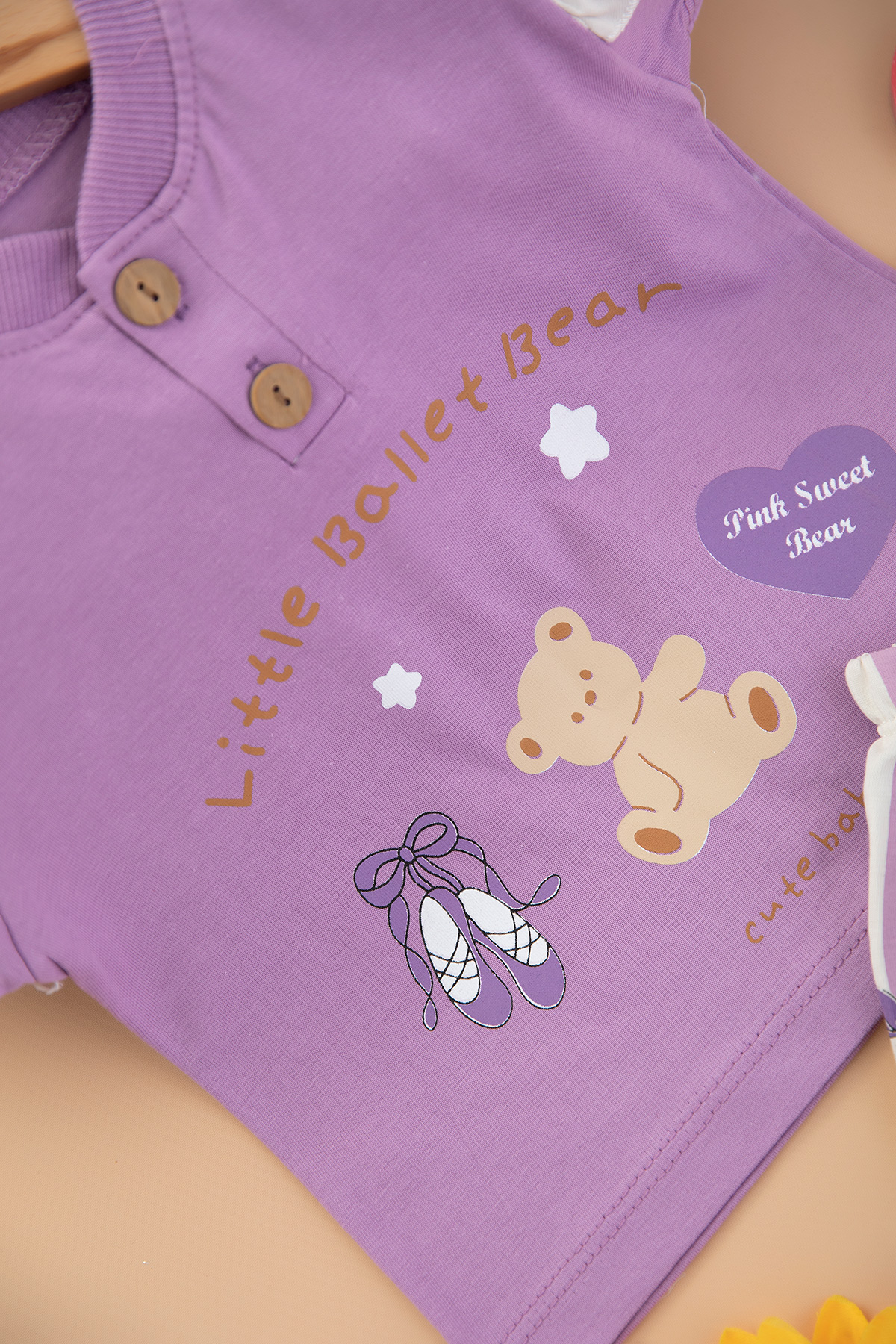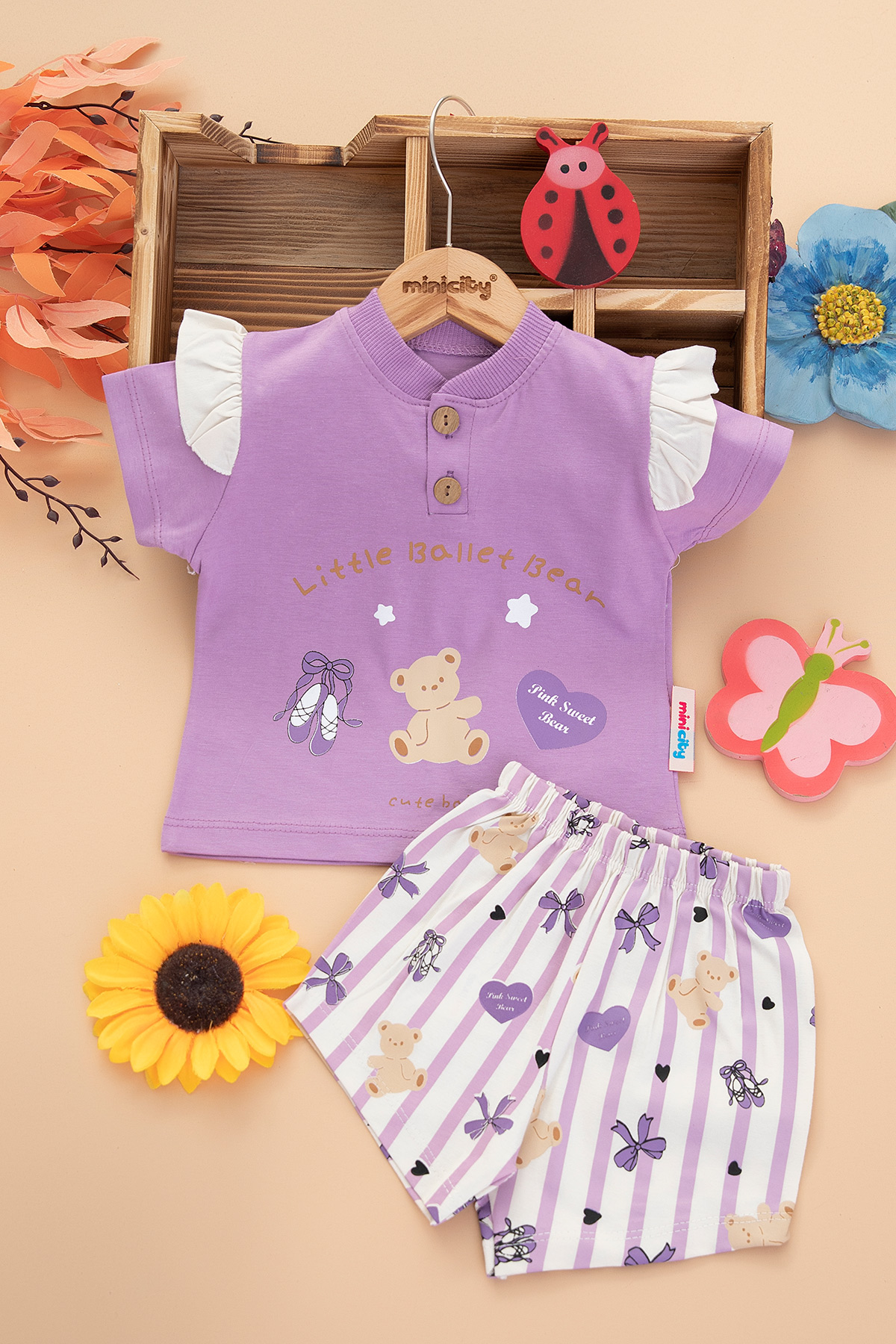 Kız Bebek Kalp Ayıcık Baskılı Şortlu Takım - 8025 (6-24 Ay)