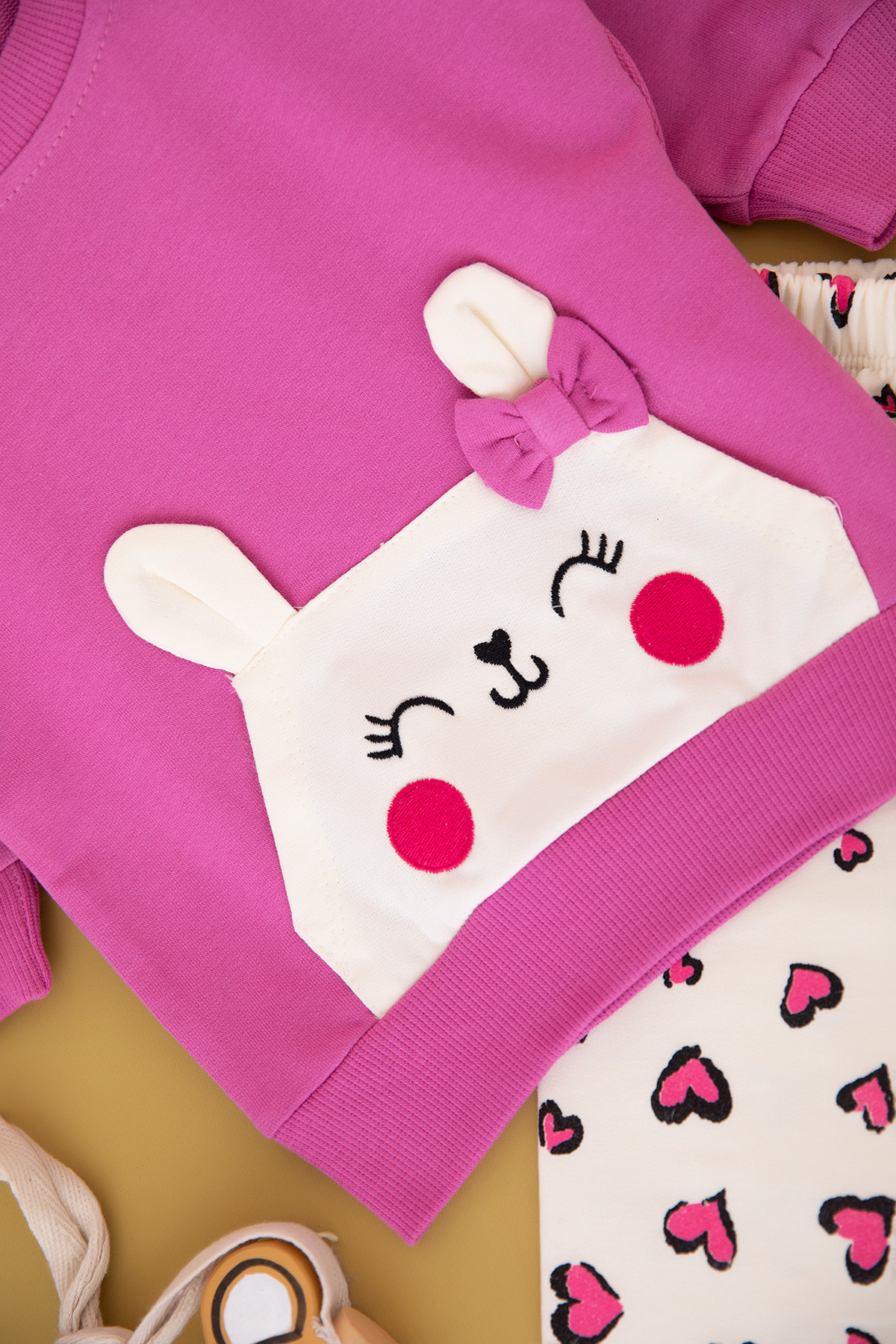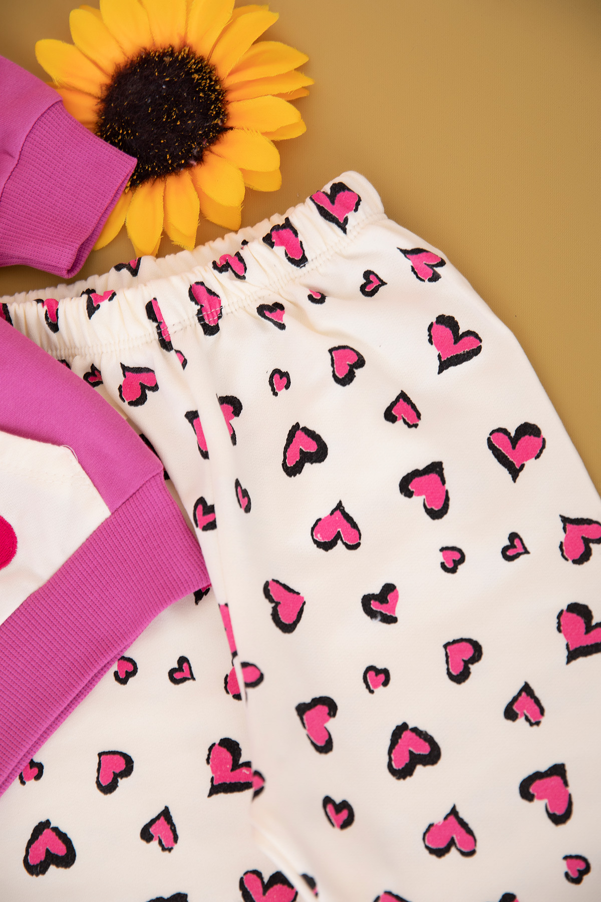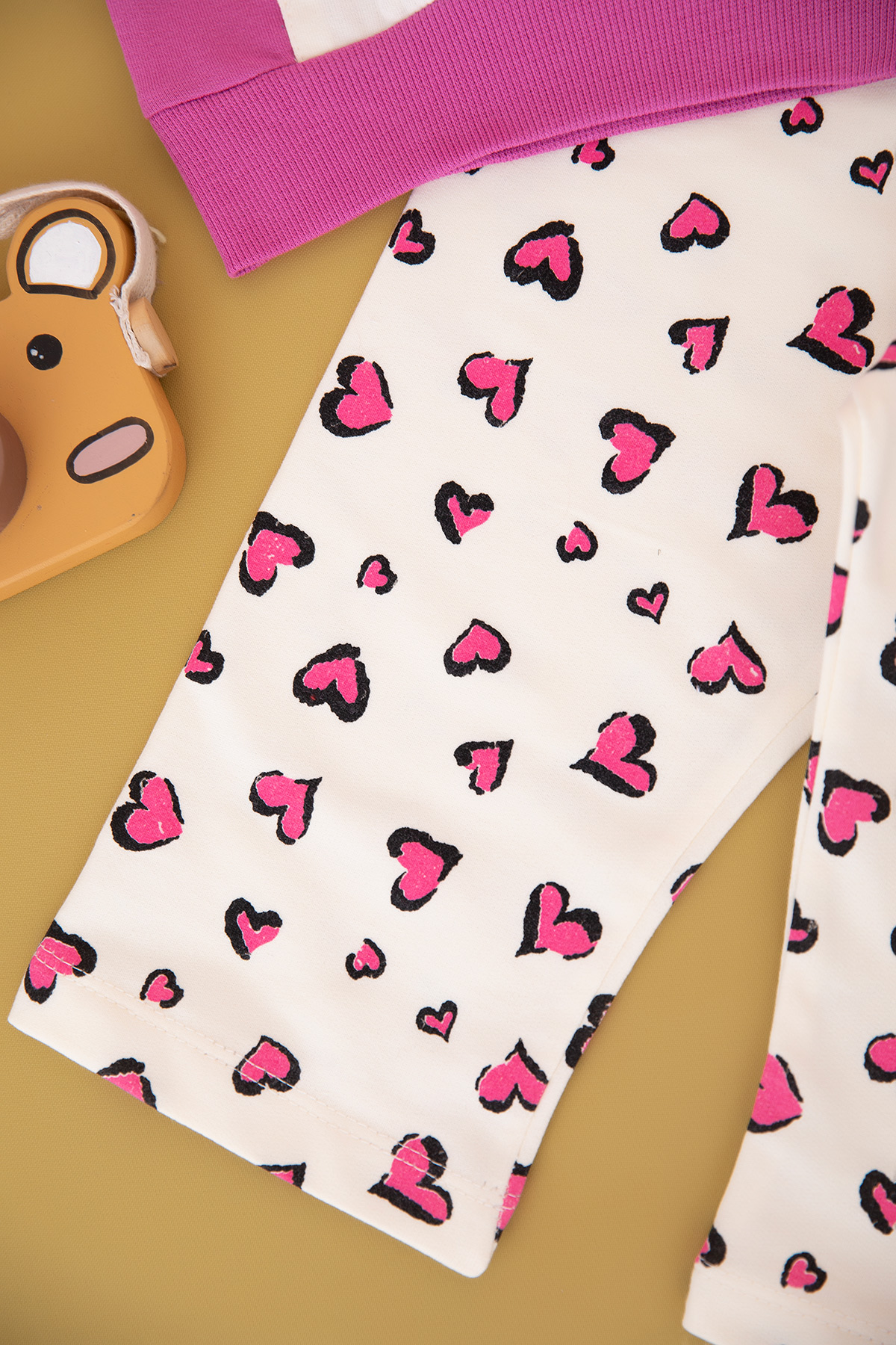 Kız Bebek Kalp Ayıcık Baskılı Takım - 3149 (6-24 Ay)