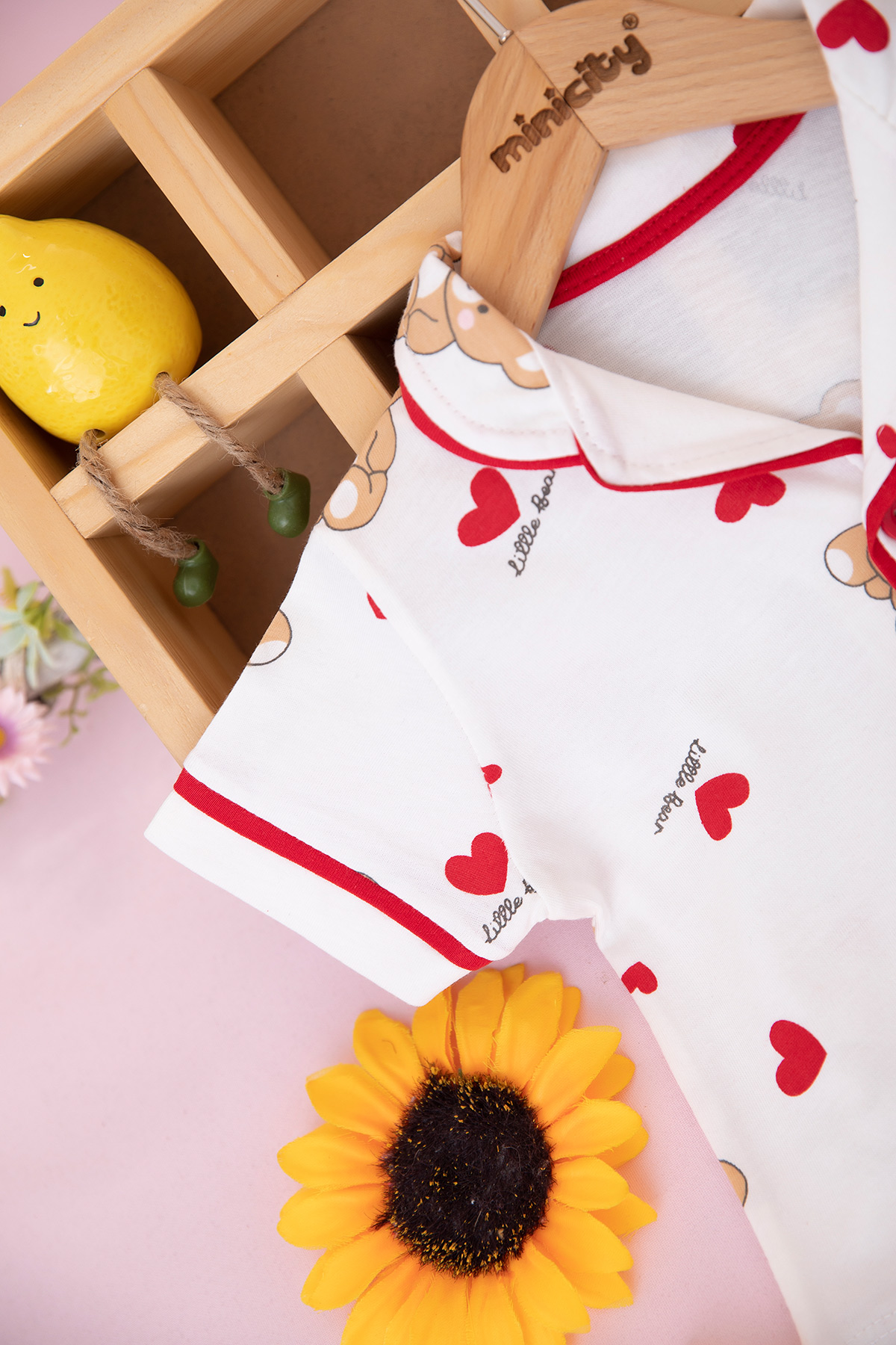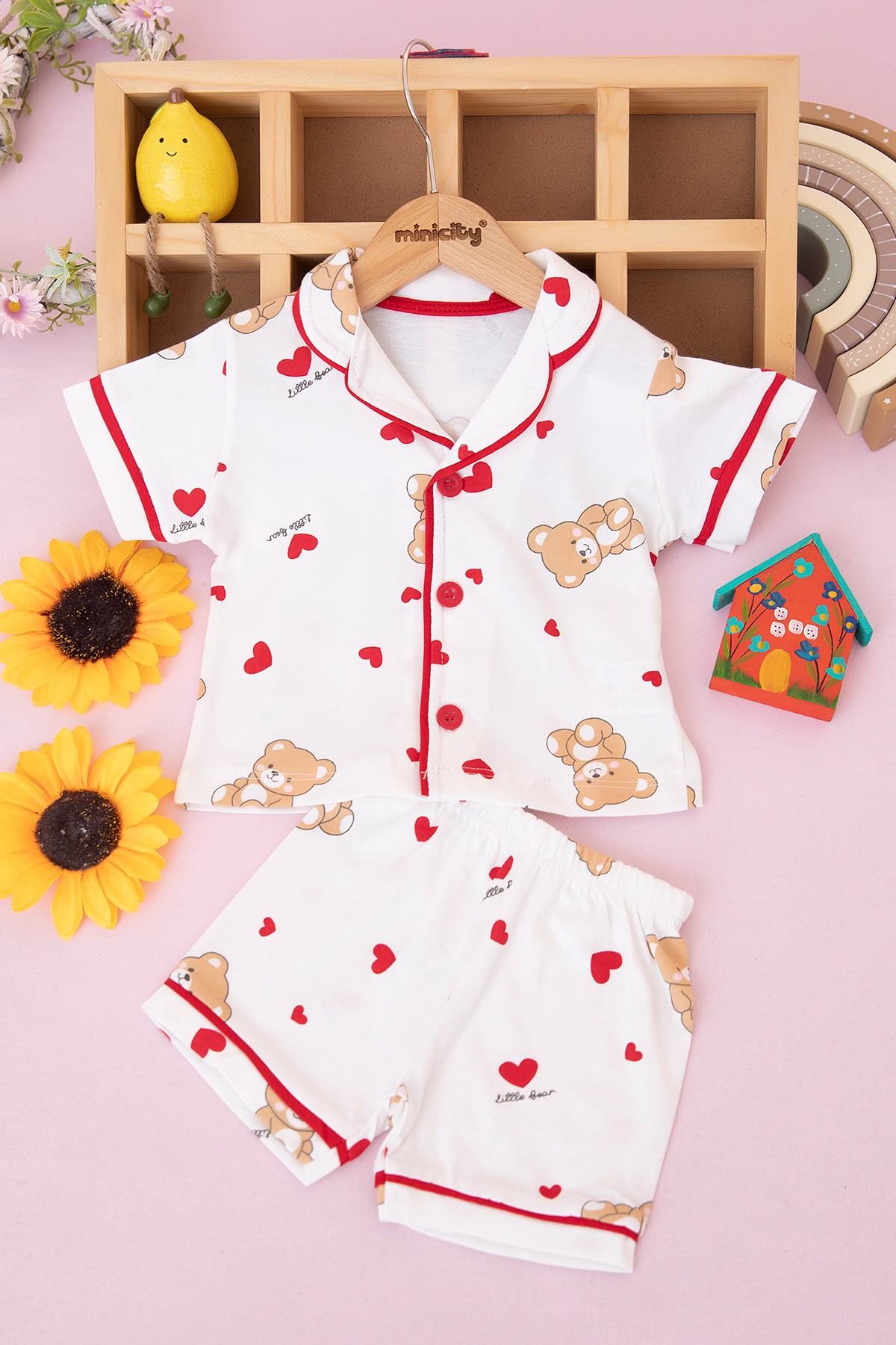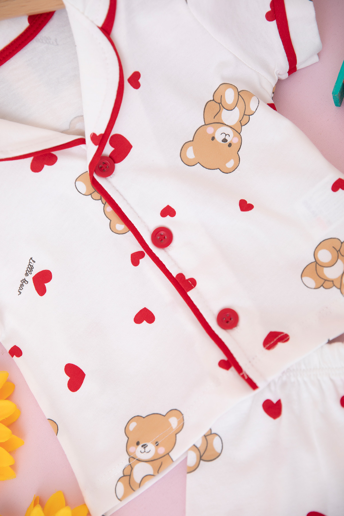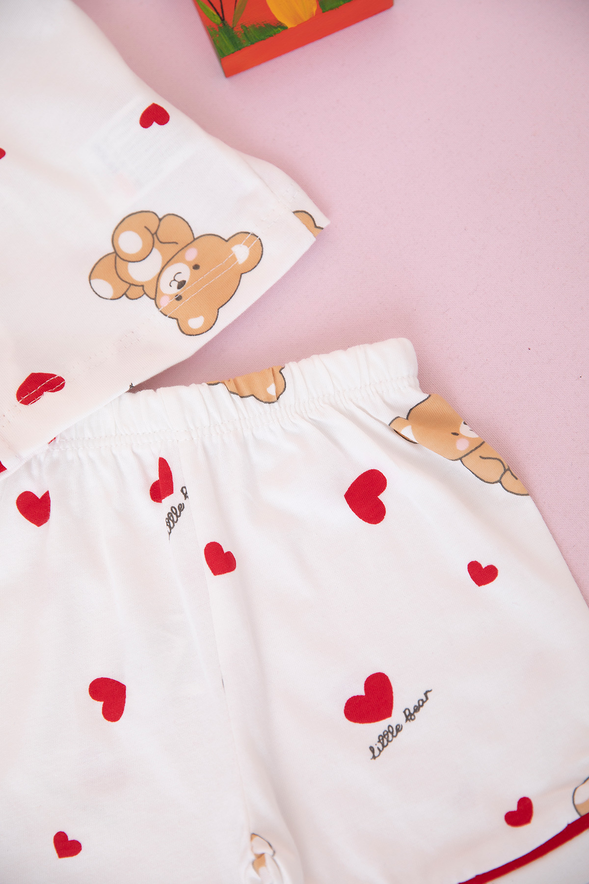 Kız Bebek Kalp Ayıcık Şortlu Pijama Takım - 6114 (6-24 Ay)