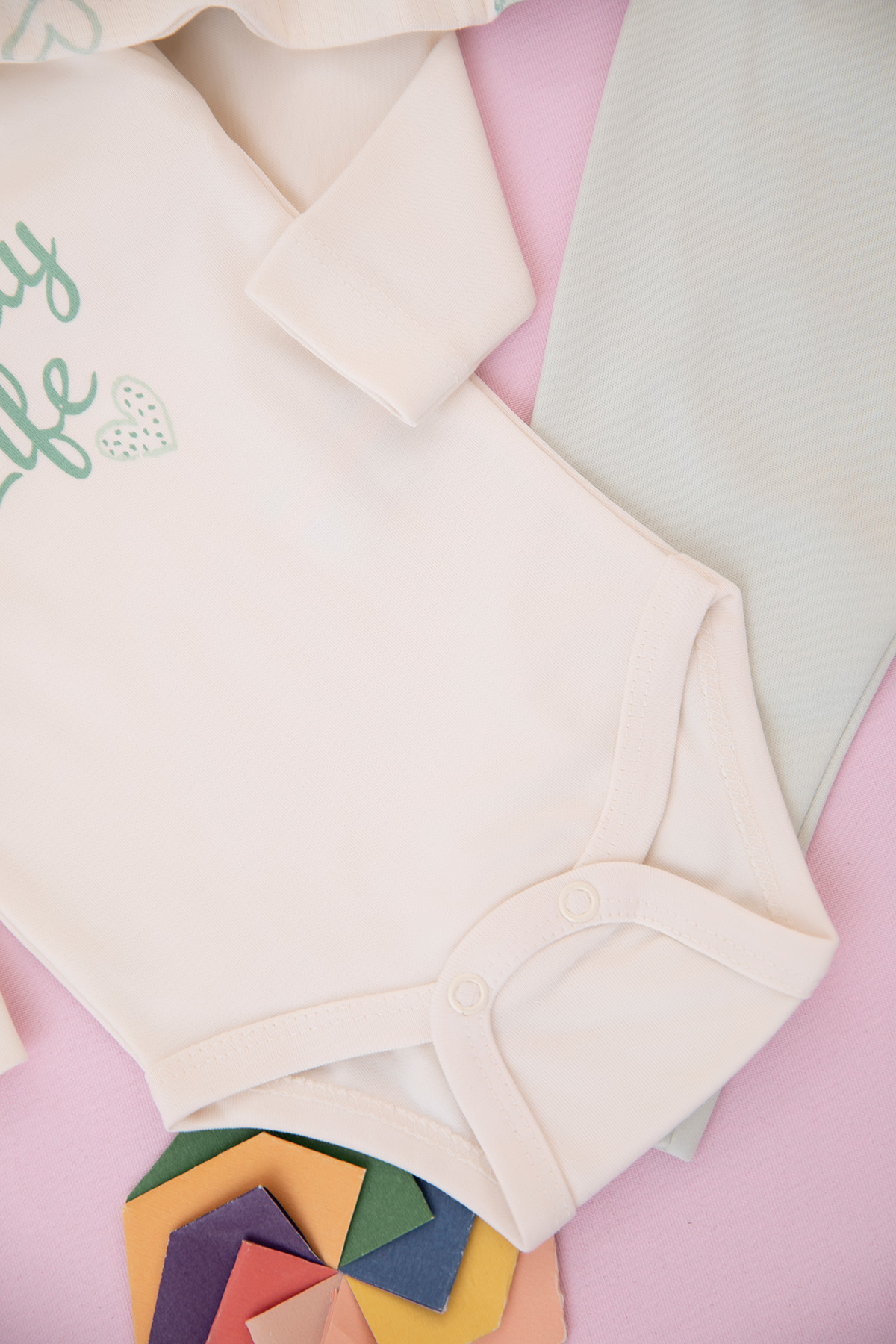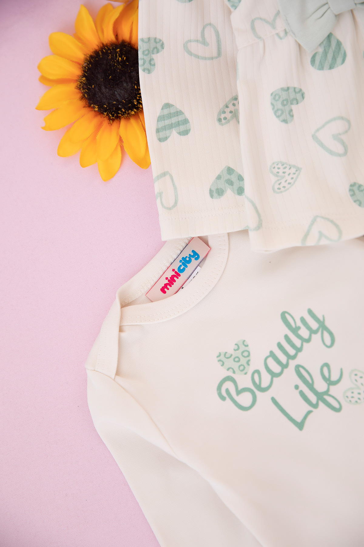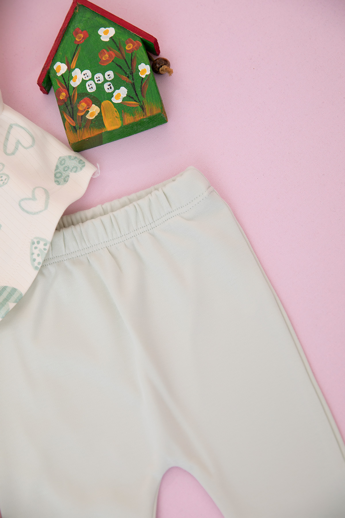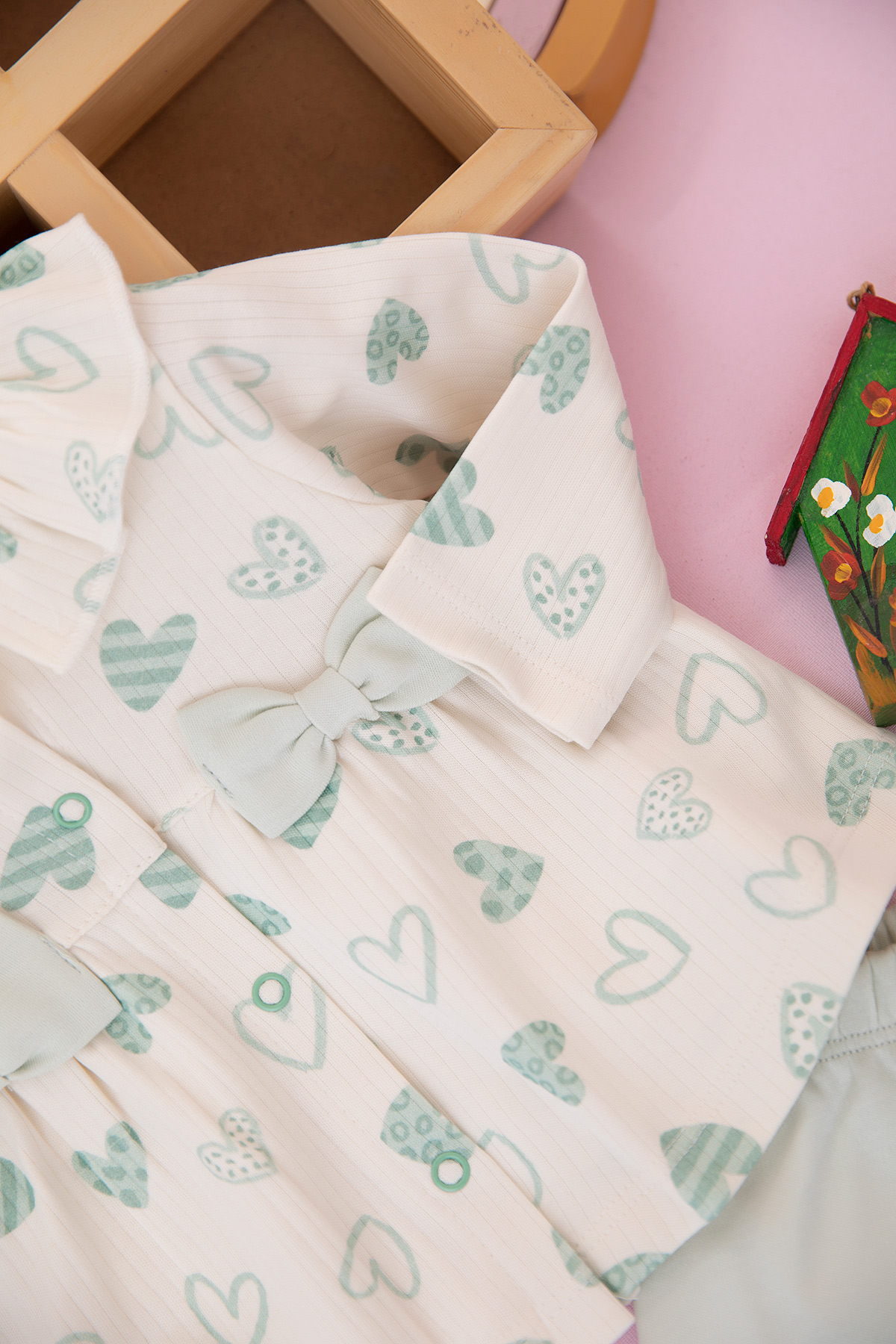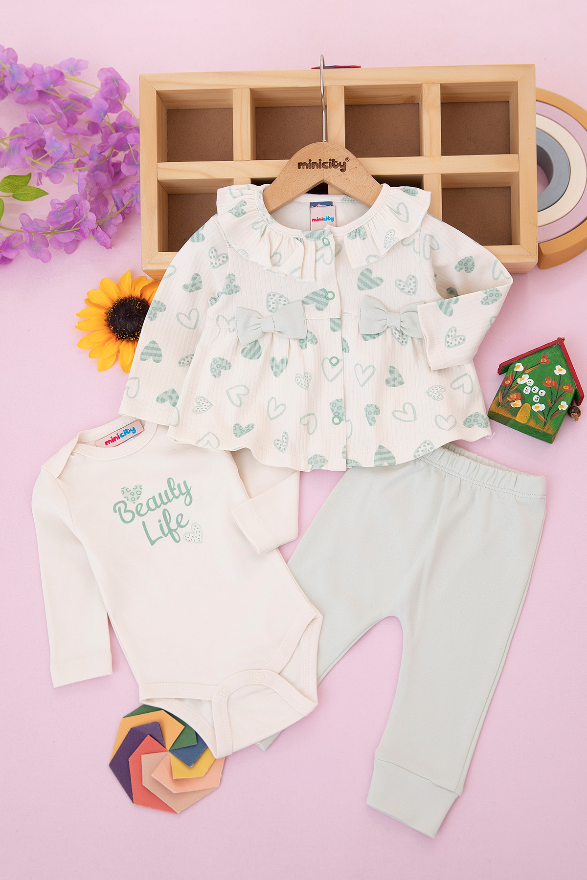 Kız Bebek Kalp Baskılı Badili Üçlü Takım - NB065 (3-12 Ay)