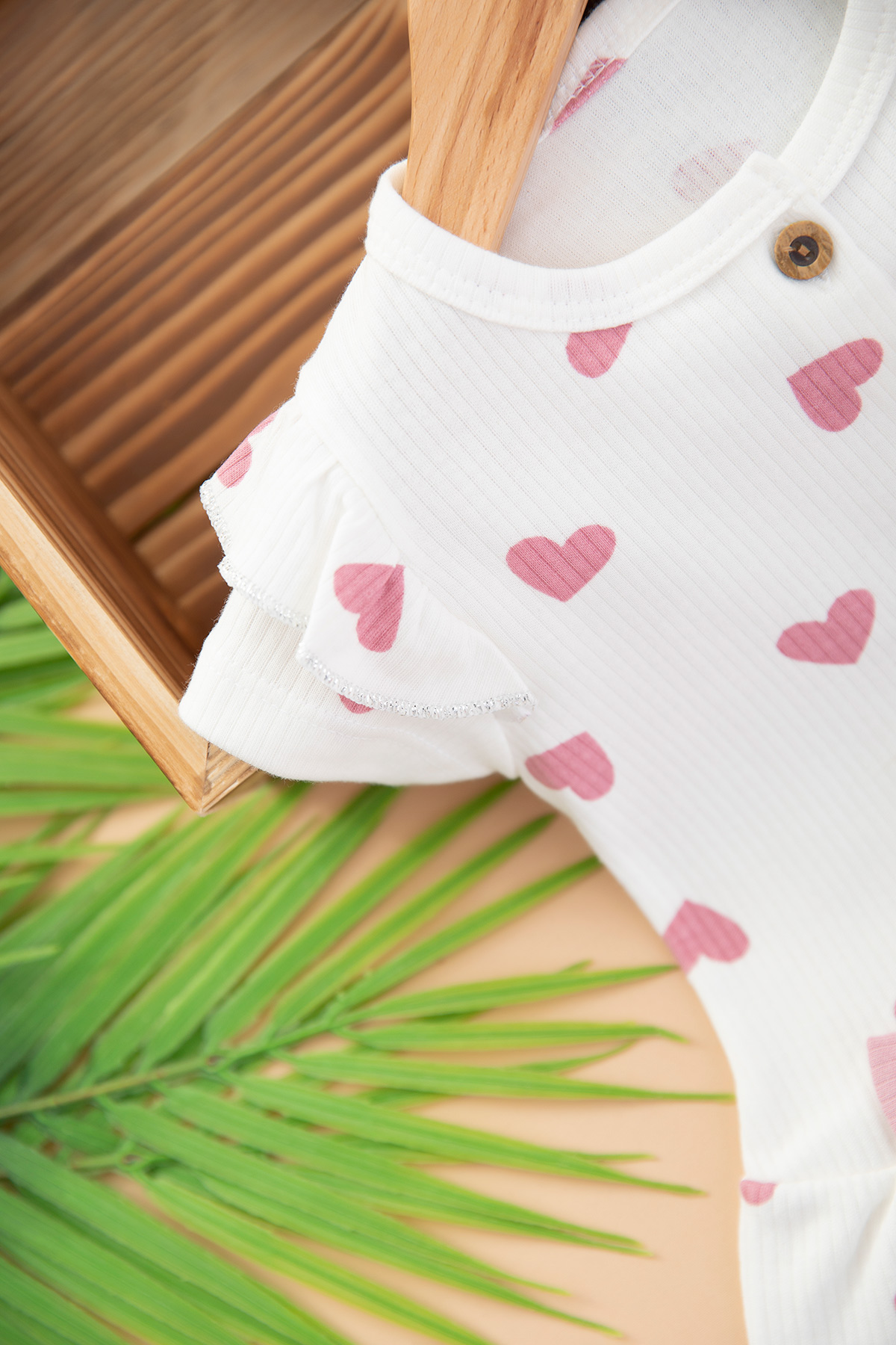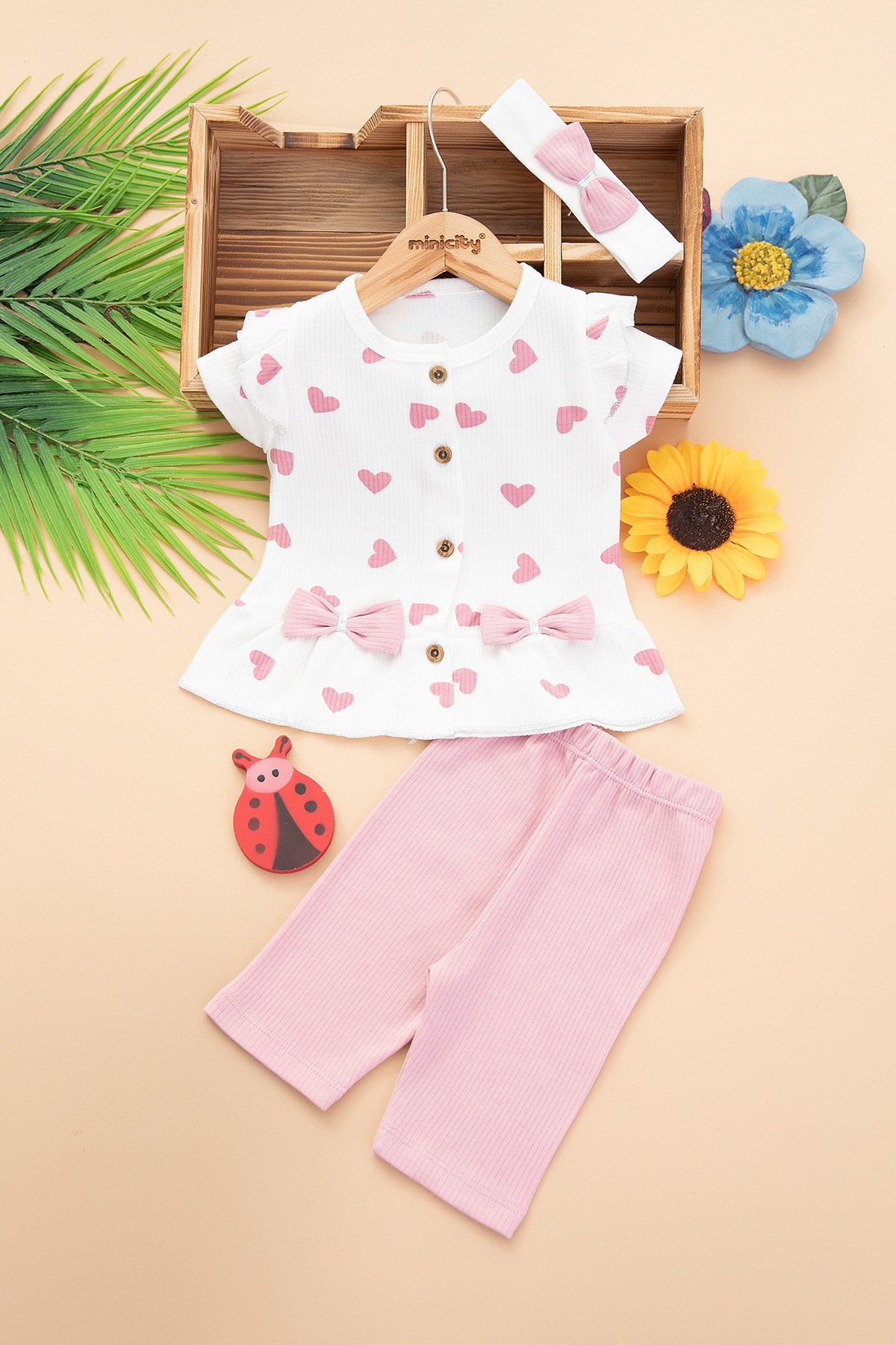 Kız Bebek Kalp Baskılı Bandanalı Takım - 1466 (6-12 Ay)