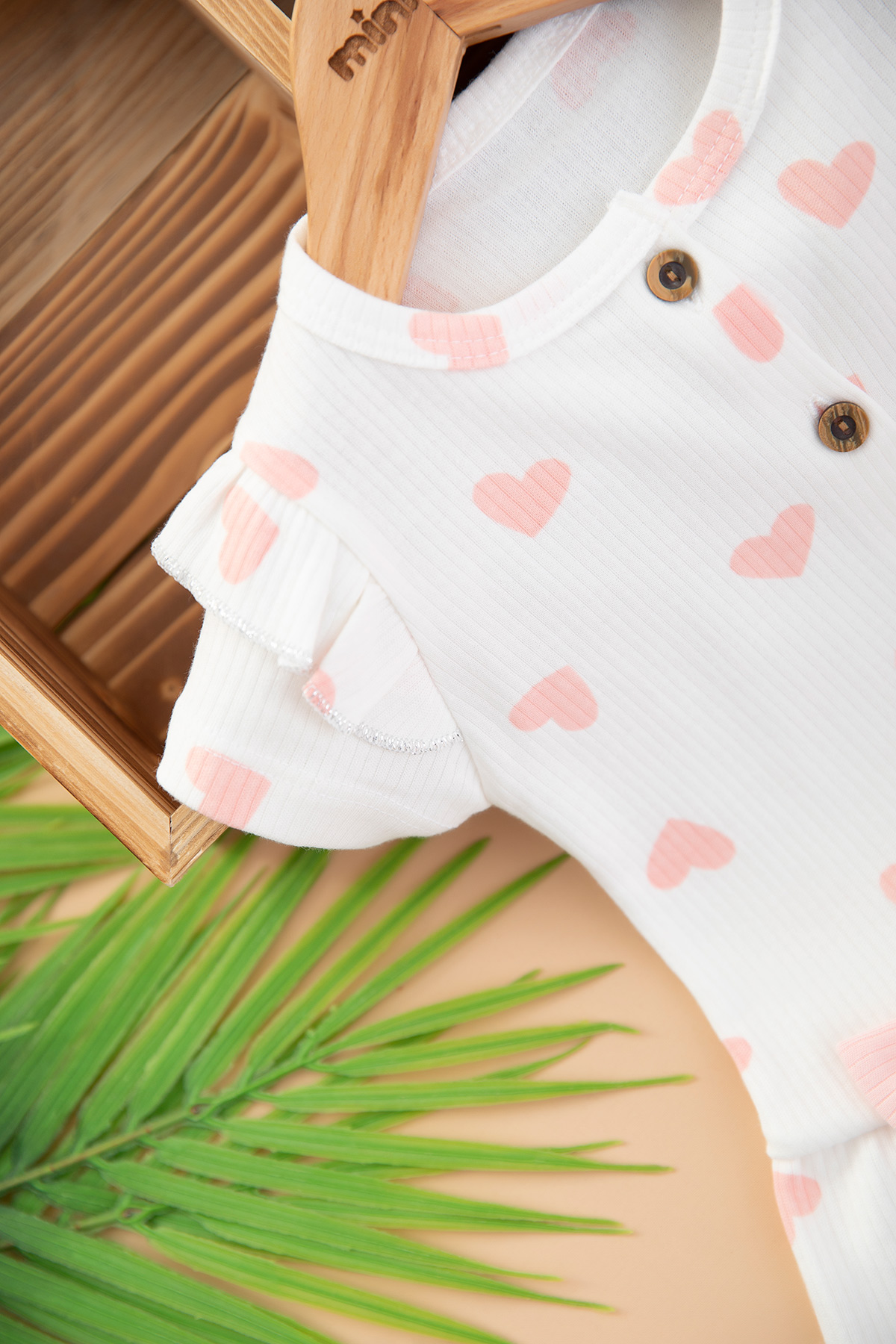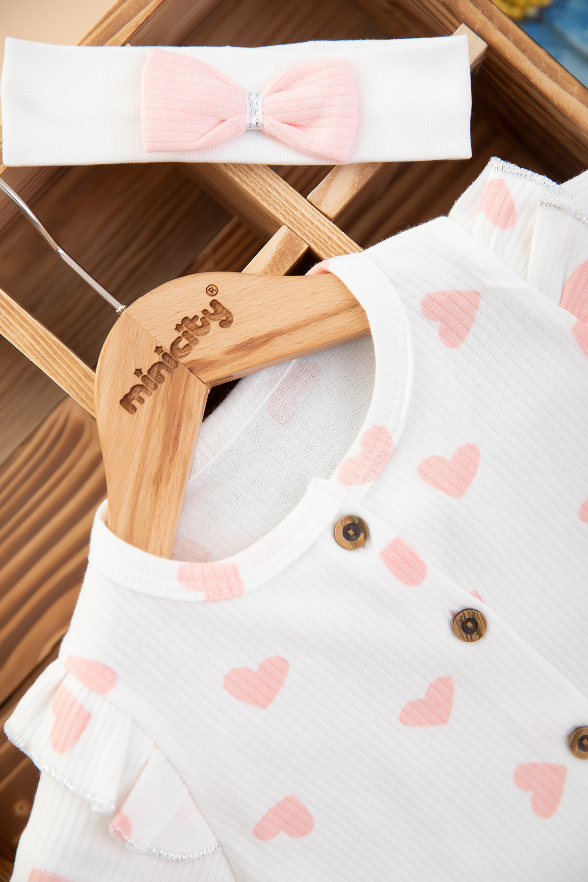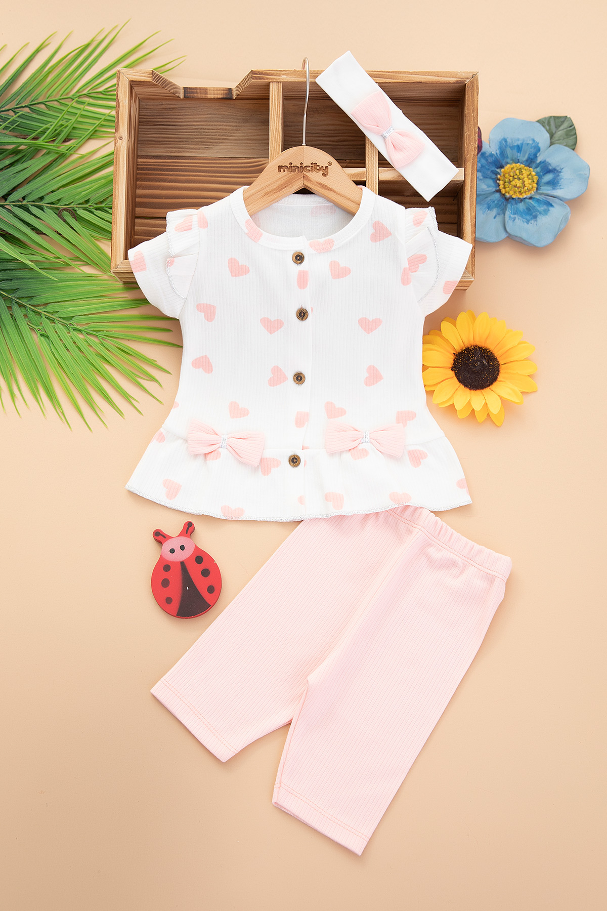 Kız Bebek Kalp Baskılı Bandanalı Takım - 1466 (6-12 Ay)