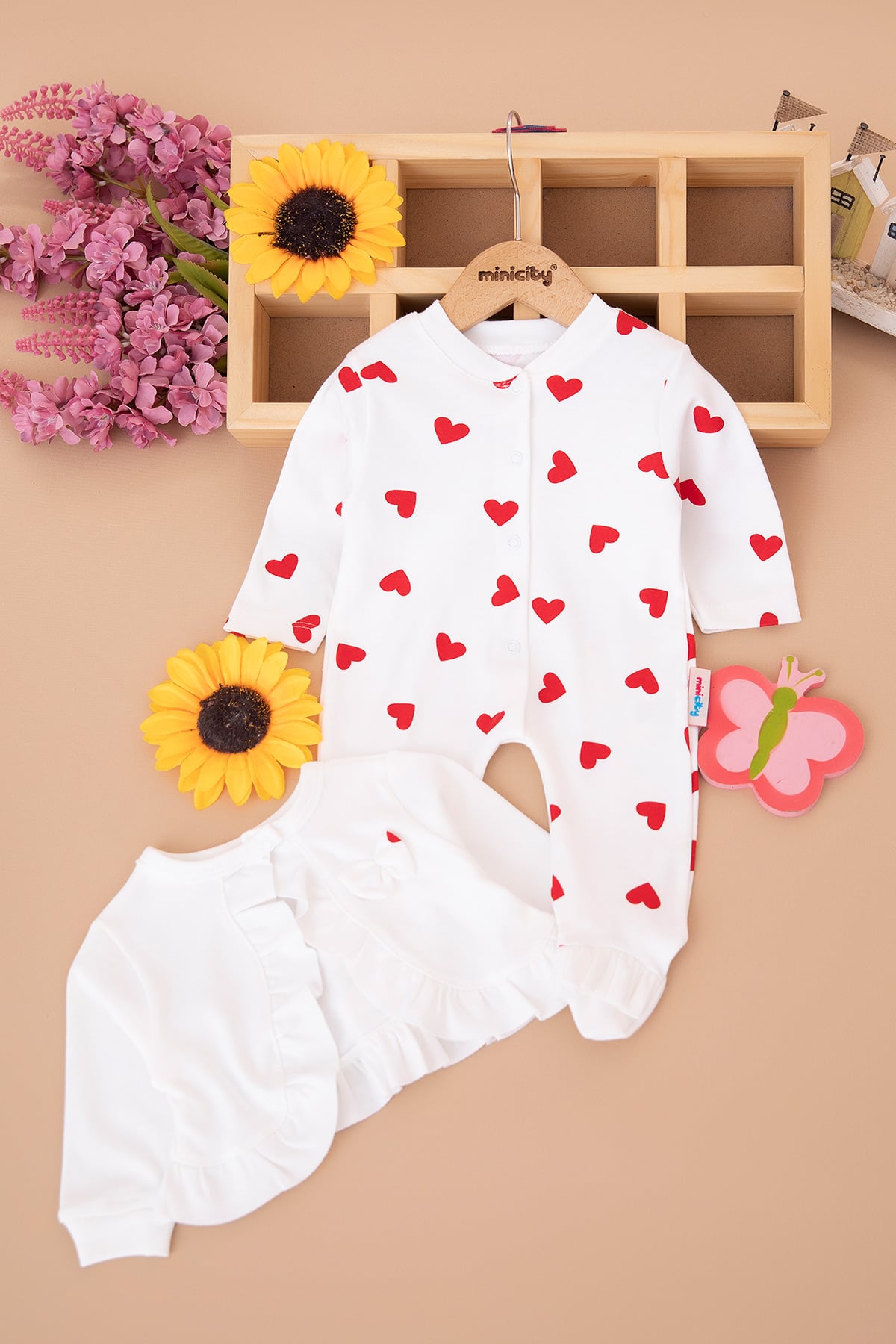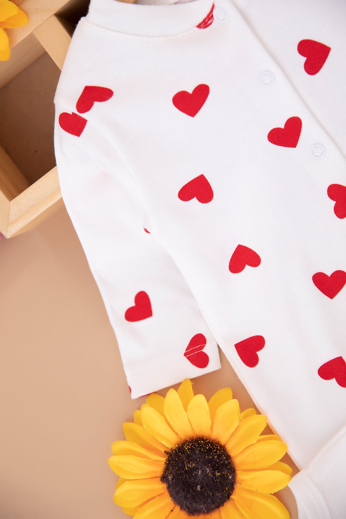 Kız Bebek Kalp Baskılı Bolerolu Tulum - 4357 (3-9 Ay)