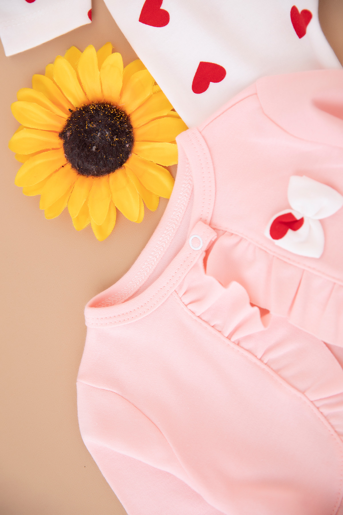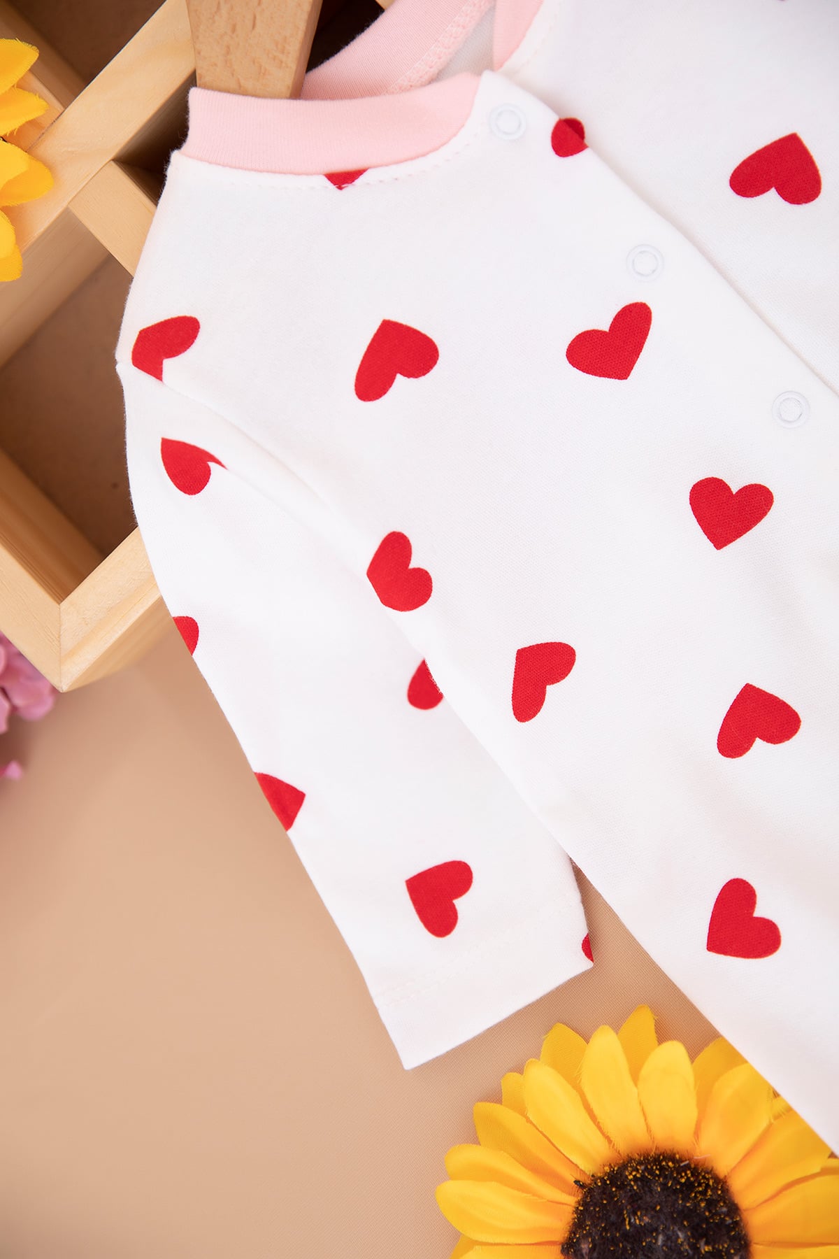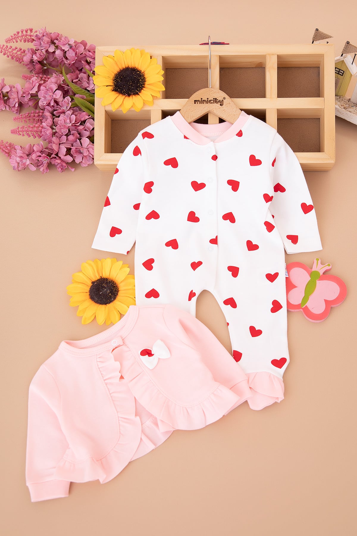 Kız Bebek Kalp Baskılı Bolerolu Tulum - 4357 (3-9 Ay)