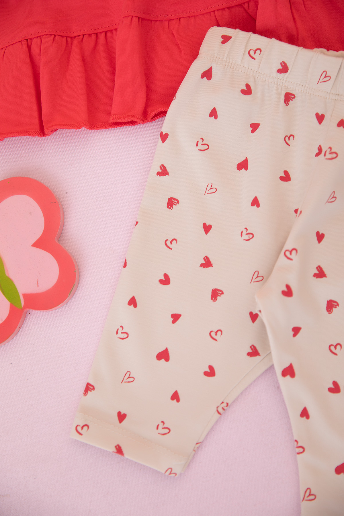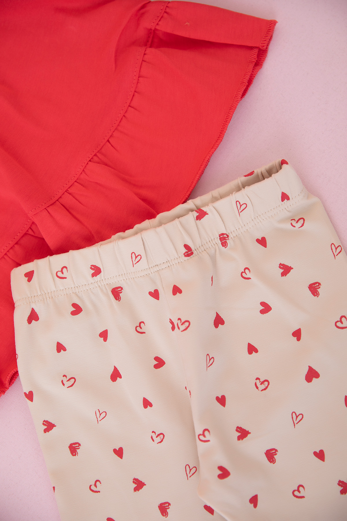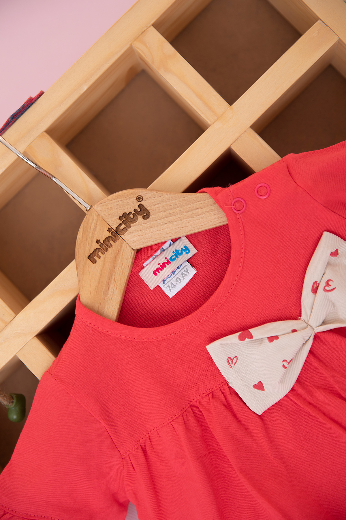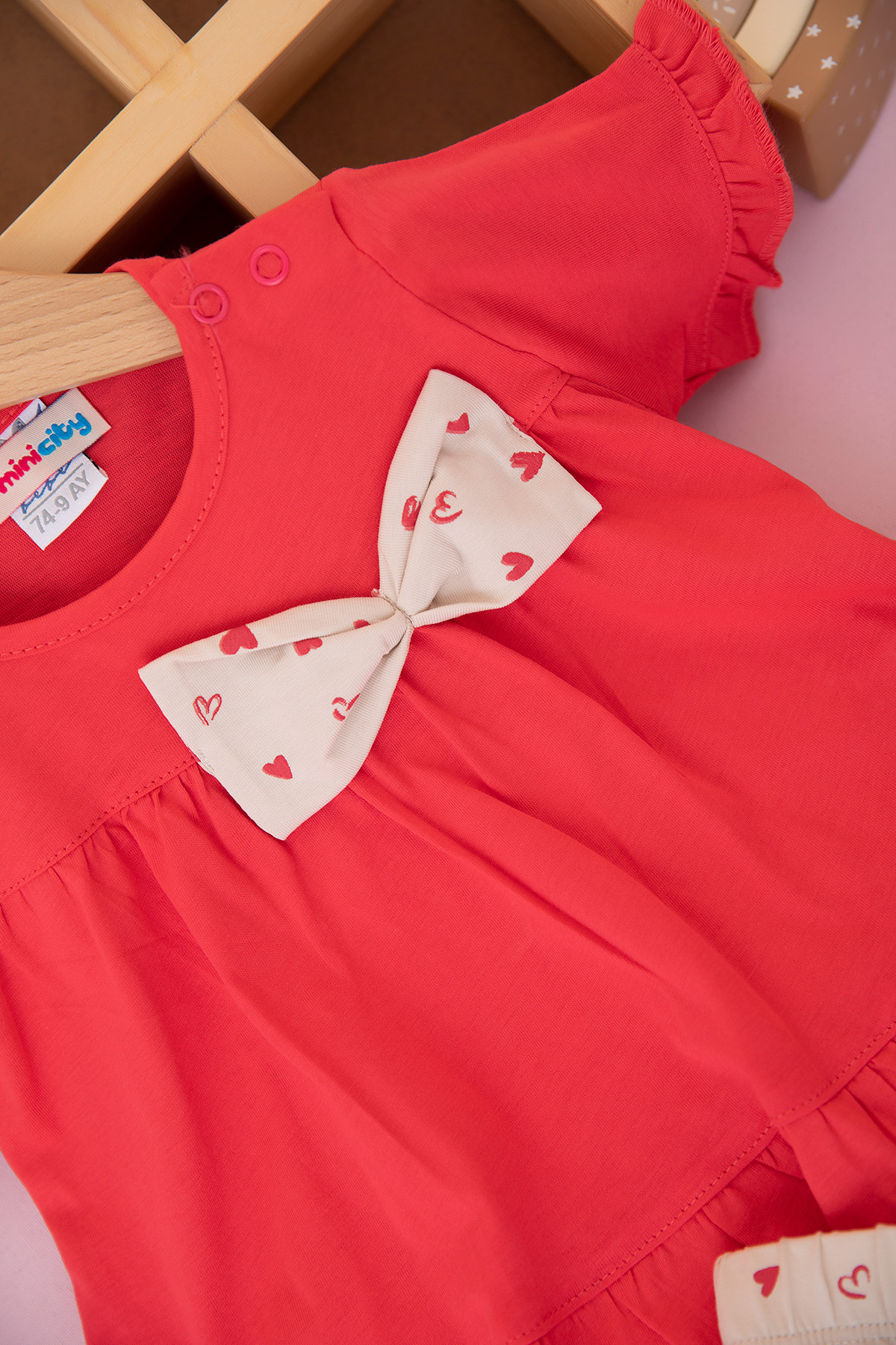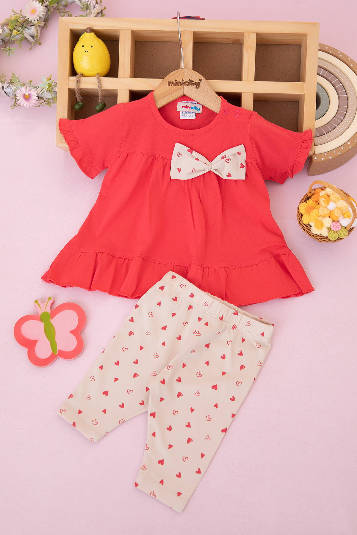 Kız Bebek Kalp Baskılı Fiyonklu Şortlu Takım - 26524 (9-24 Ay)
