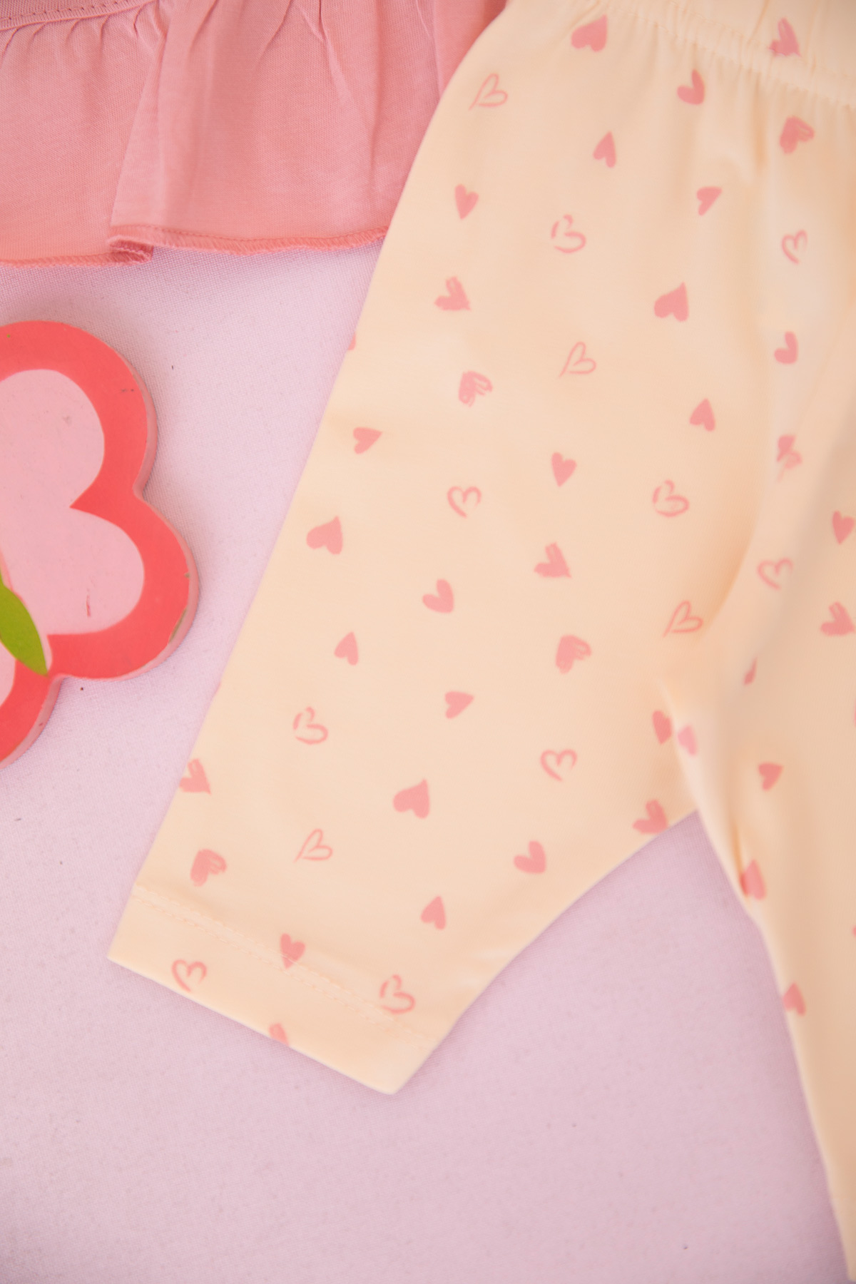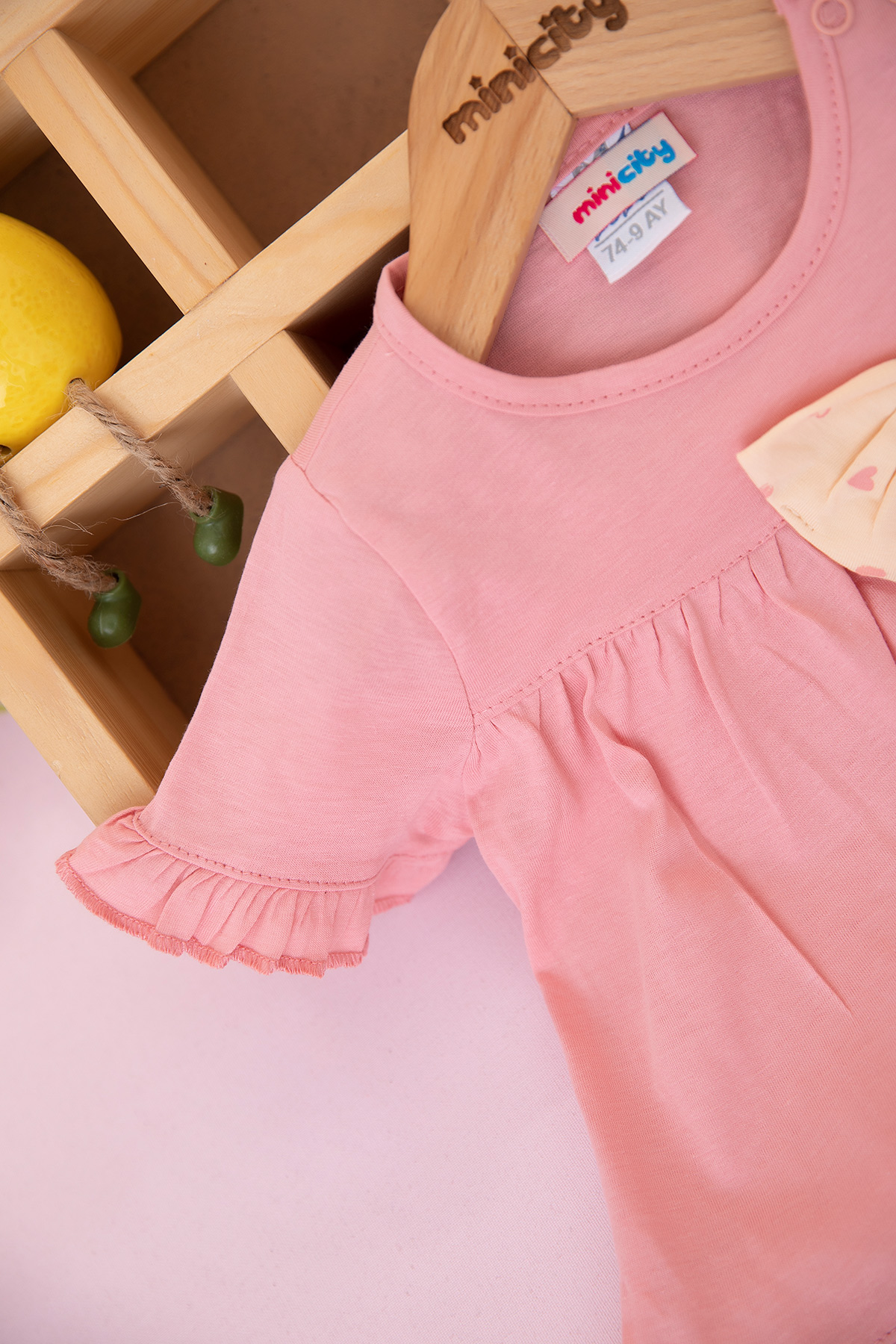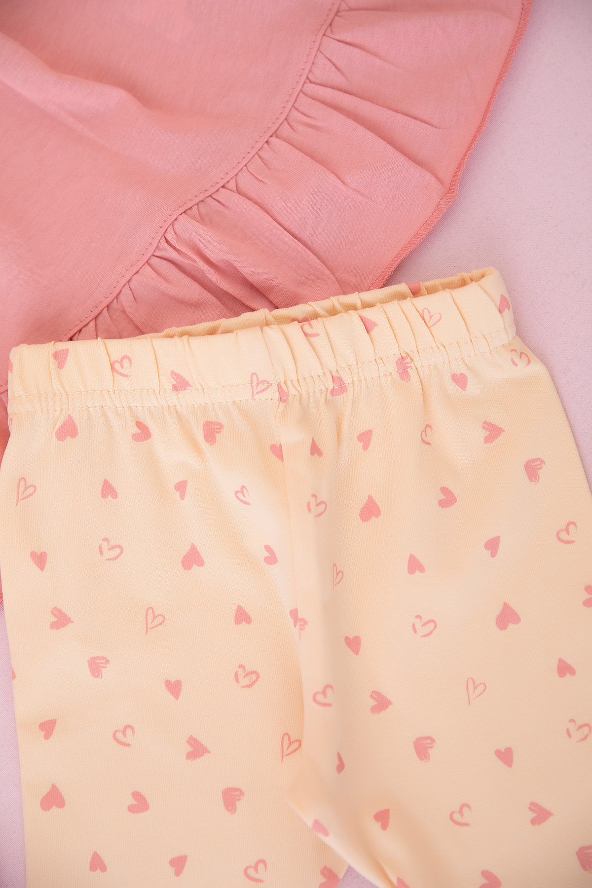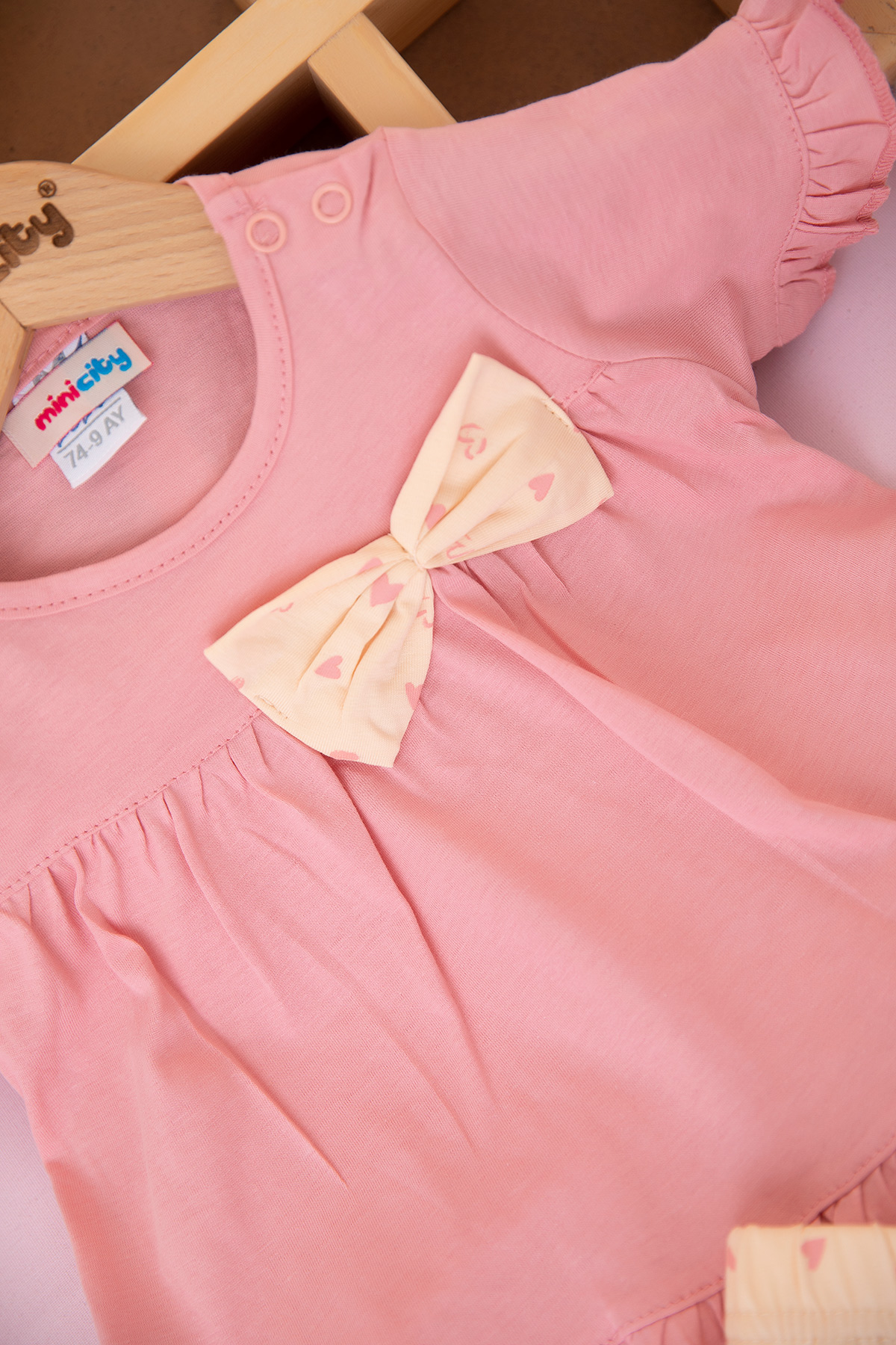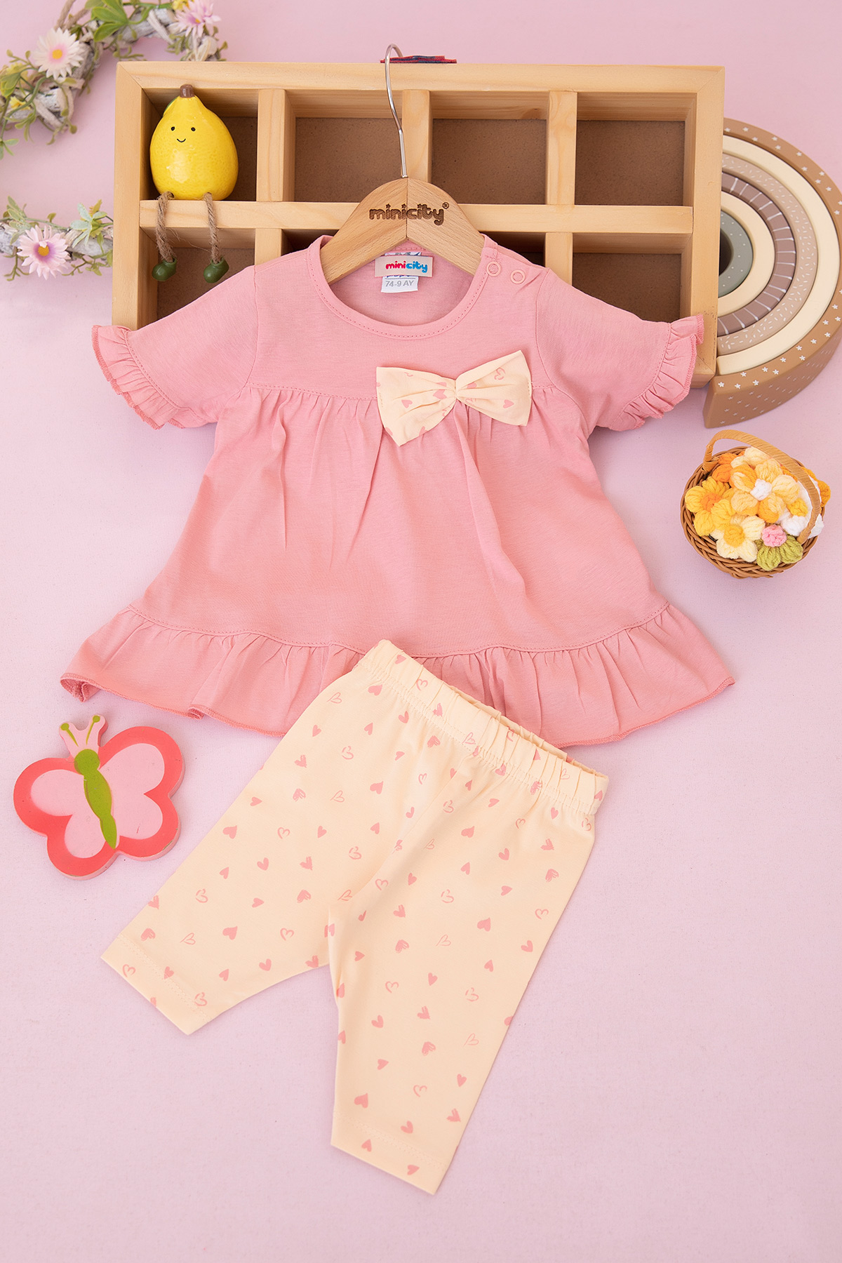 Kız Bebek Kalp Baskılı Fiyonklu Şortlu Takım - 26524 (9-24 Ay)