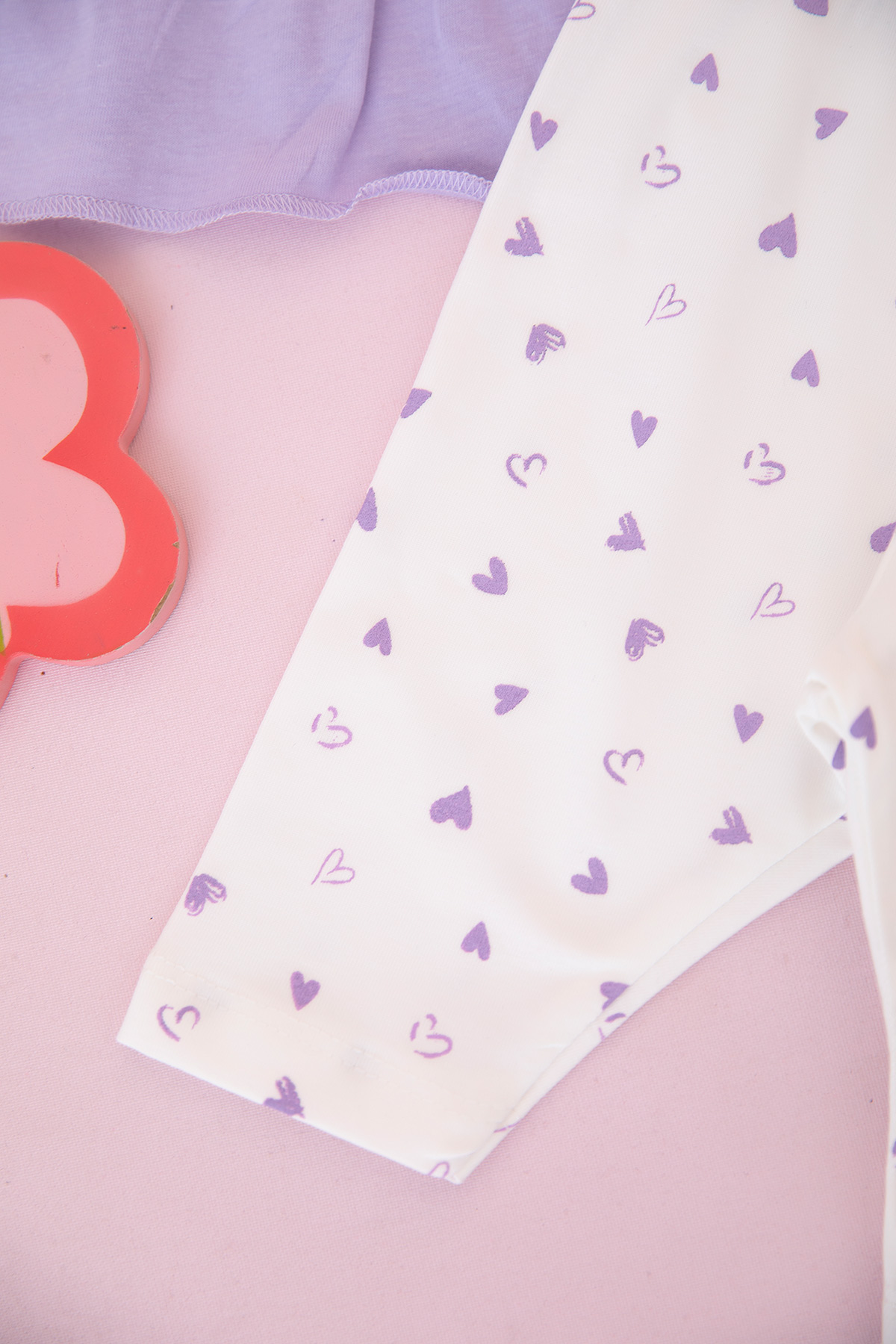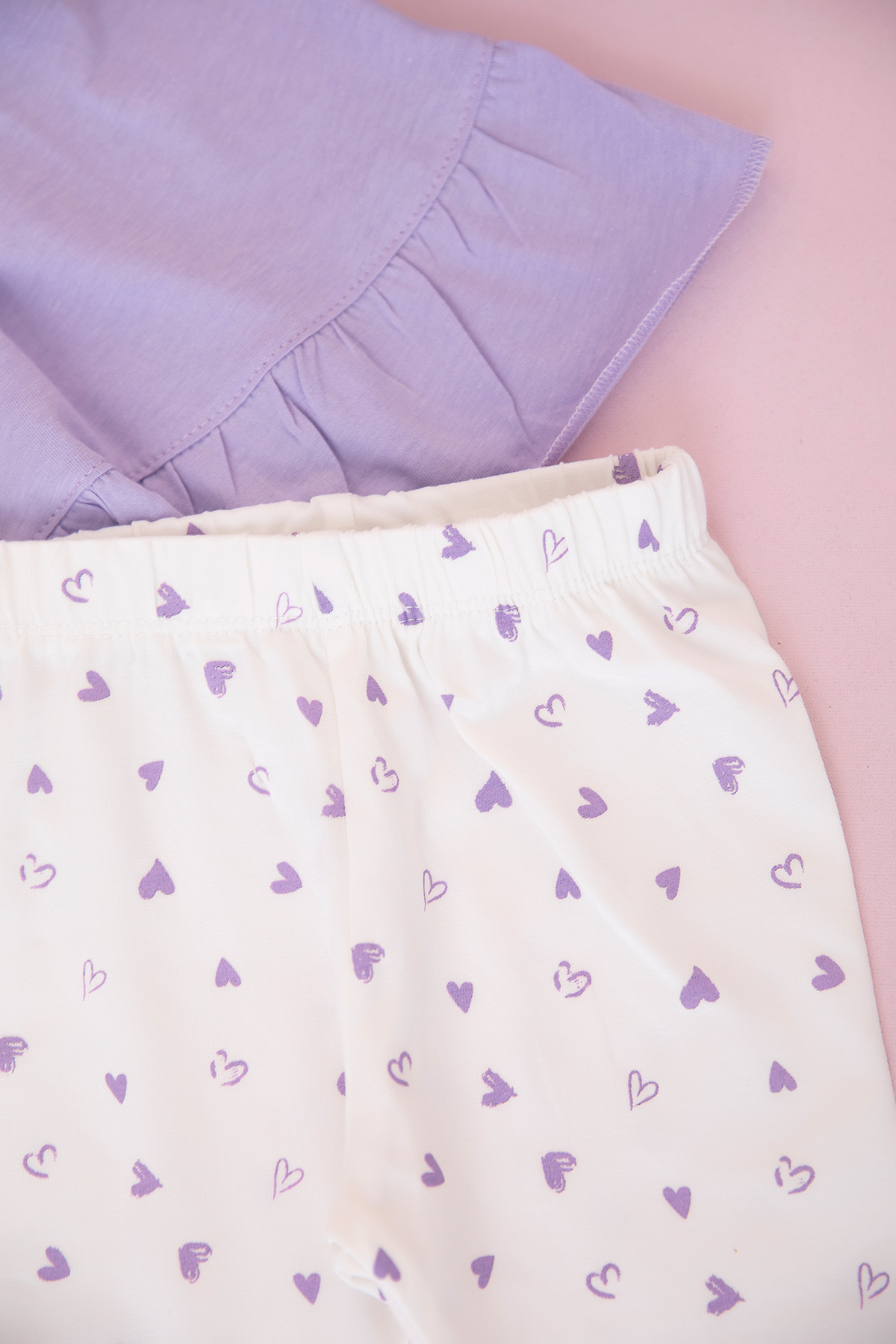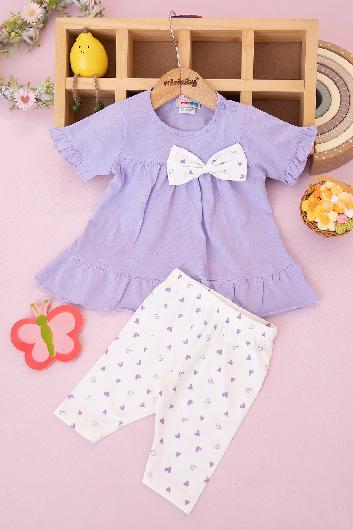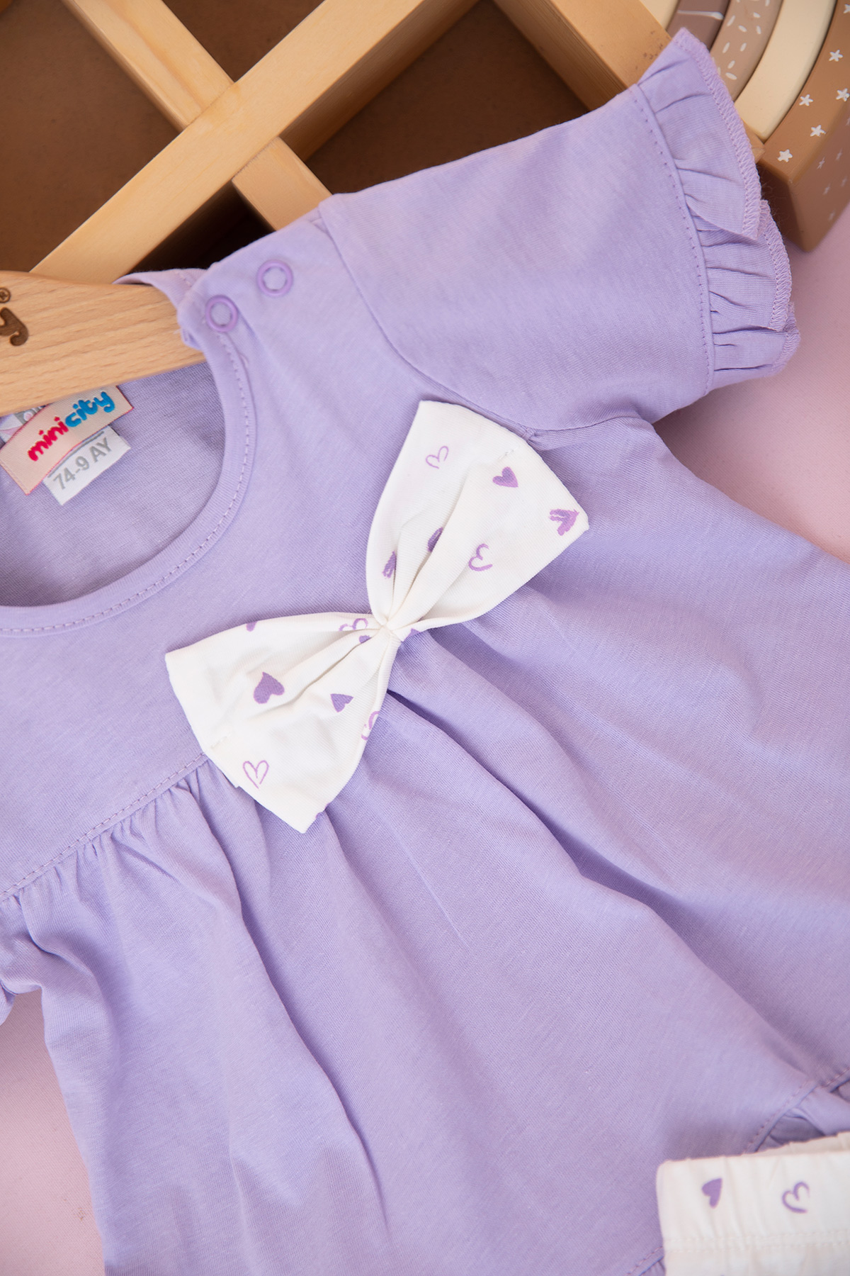 Kız Bebek Kalp Baskılı Fiyonklu Şortlu Takım - 26524 (9-24 Ay)