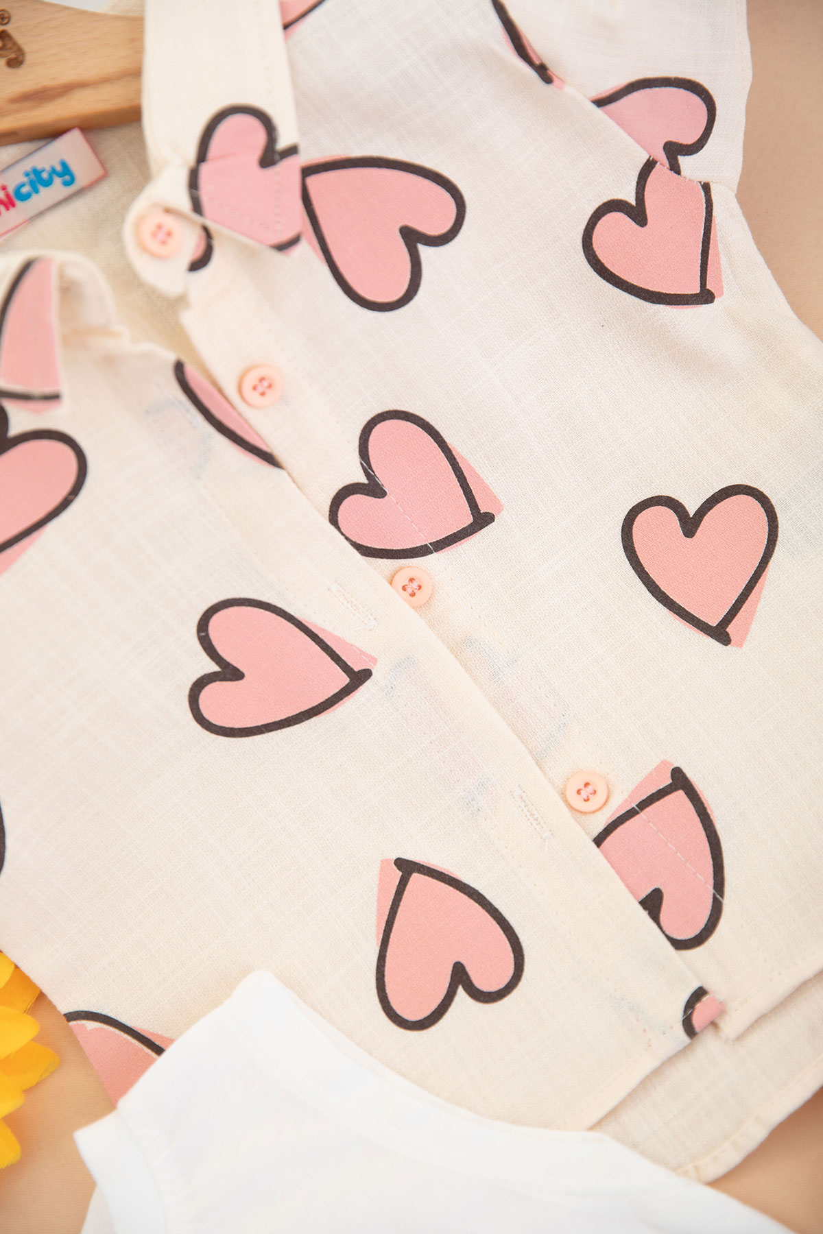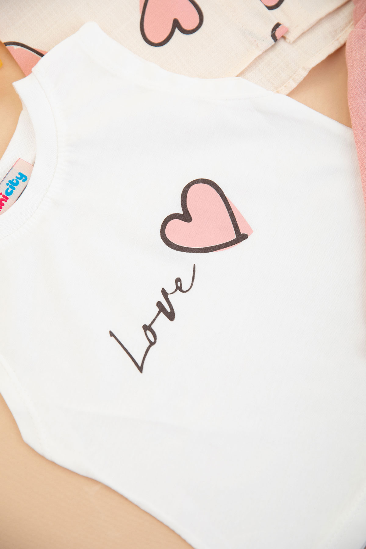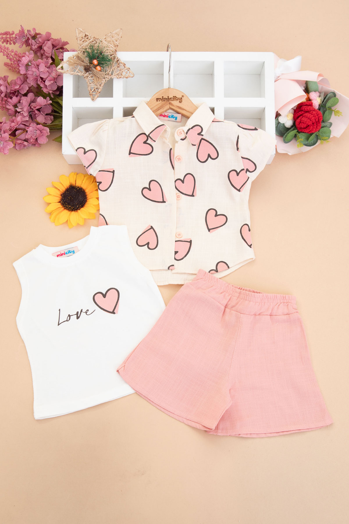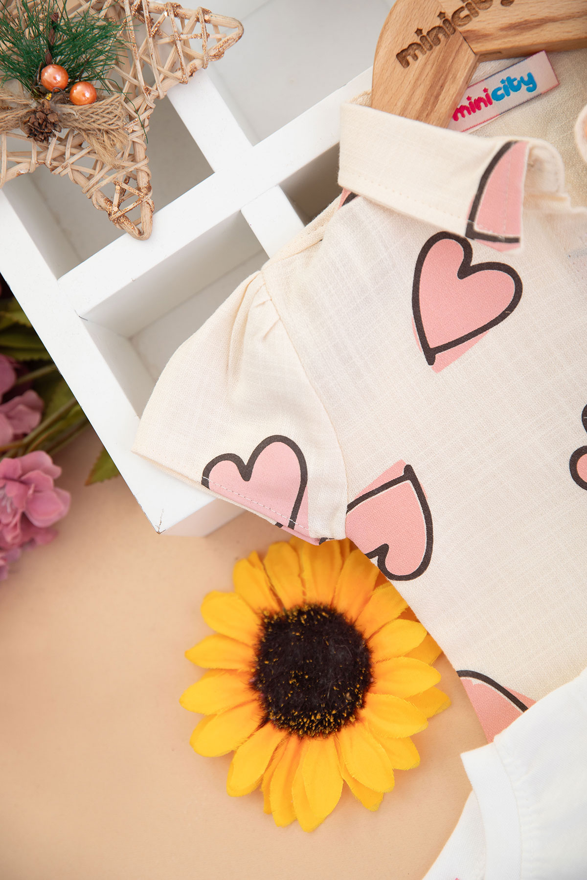 Kız Bebek Kalp Baskılı Gömlekli Şortlu Takım - 90135 (6-24 Ay)