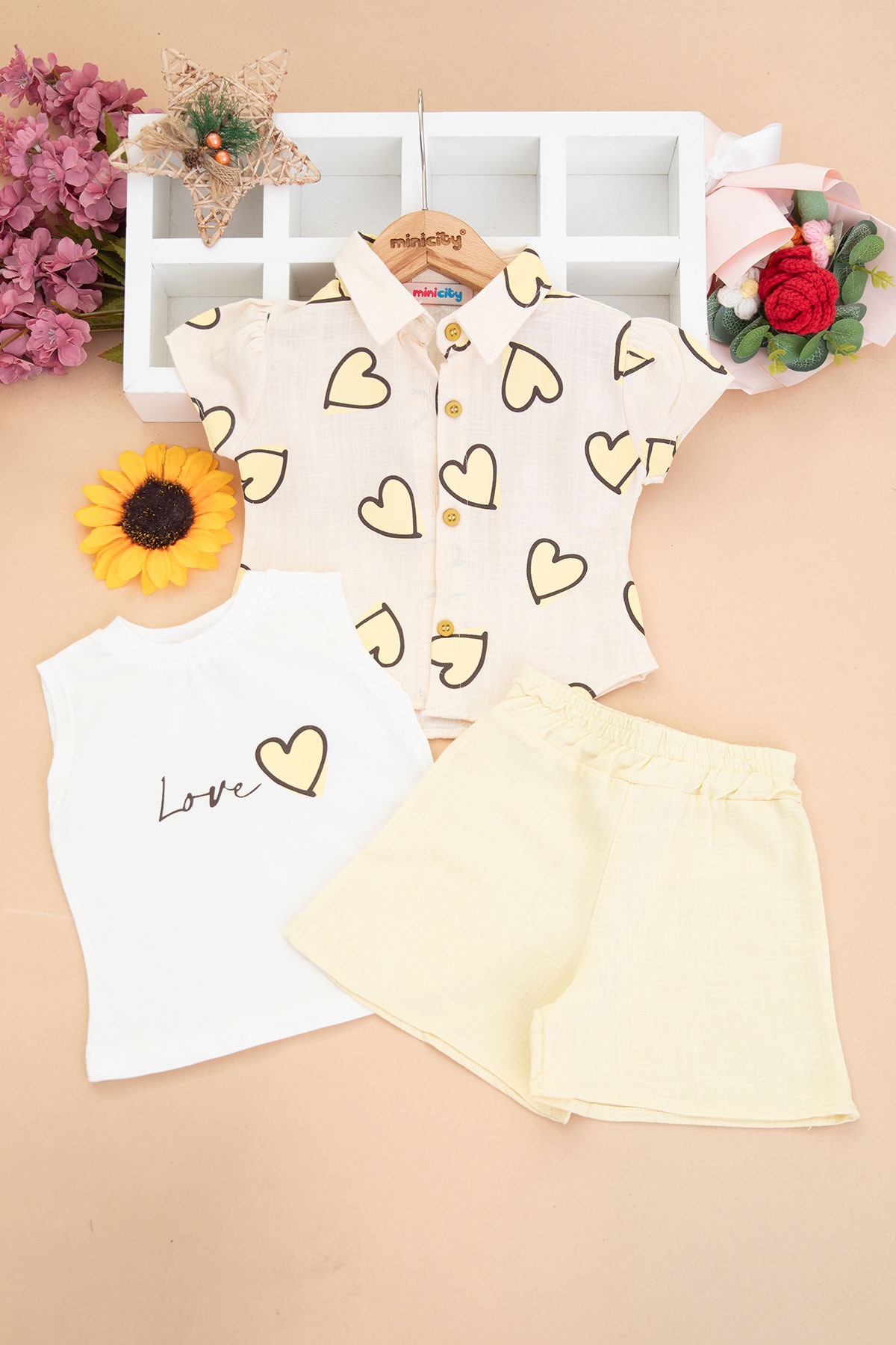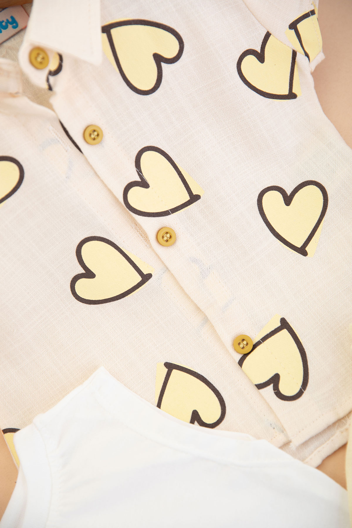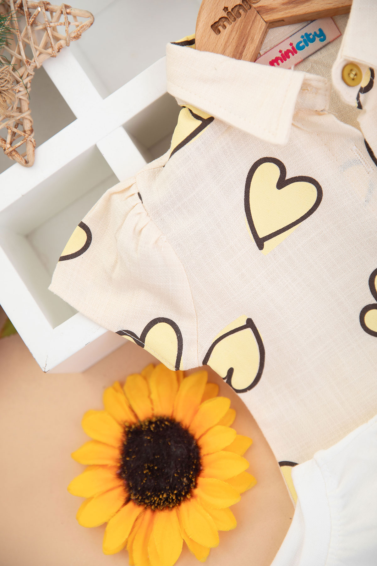 Kız Bebek Kalp Baskılı Gömlekli Şortlu Takım - 90135 (6-24 Ay)