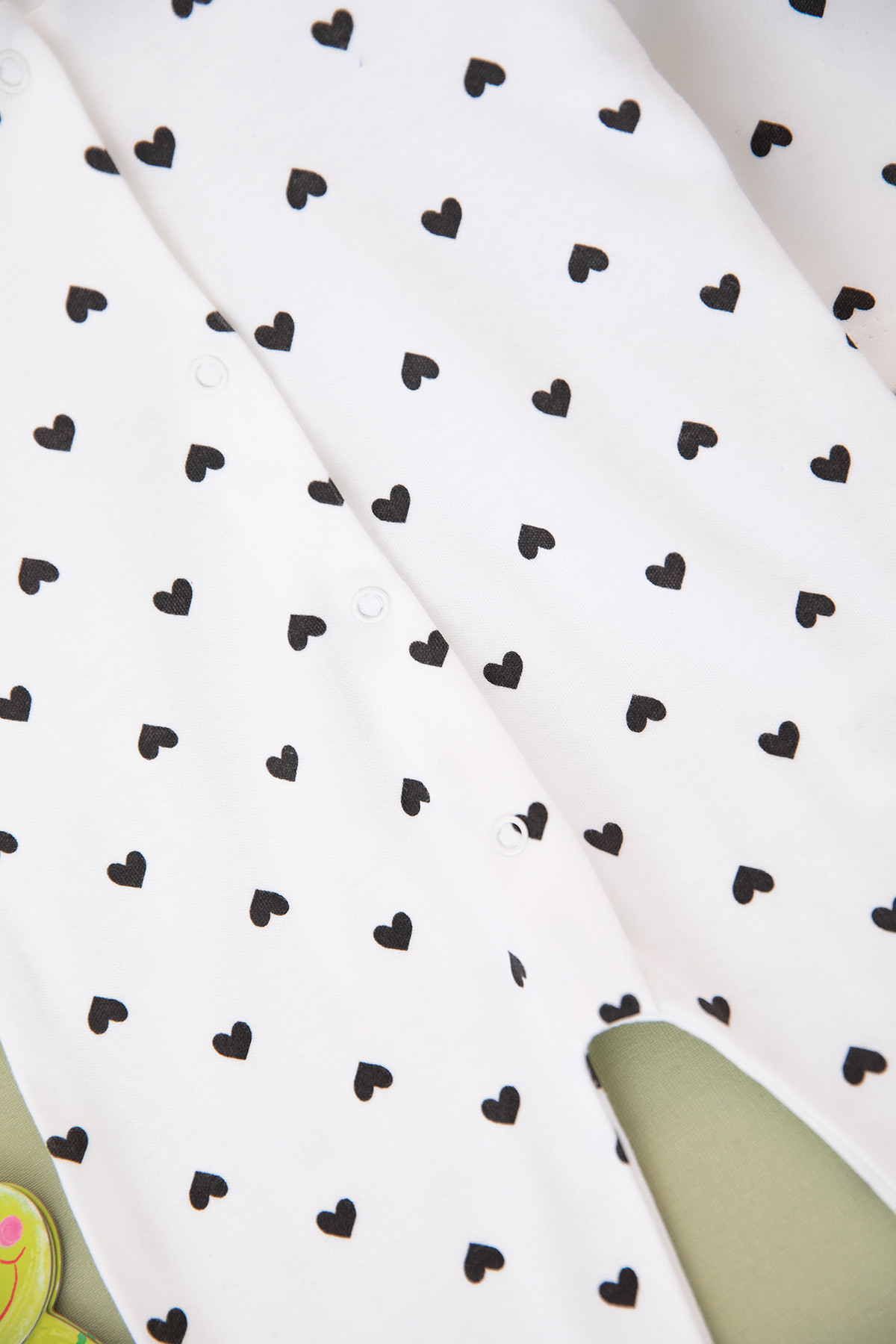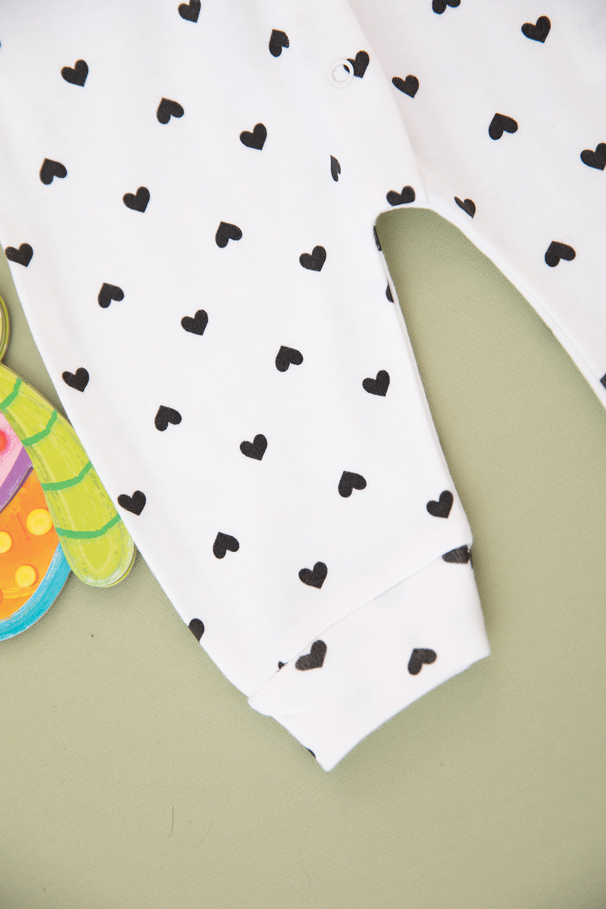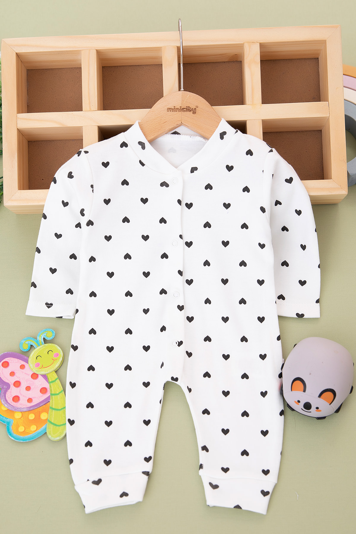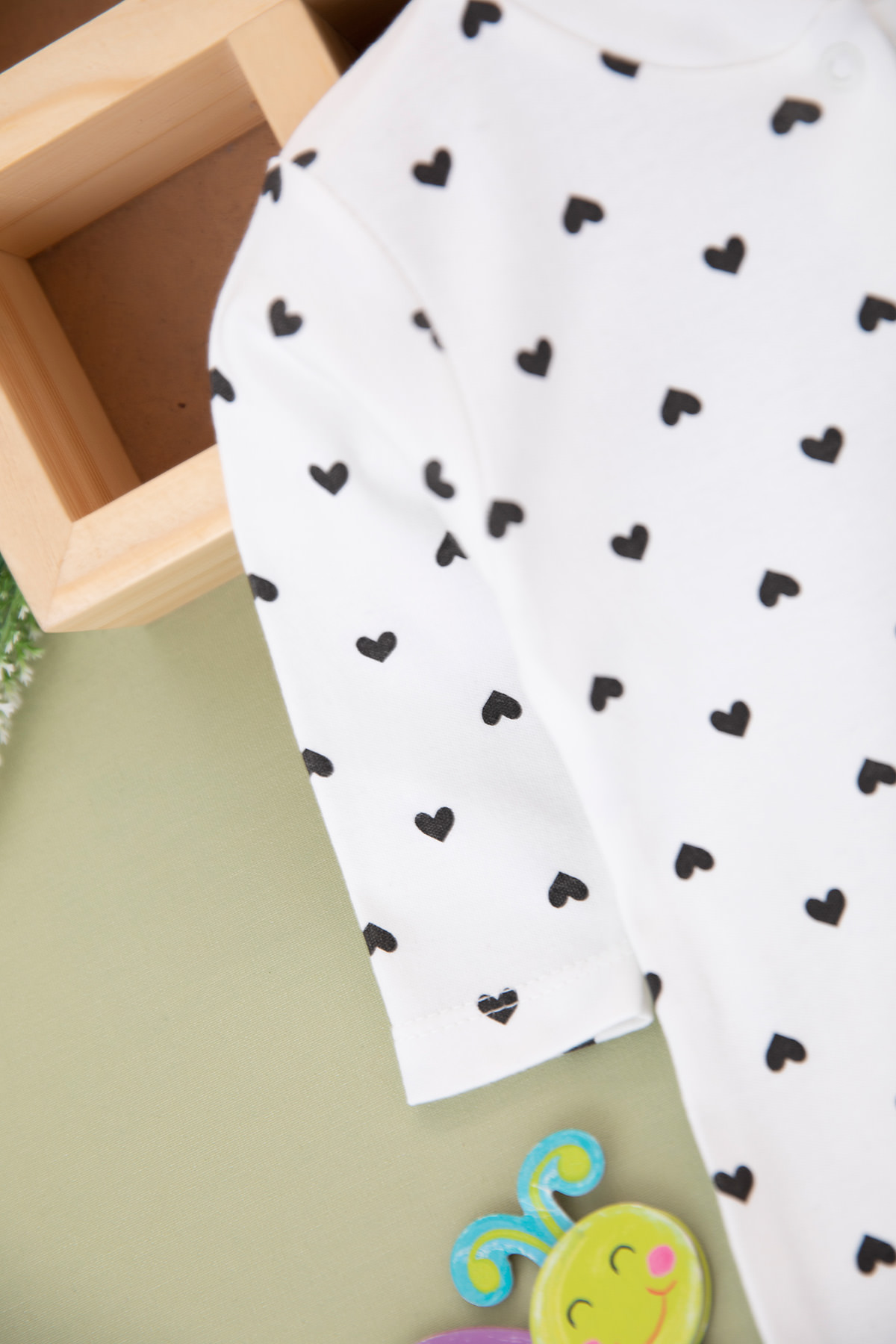 Kız Bebek Kalp Baskılı Manşetli Tulum - 1878 (3-9 Ay)