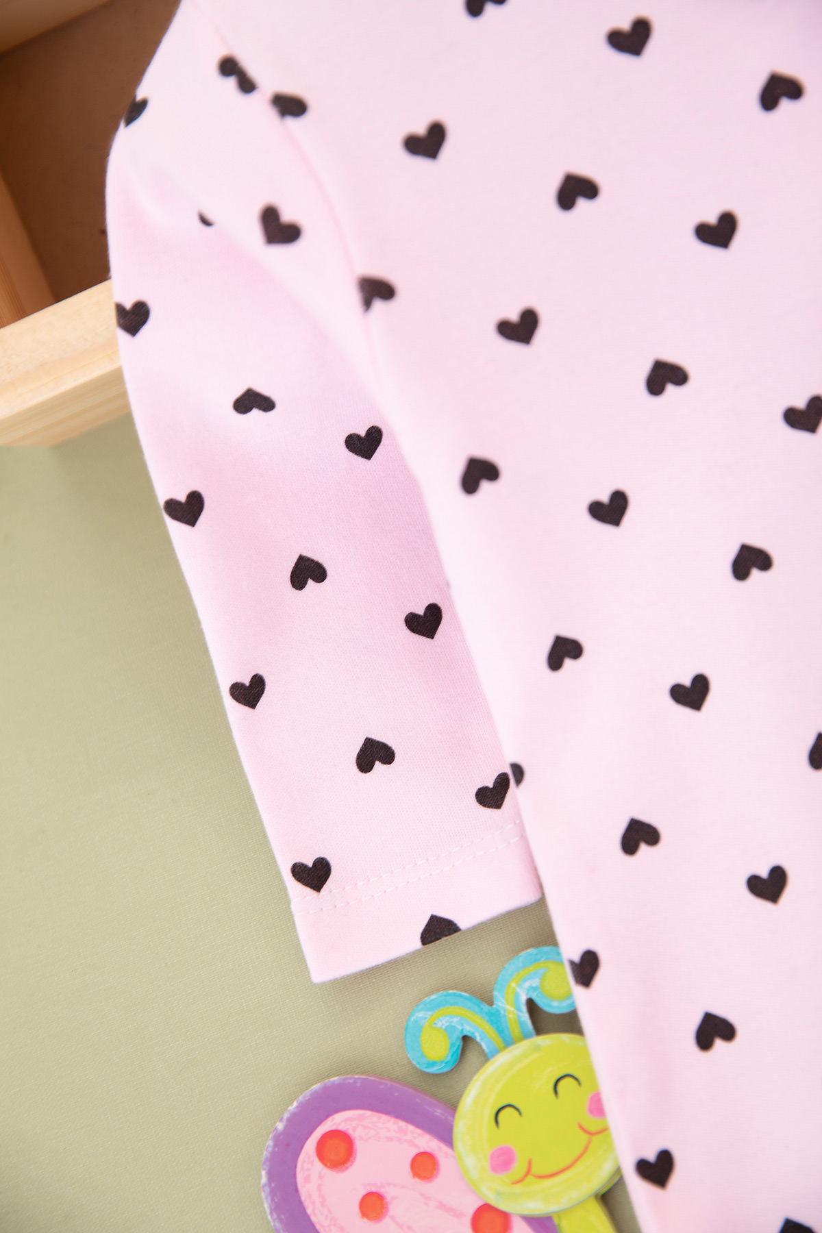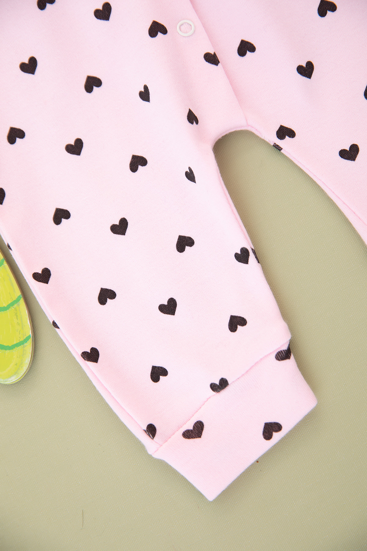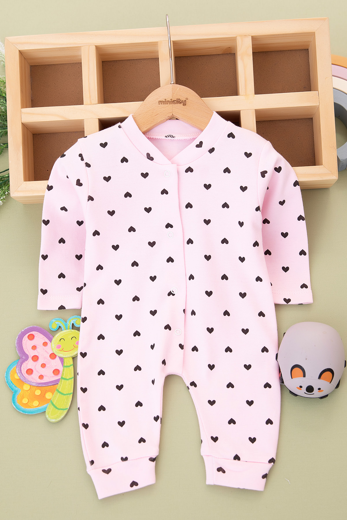 Kız Bebek Kalp Baskılı Manşetli Tulum - 1878 (3-9 Ay)