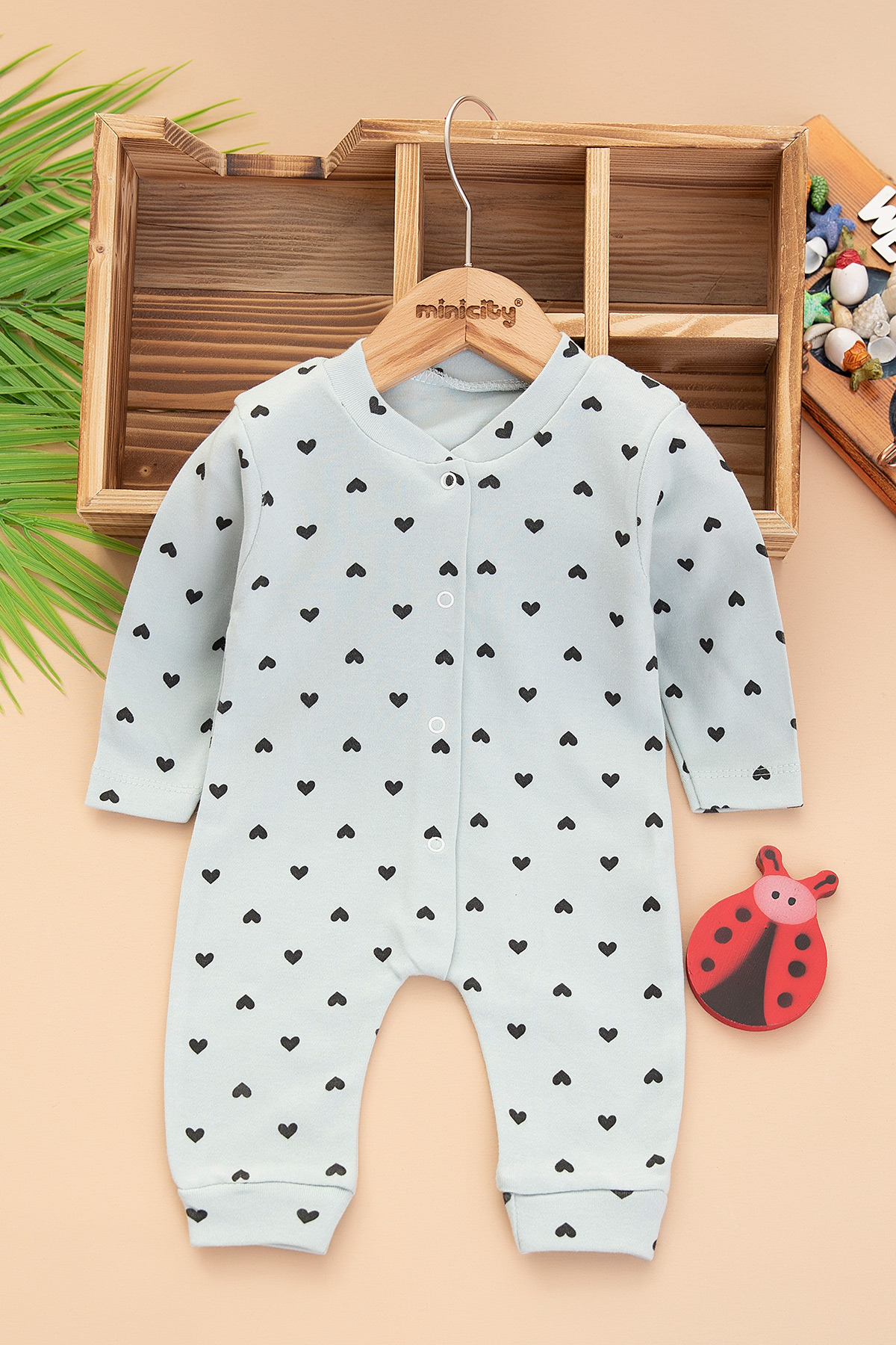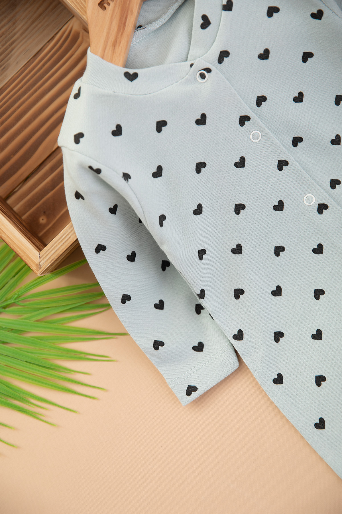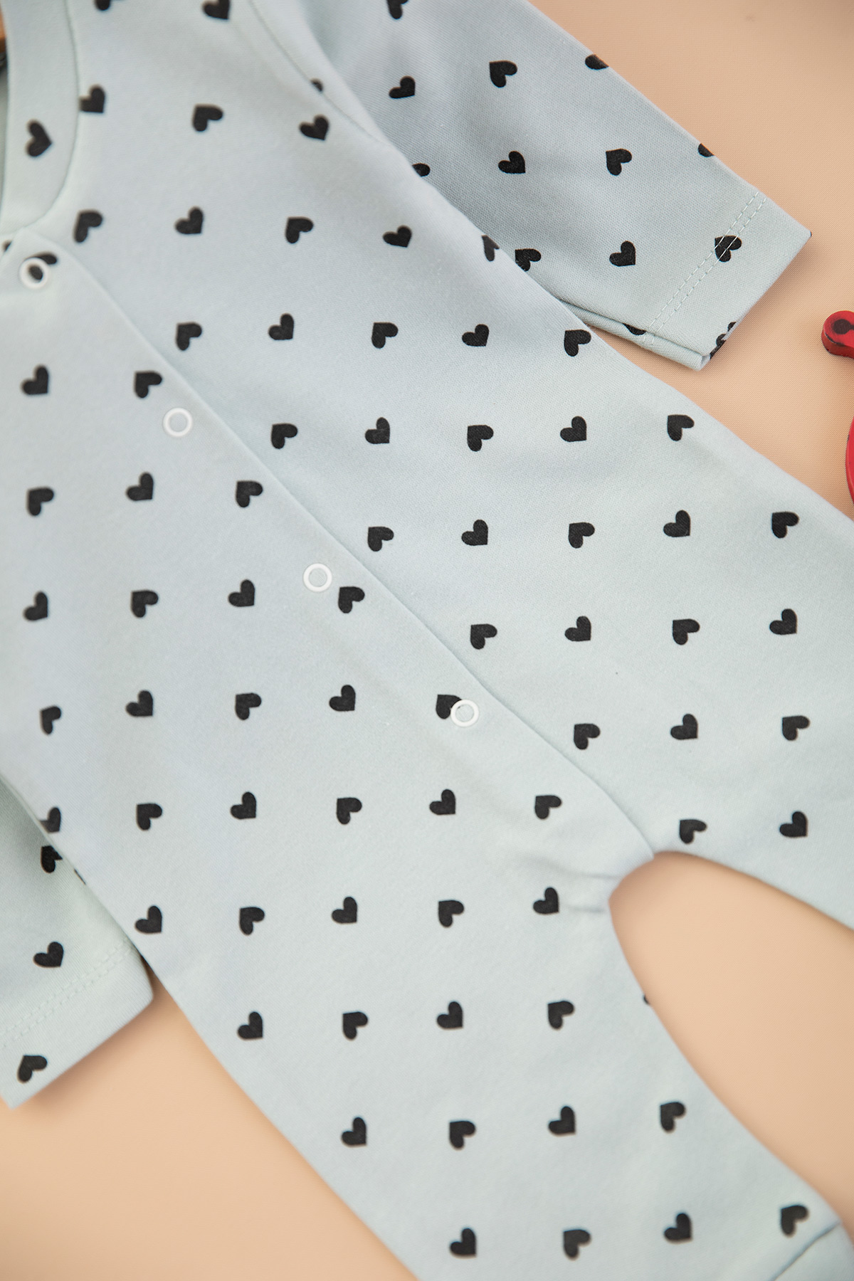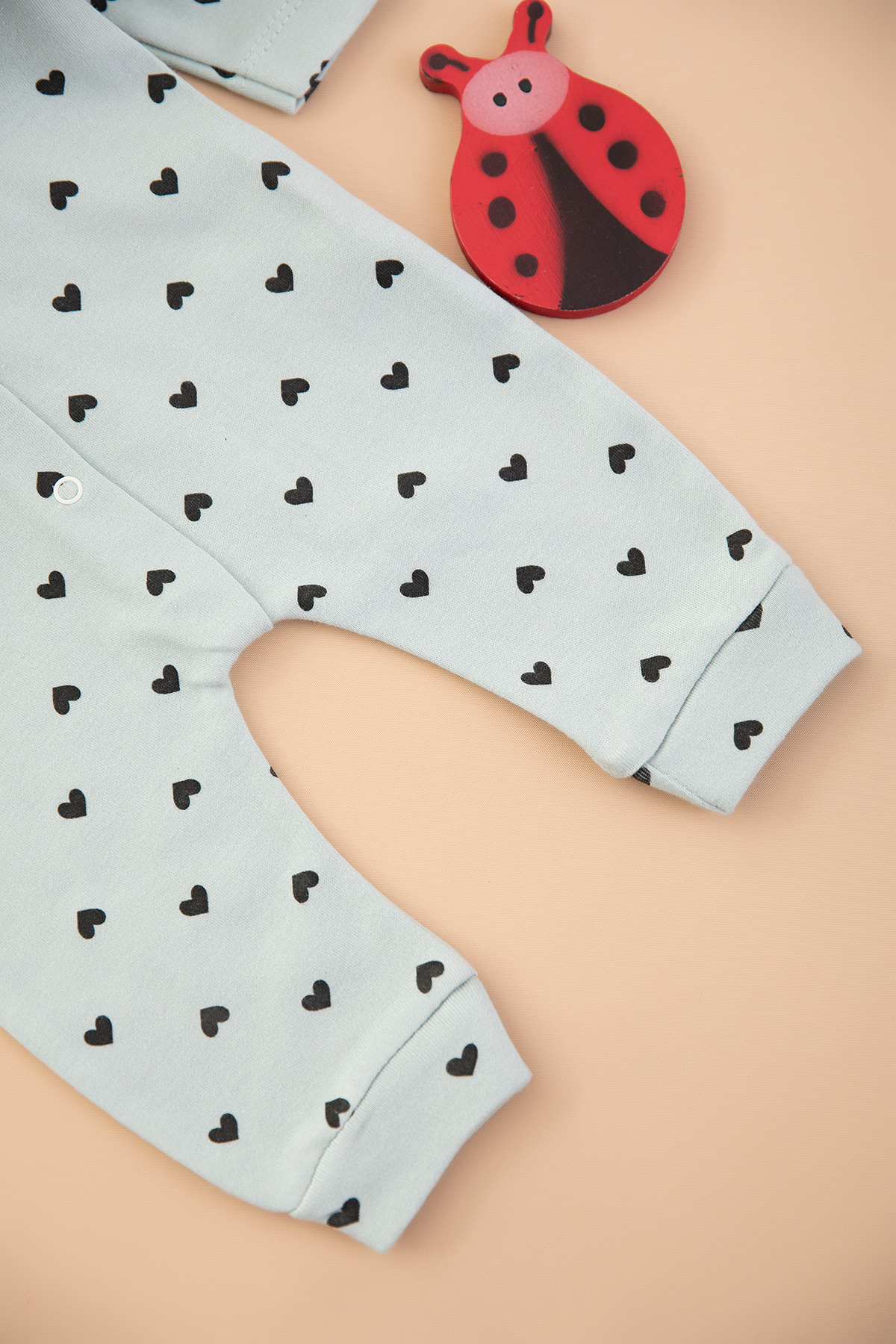 Kız Bebek Kalp Baskılı Manşetli Tulum - 1878 (3-9 Ay)