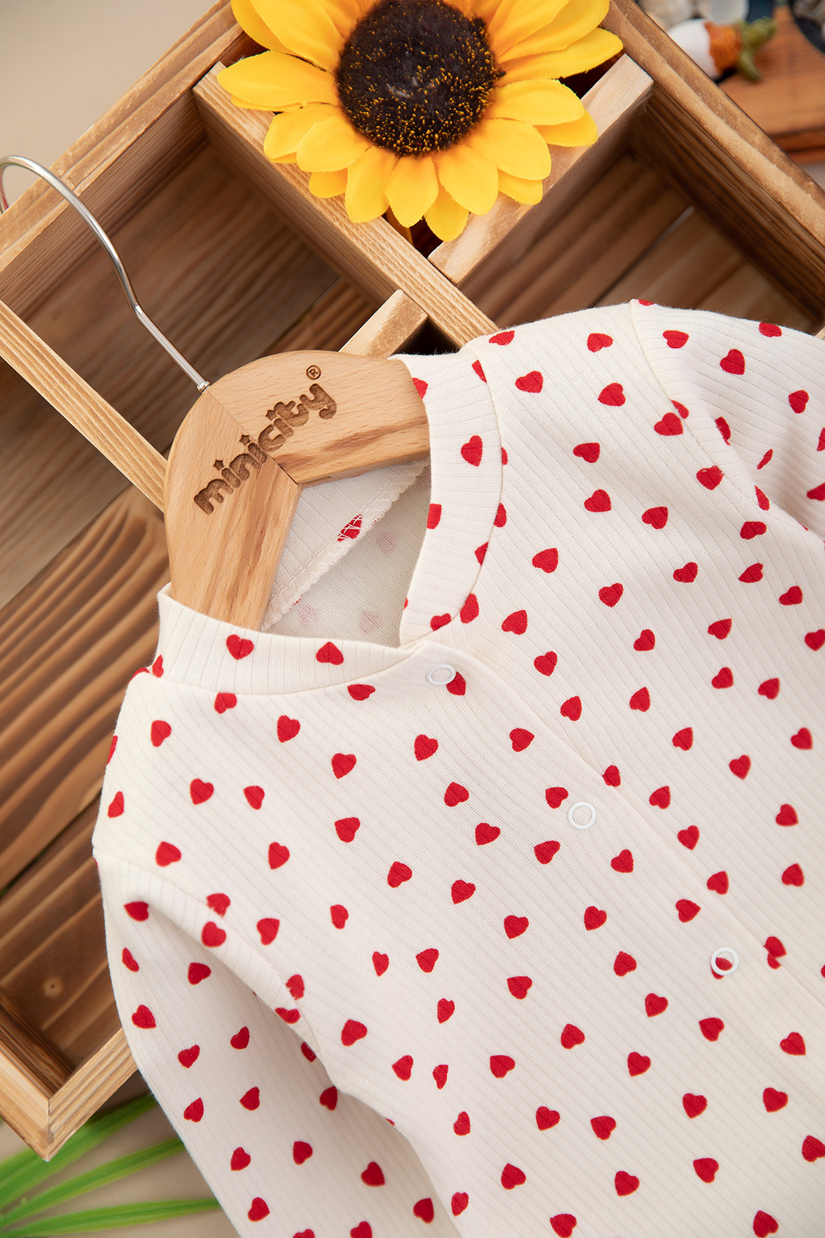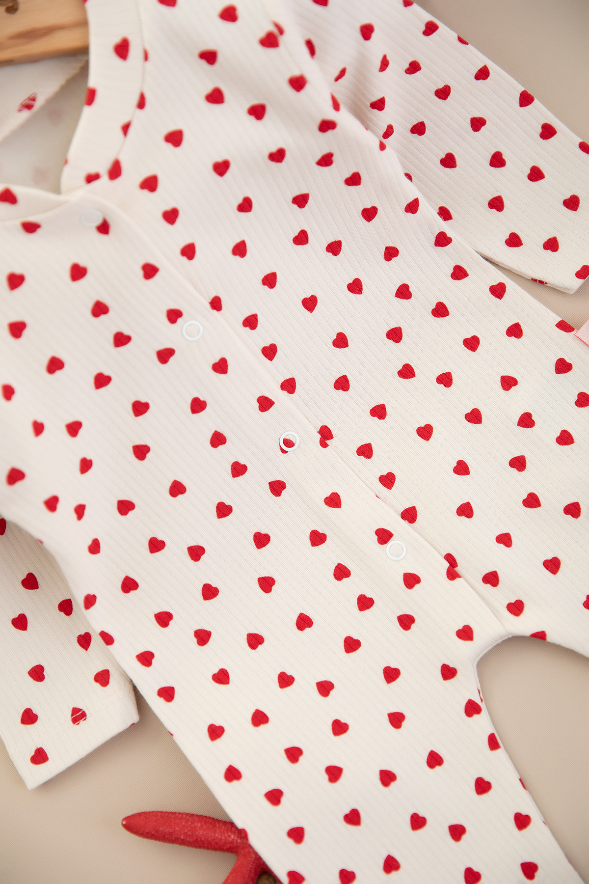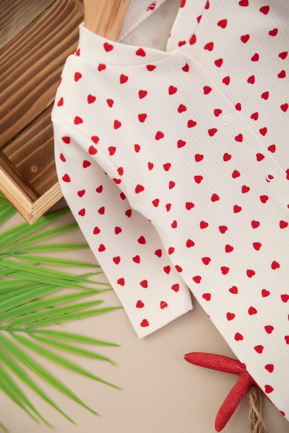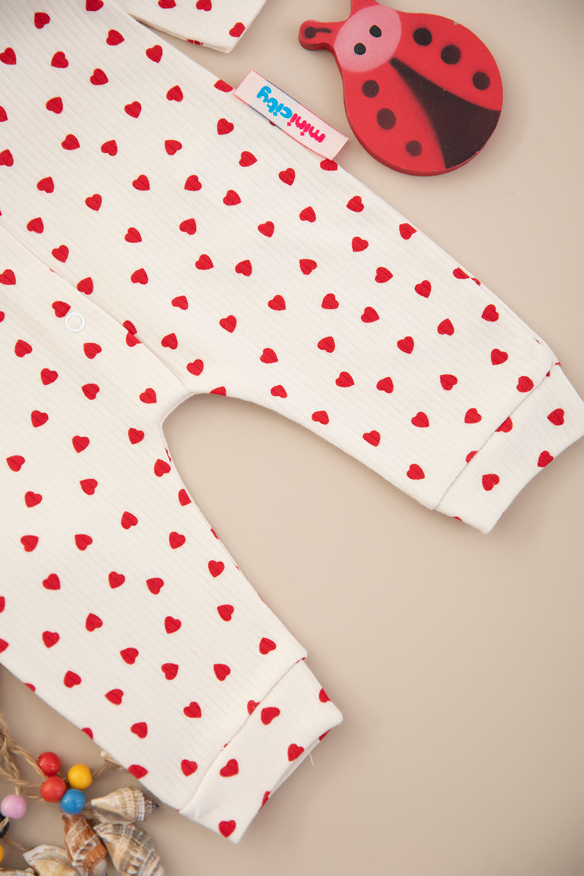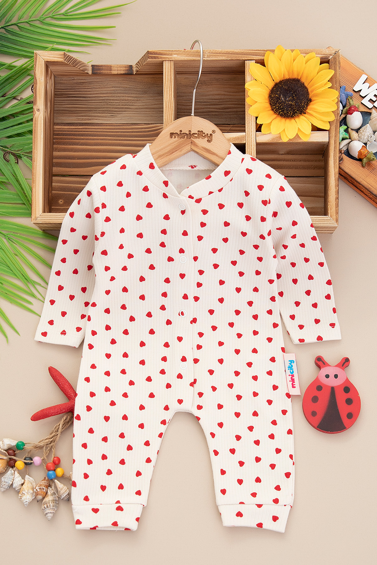 Kız Bebek Kalp Baskılı Manşetli Tulum - 1963 (0-6 Ay)