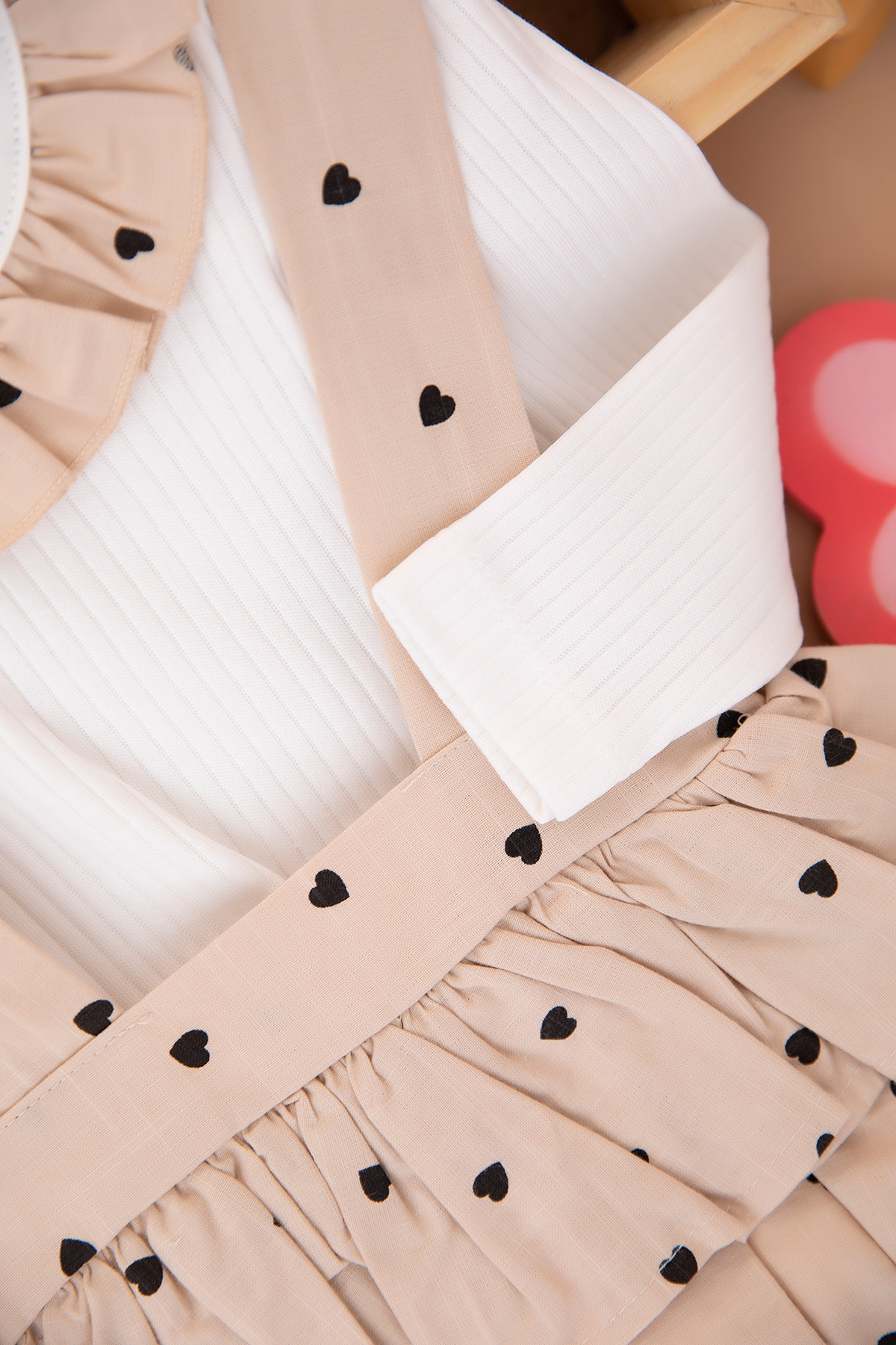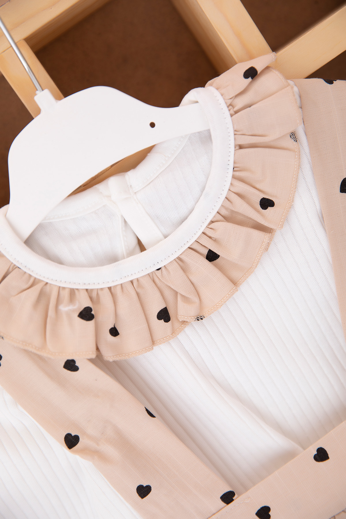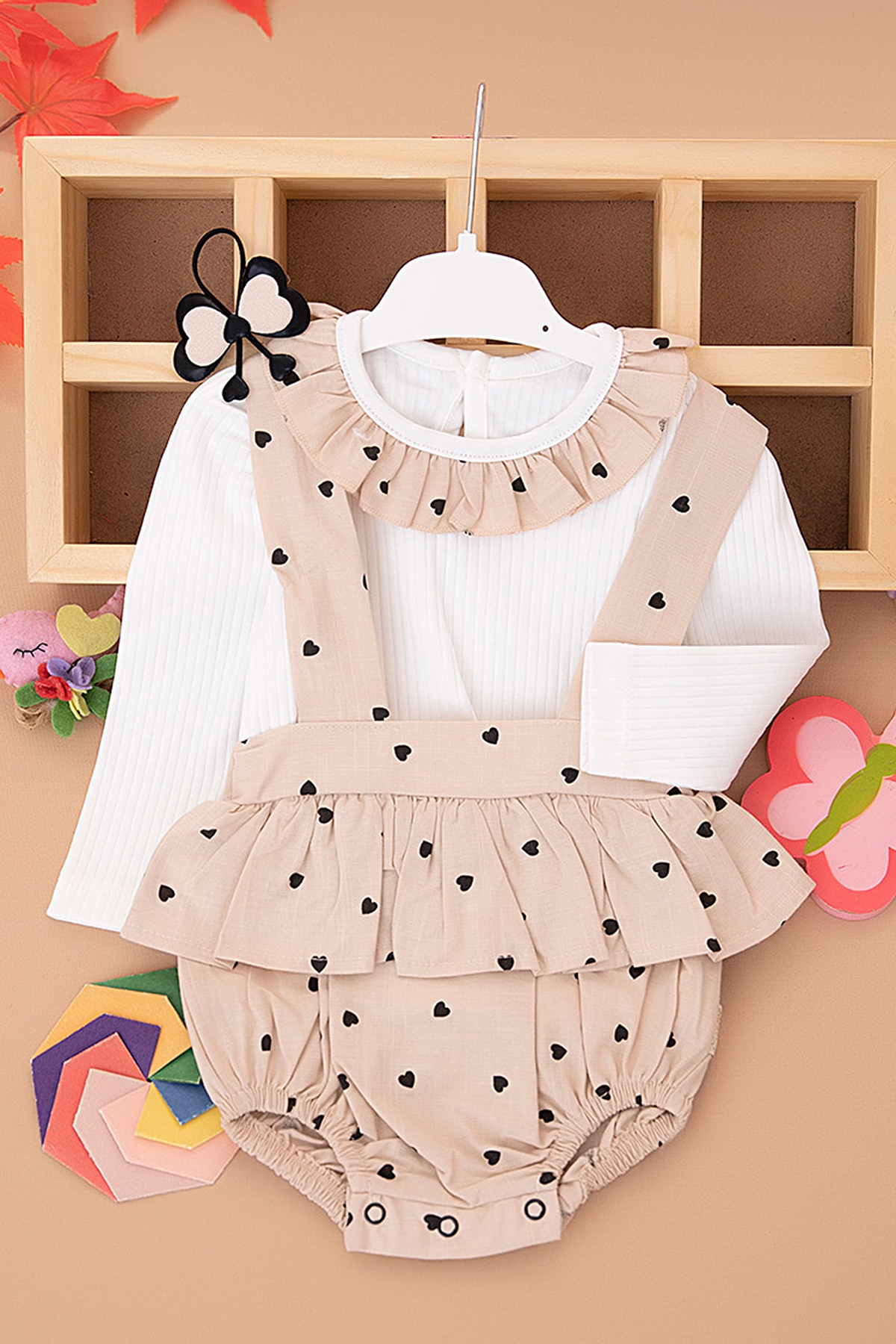 Kız Bebek Kalp Baskılı Romper Salopet Takım - 3119 (9-24 Ay)