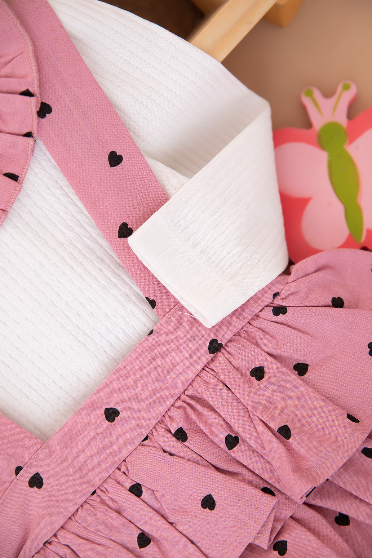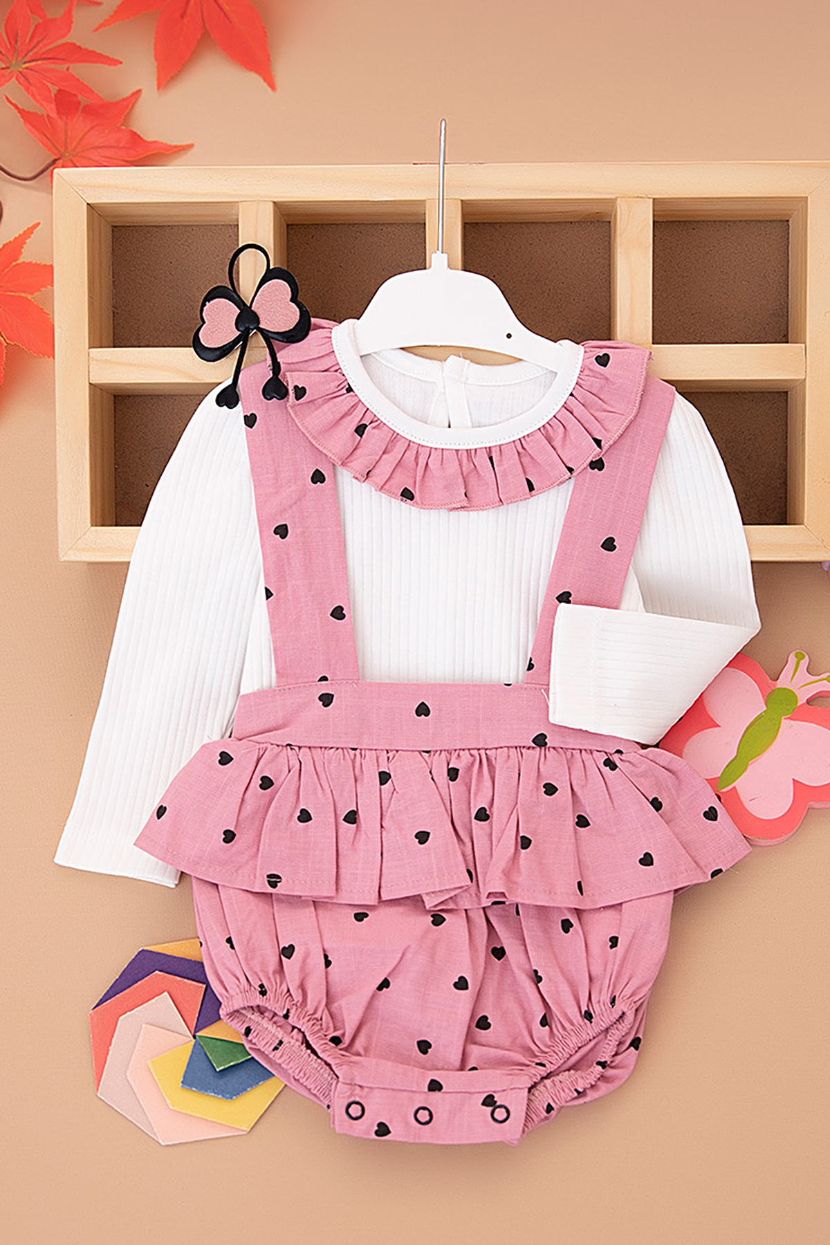 Kız Bebek Kalp Baskılı Romper Salopet Takım - 3119 (9-24 Ay)