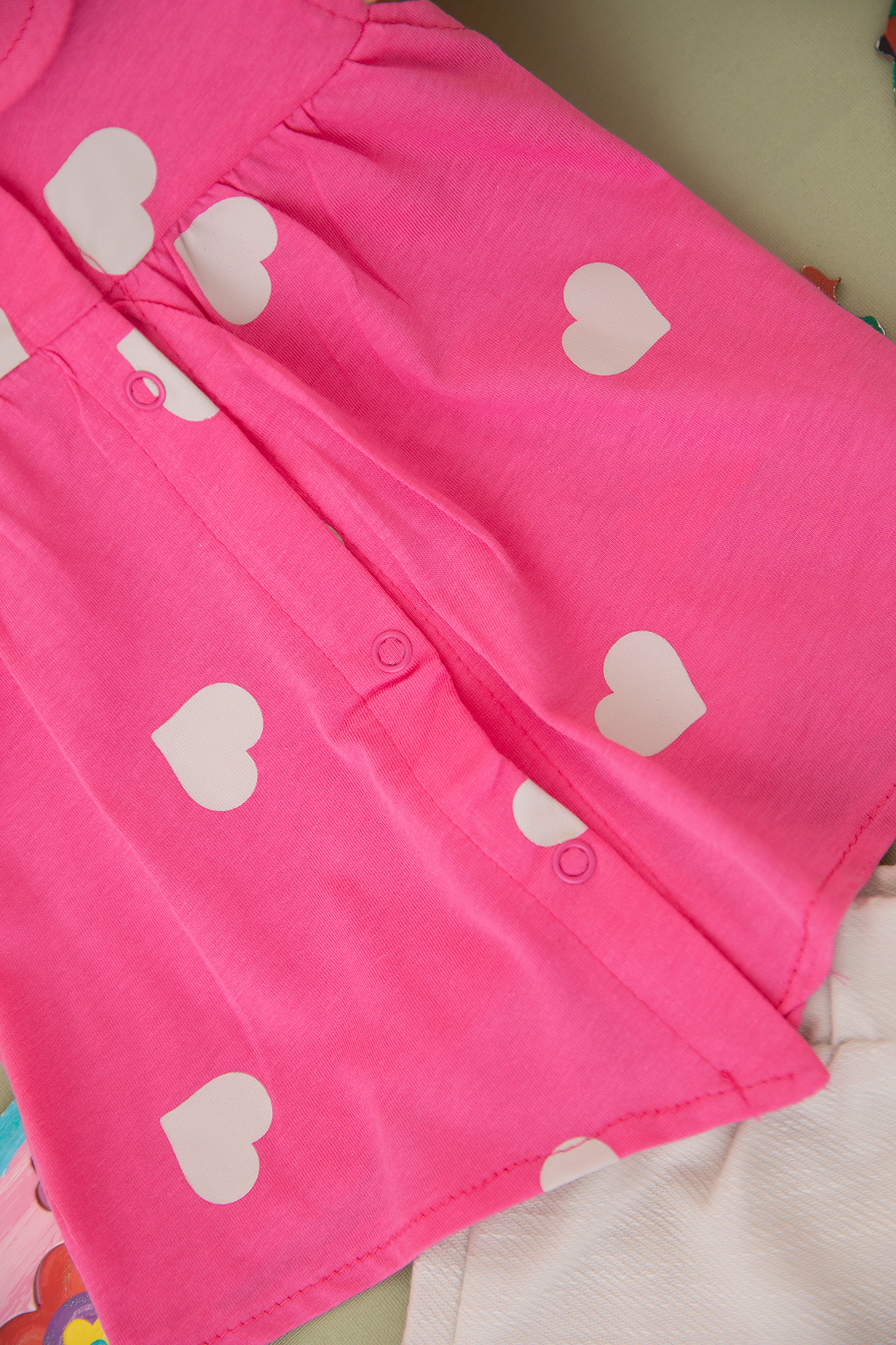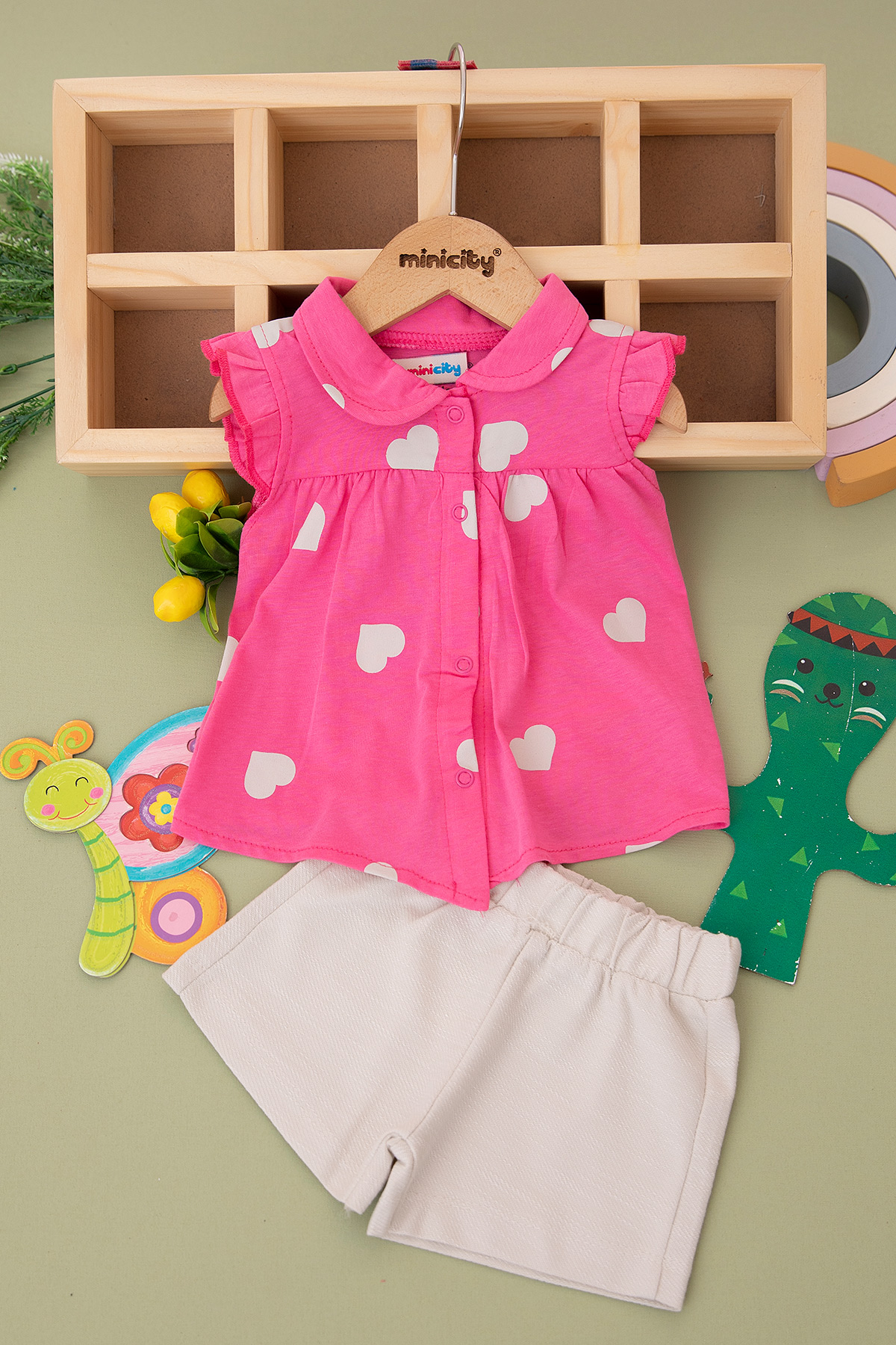 Kız Bebek Kalp Baskılı Şortlu Takım - 24172 (9-24 Ay)